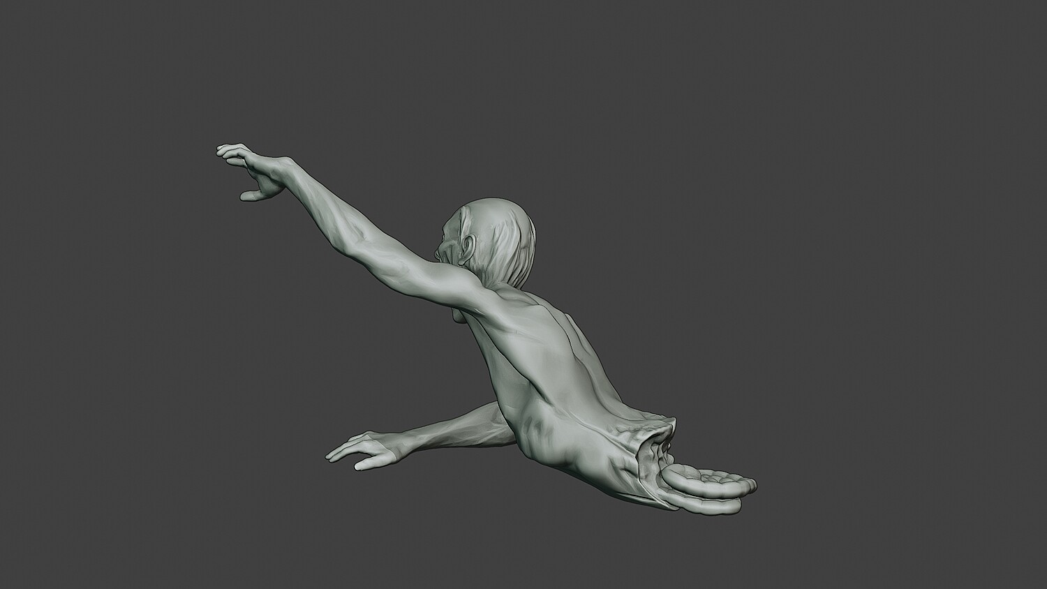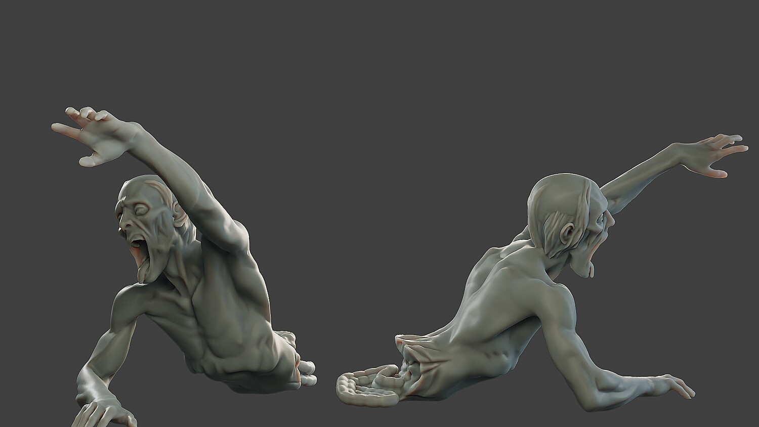 - Casual Zombie model with objets, clothes and more. Model in crawling pose.