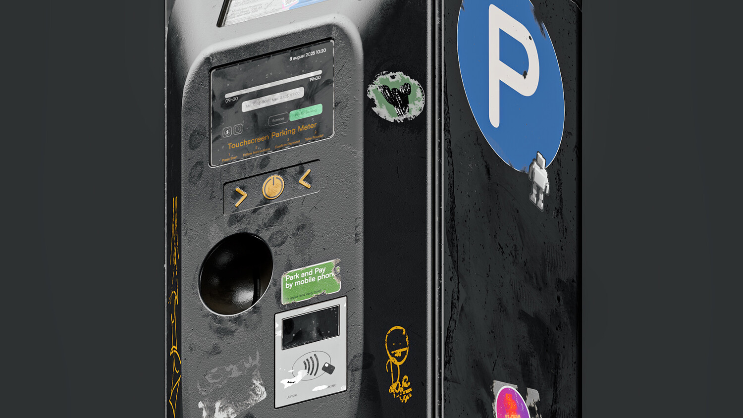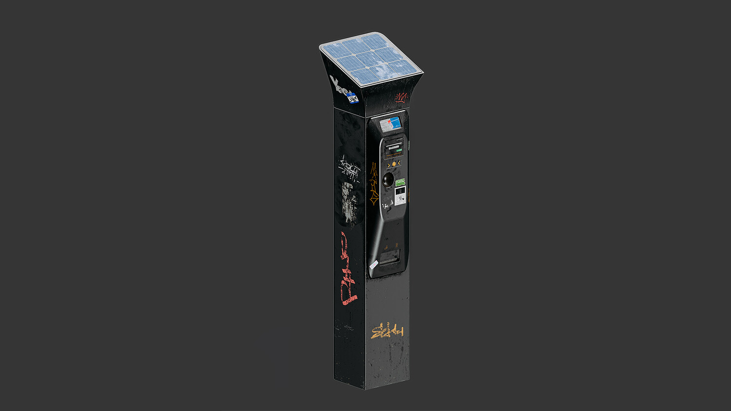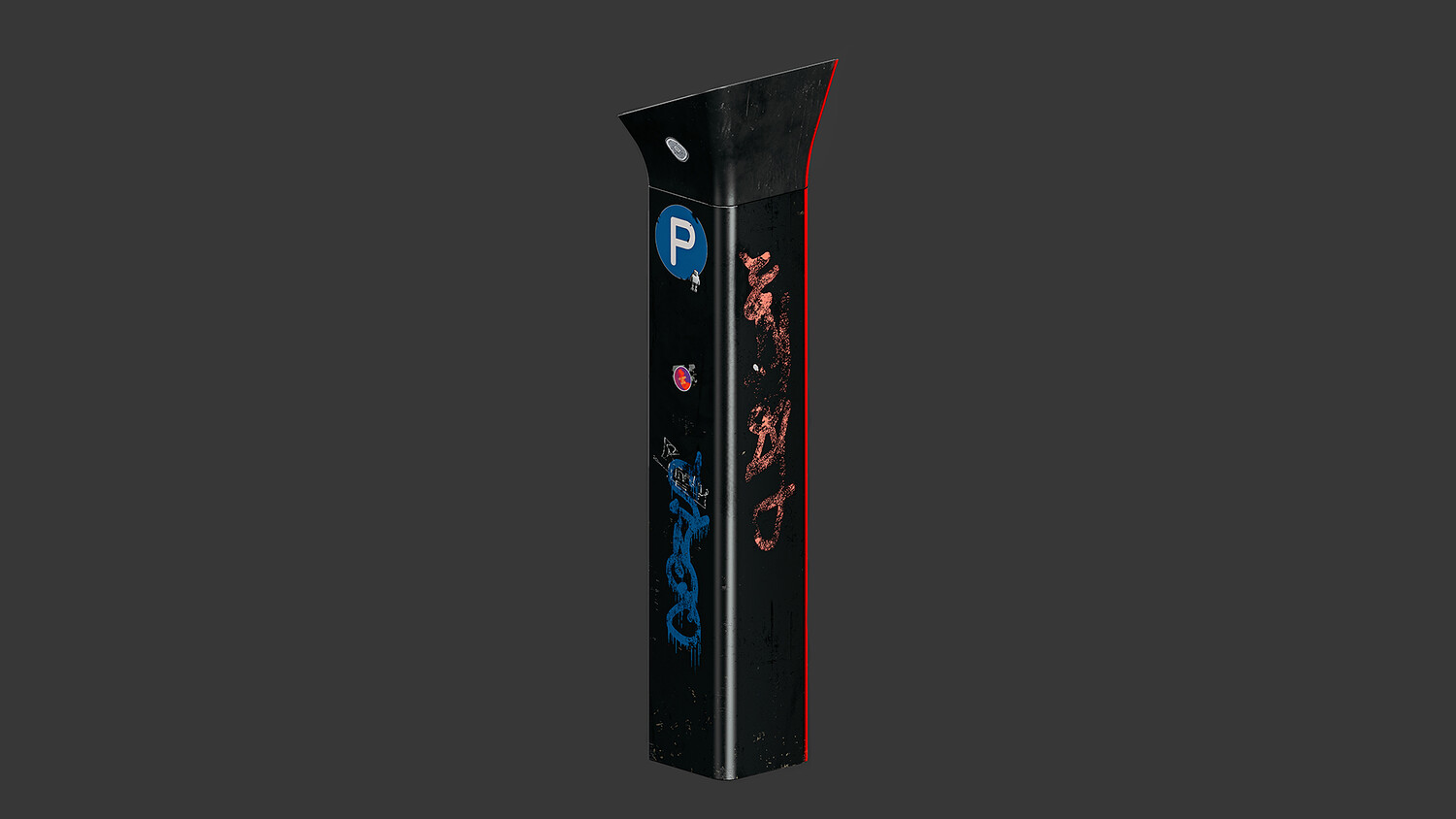 Game-ready model of a parking meter. The model has real sizes (main body 0,35 - 0,32 - 1.7m, upper part 0.5 - 0.42 - 0.37) Texel Density of 20 (1 texture set, no overlap UVs) All stickers, tags, and decals were originally created so you can use this model for any project without rights concern.