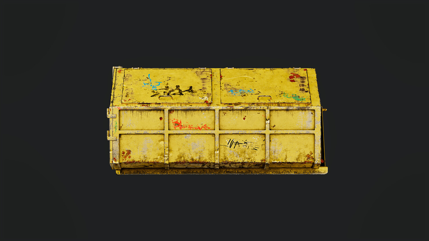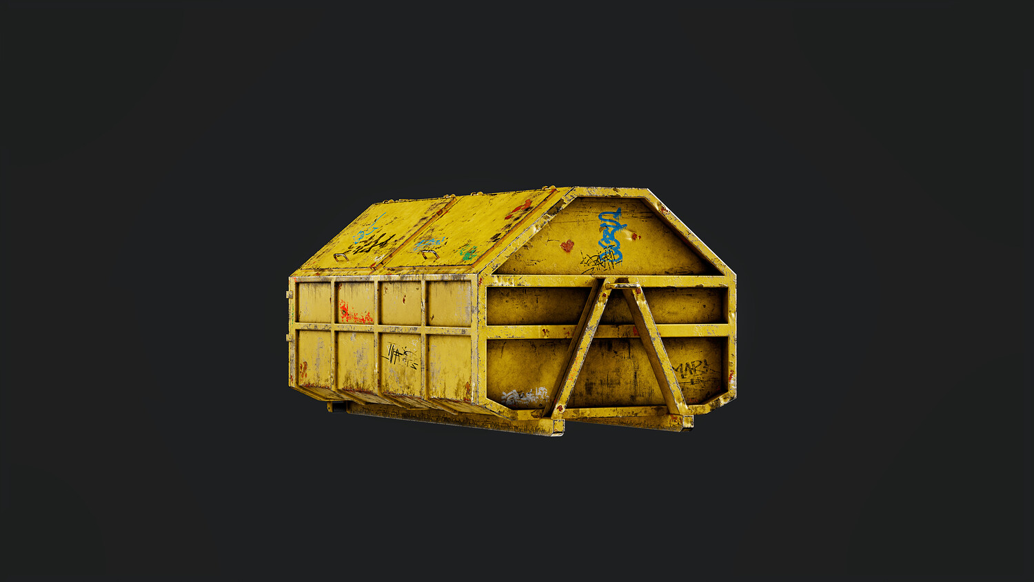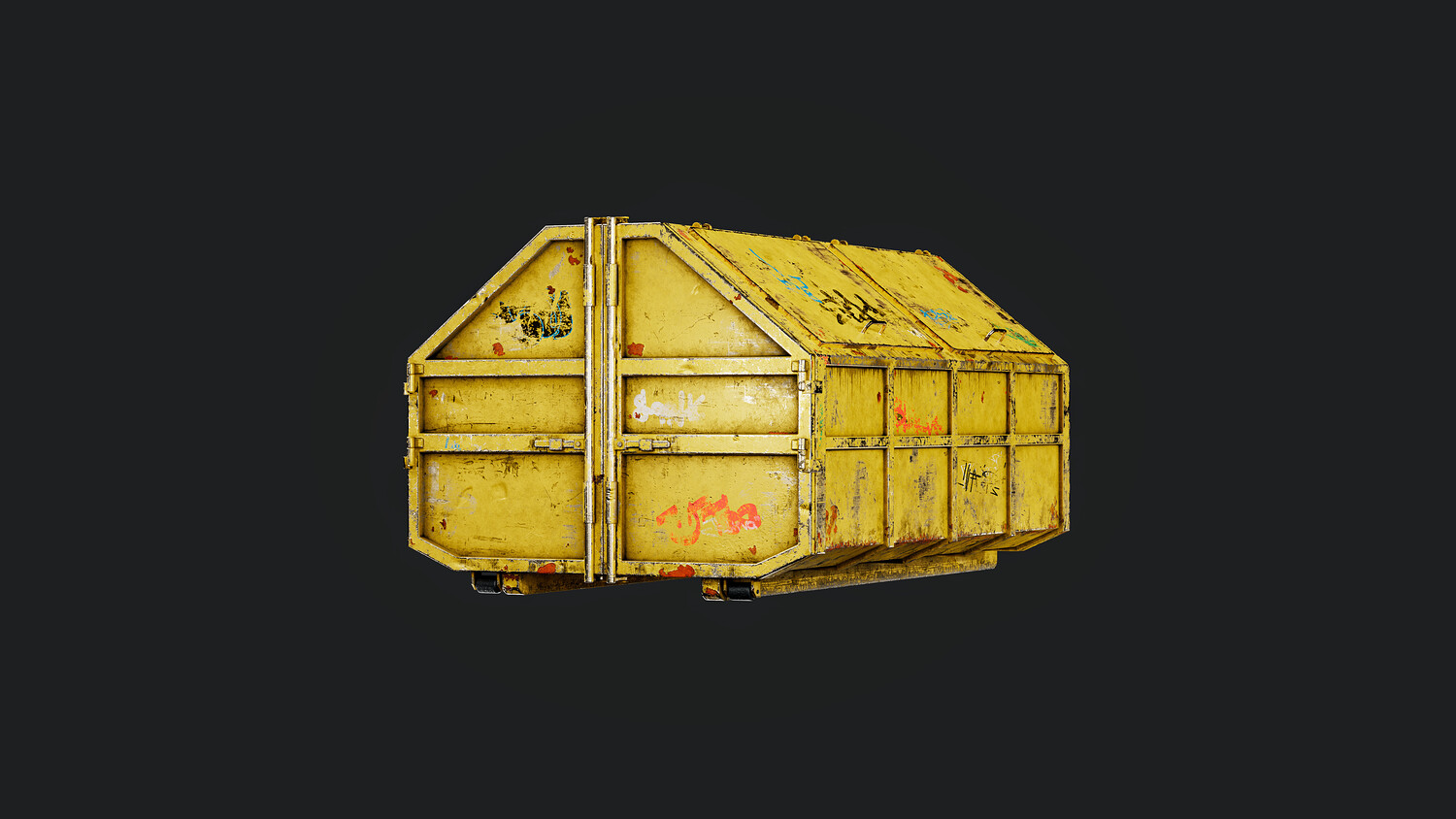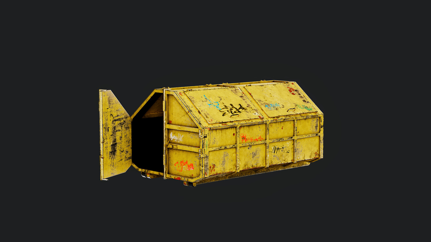 Game-ready asset of an outdoor trash can/dumpster. The model has two variants of textures: more damaged and less damaged. I made all the graffiti, so you can use this product in any project.