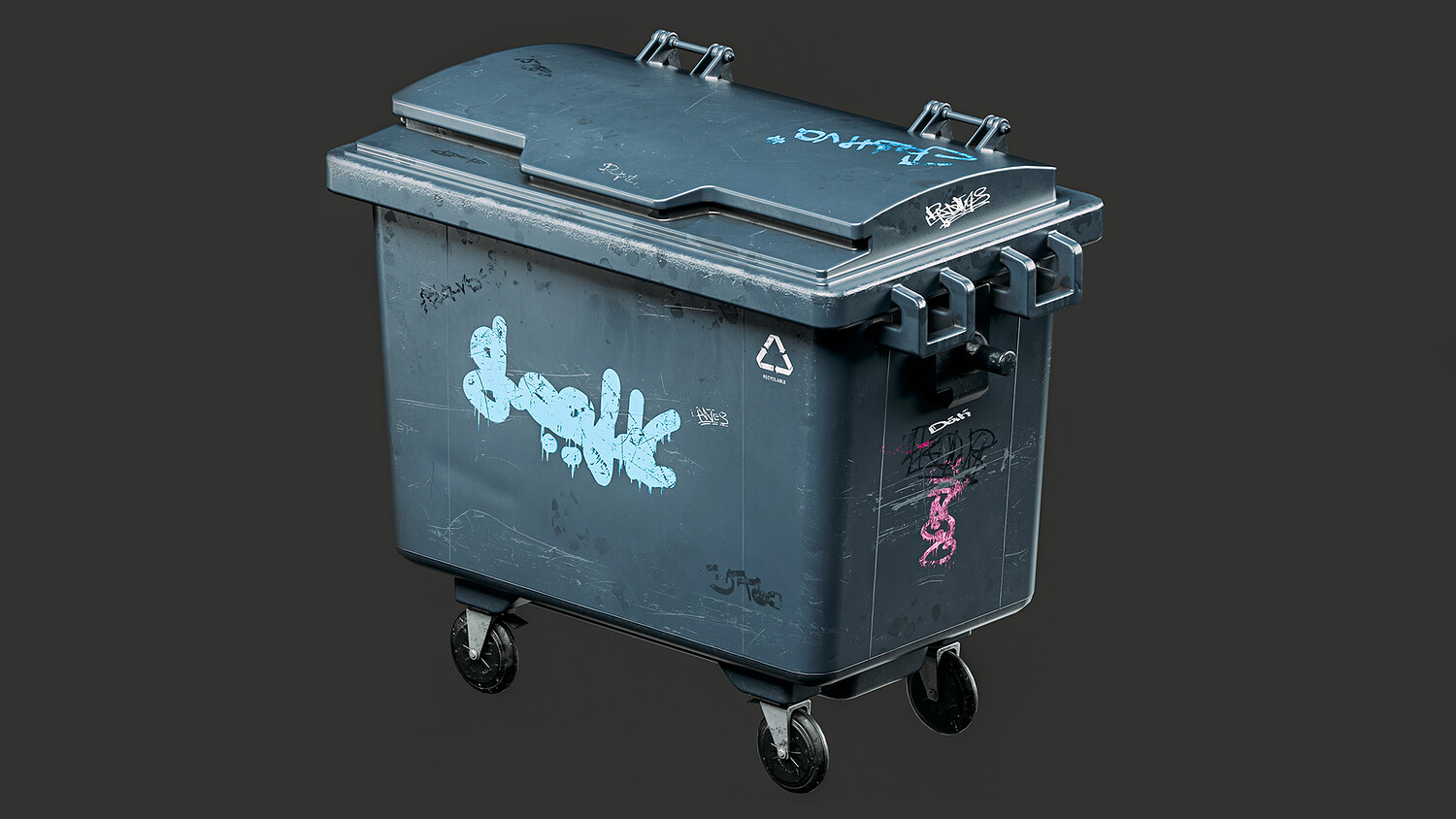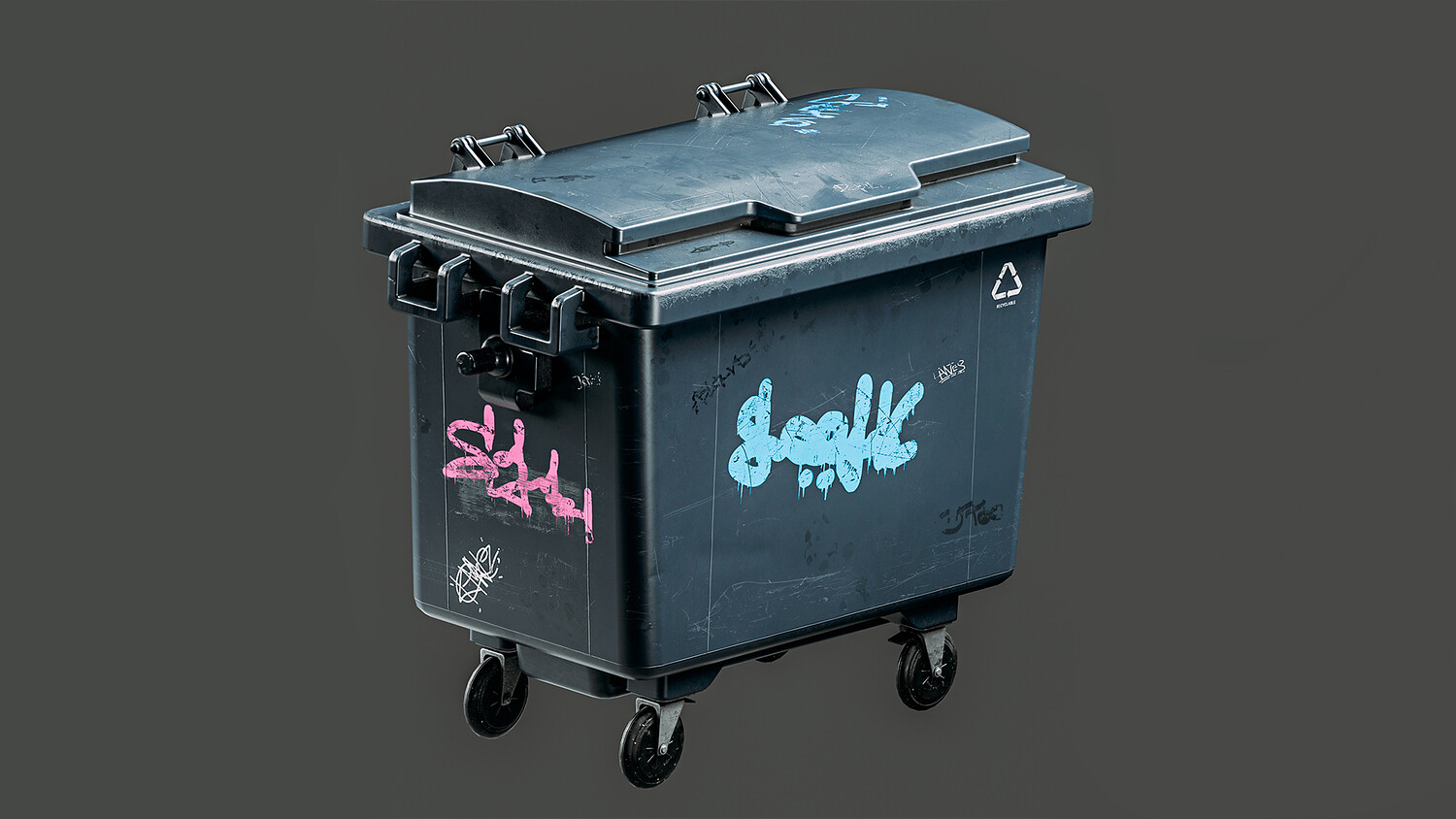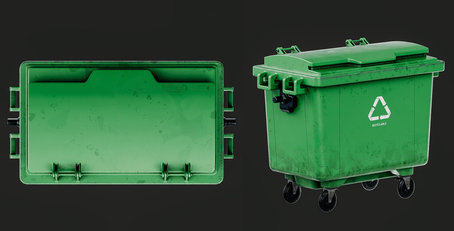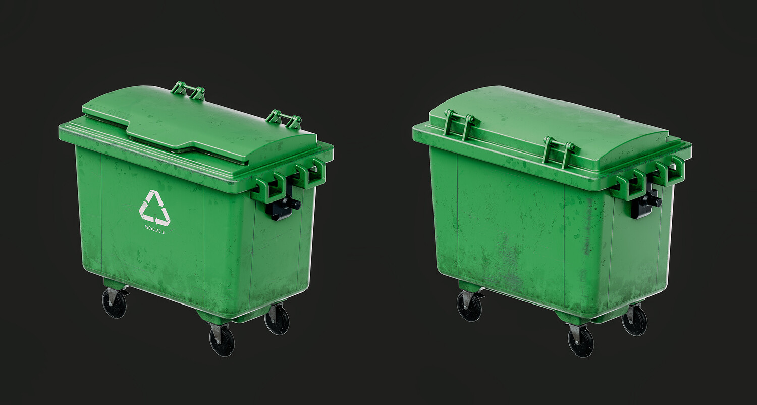 Game-ready asset of an outdoor trash can. The model has two variants of textures: grey (with graffiti and more damage) and green (with less damage and without graffiti) All the graffiti was made by me, so you can use this product in any project.