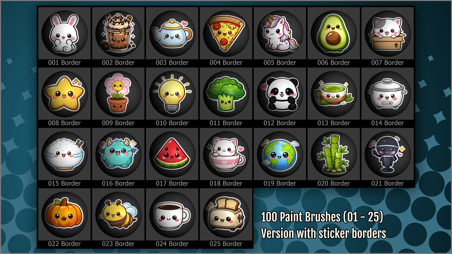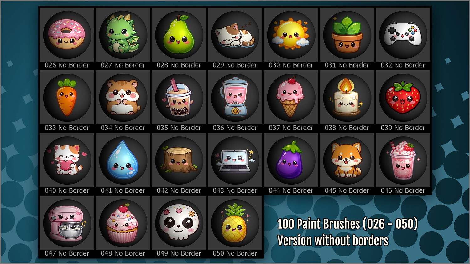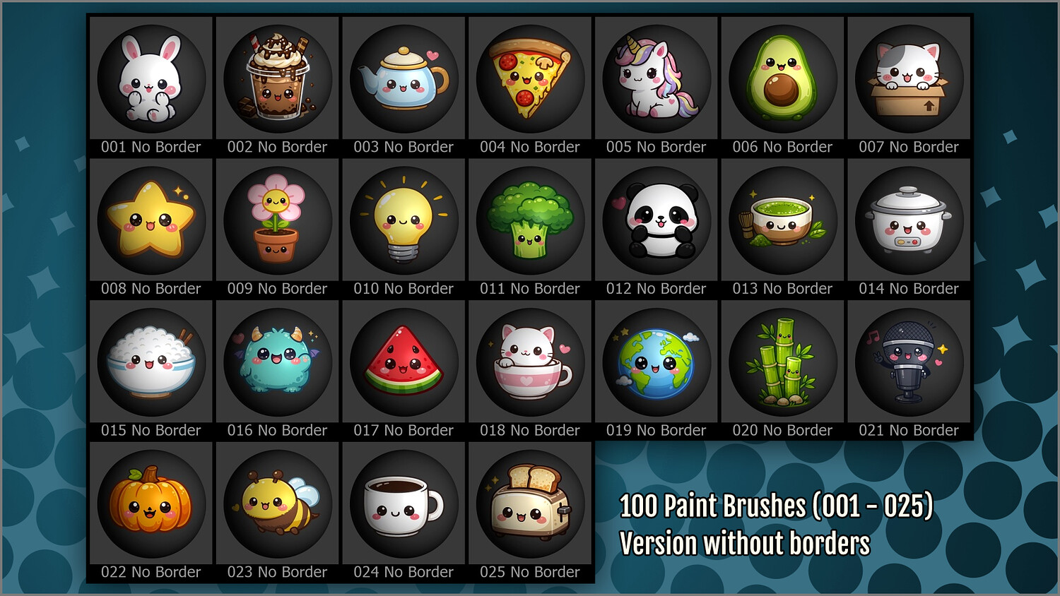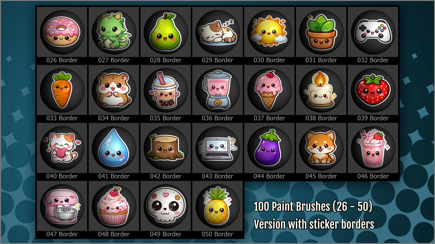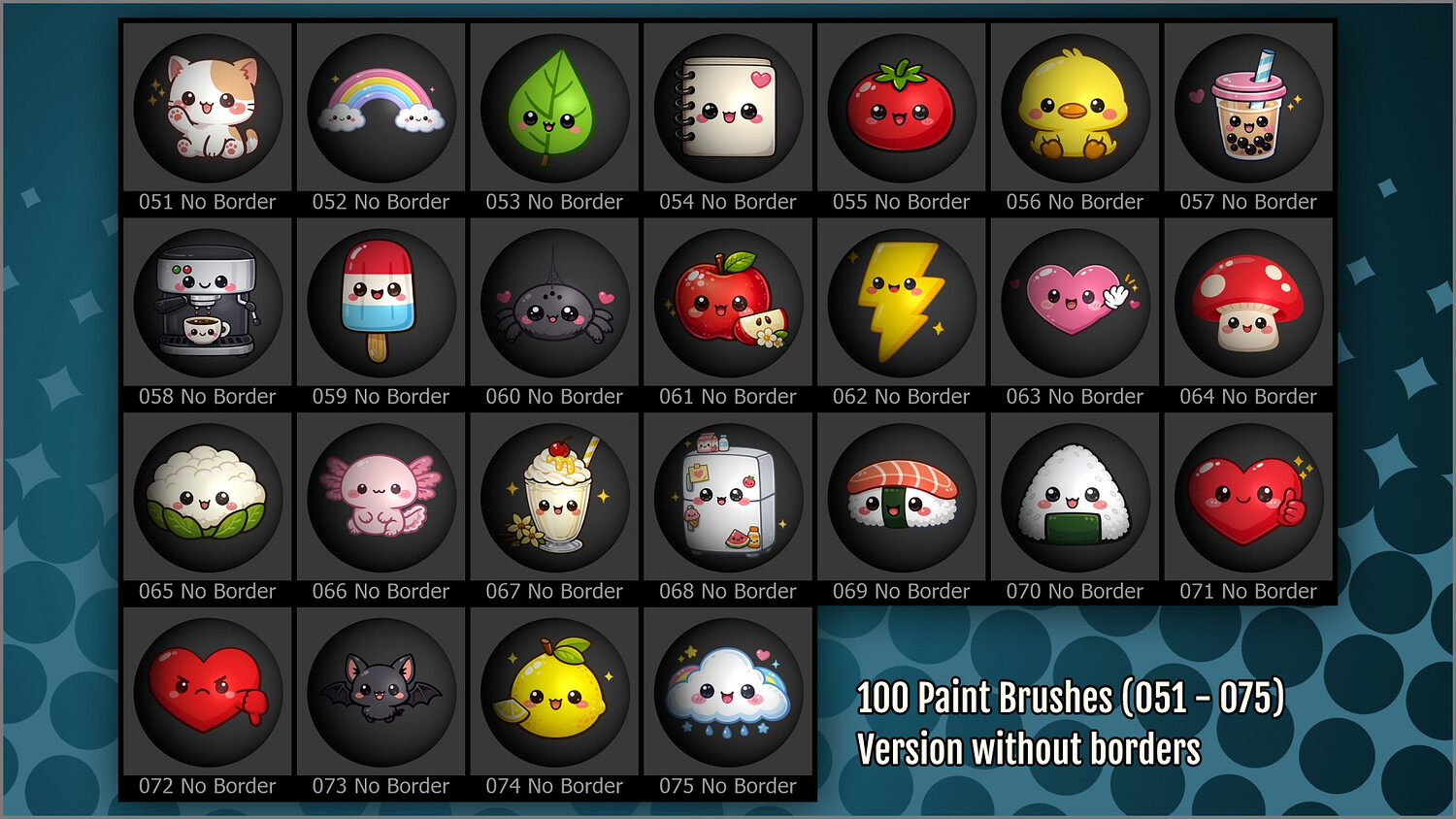 Get this megapack of *100 Kawaii Decals in PNG for any graphics editor, plus brushes for ZBrush and files for Substance Painter or any 3D painting app. * Save time, deliver more detail and depth to your models!