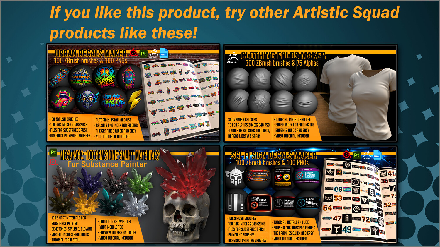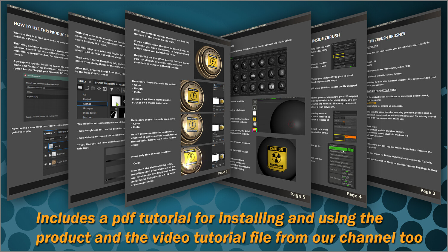 - PDF tutorial: learn how to install and use the brushes in ZBrush and Substance Painter.