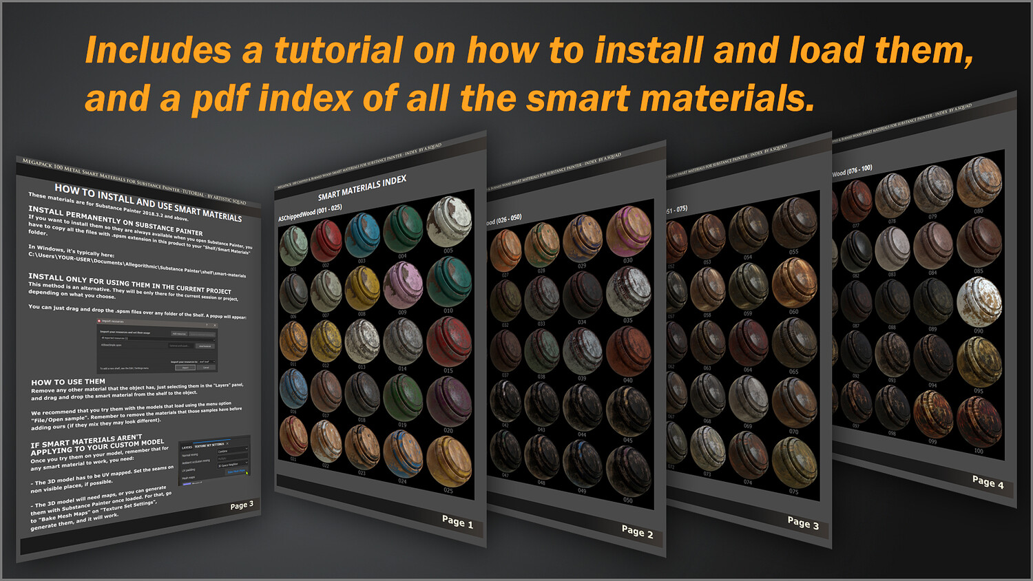 - PDF tutorial on how to install and load the smart materials in Substance Painter.