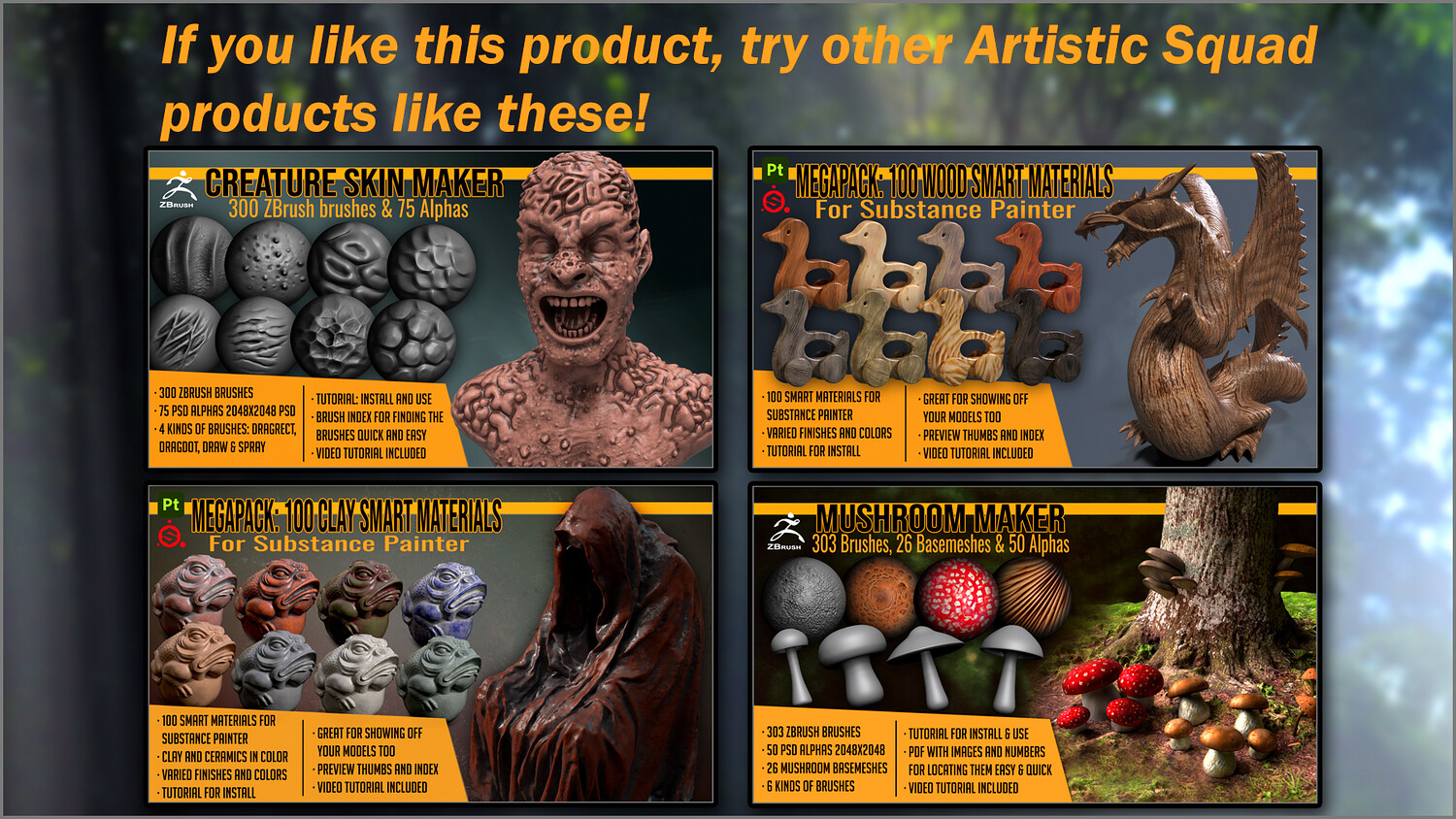 Get this megapack of 100 Bark Smart Materials for Substance Painter, in many colors and finishes, prepared for drag and drop on your model. They are ready to look good on most lights, providing you with the look you need for your works.