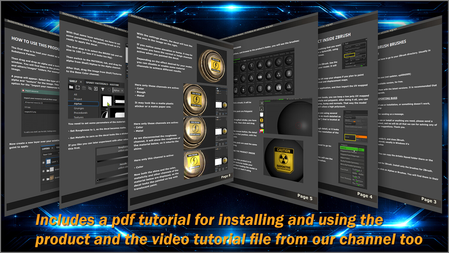 - PDF tutorial: learn how to install and use the brushes in ZBrush and Substance Painter.