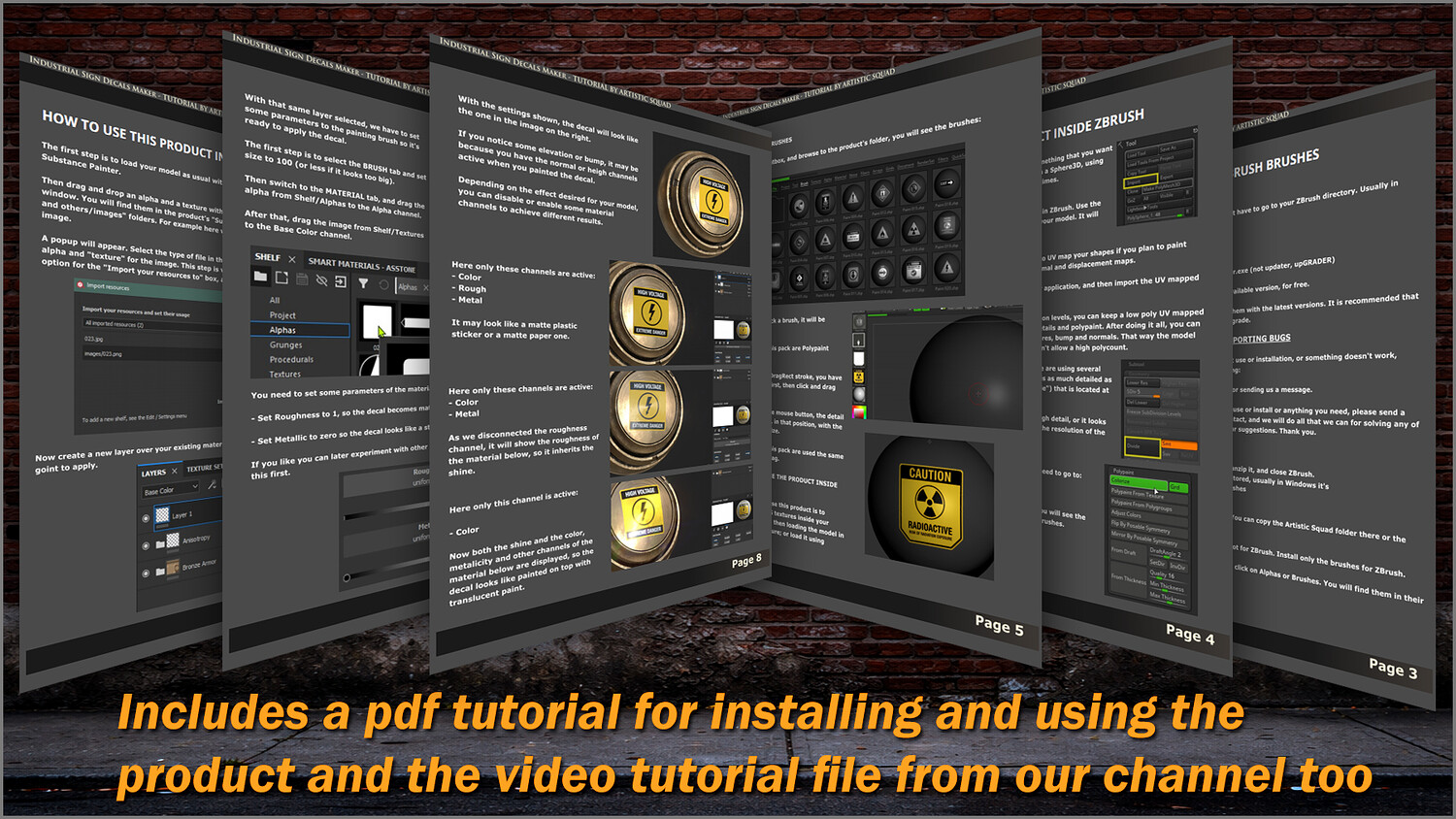 - PDF tutorial: learn how to install and use the brushes in ZBrush and Substance Painter.