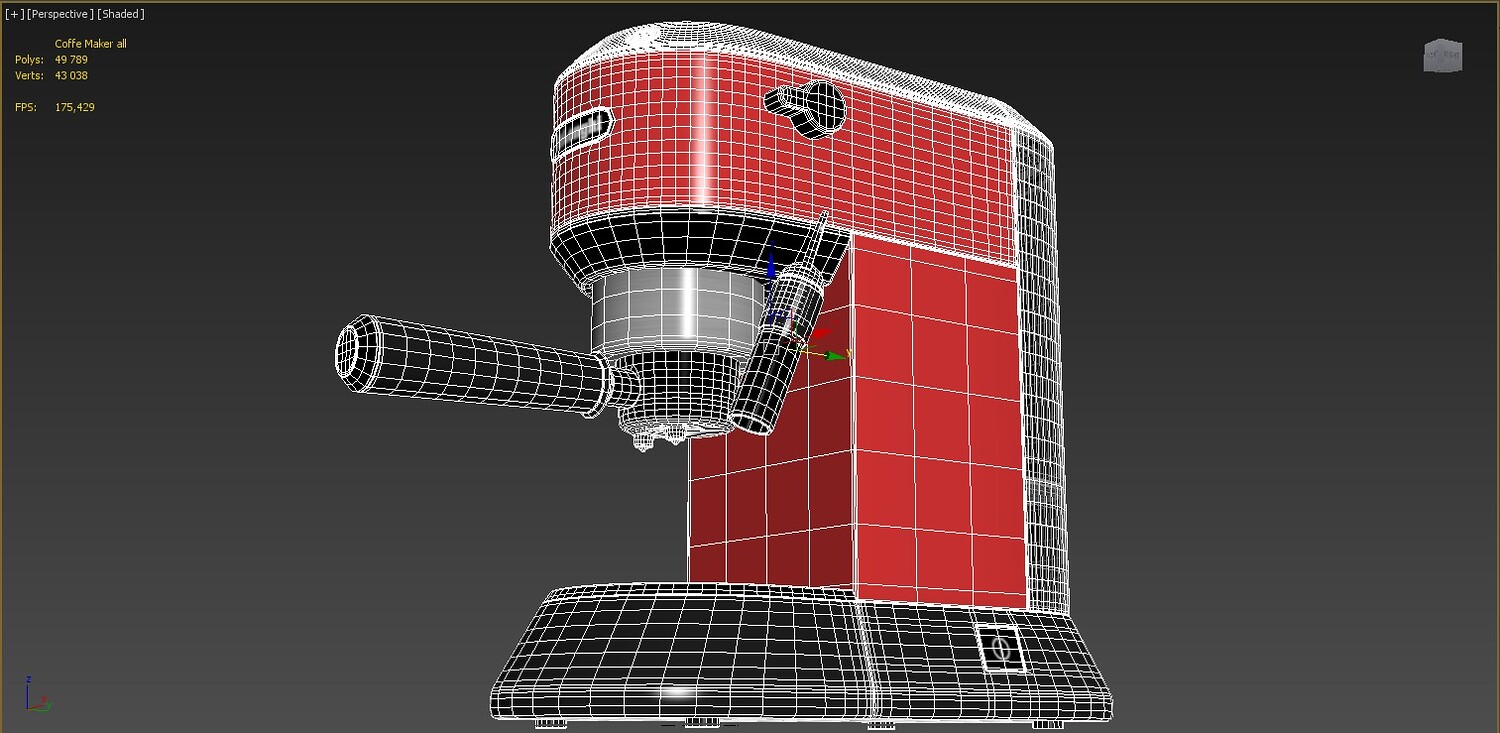 Сoffee machine model includes textures, UV maps. 3 colors - red, black, stainless steel. Model subdivision turbosmooth ready. Included file: max 2011, max 2014, obj, fbx, blend.