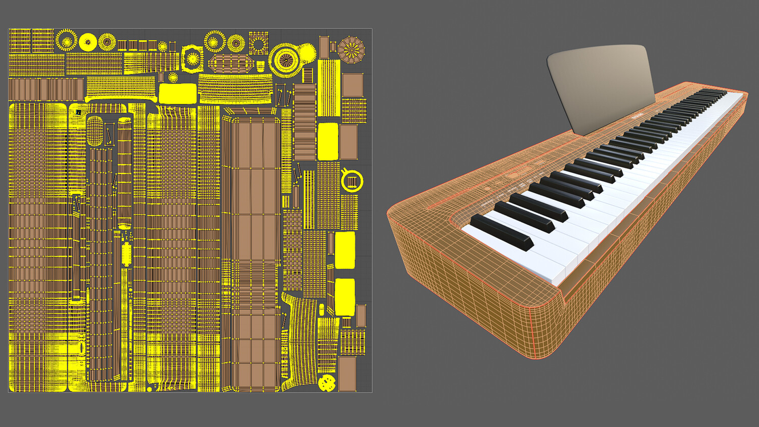 Digital Piano Yamaha P-145Subdivision ready model. Material for PBR, corona render. Such material with textures can be easily converted between different rendering engines (Corona, Vray, Arnold, Cycles).UV map - 2 channels. Chaneel 1 - base texture 4k. Channel 2 - text overprint.