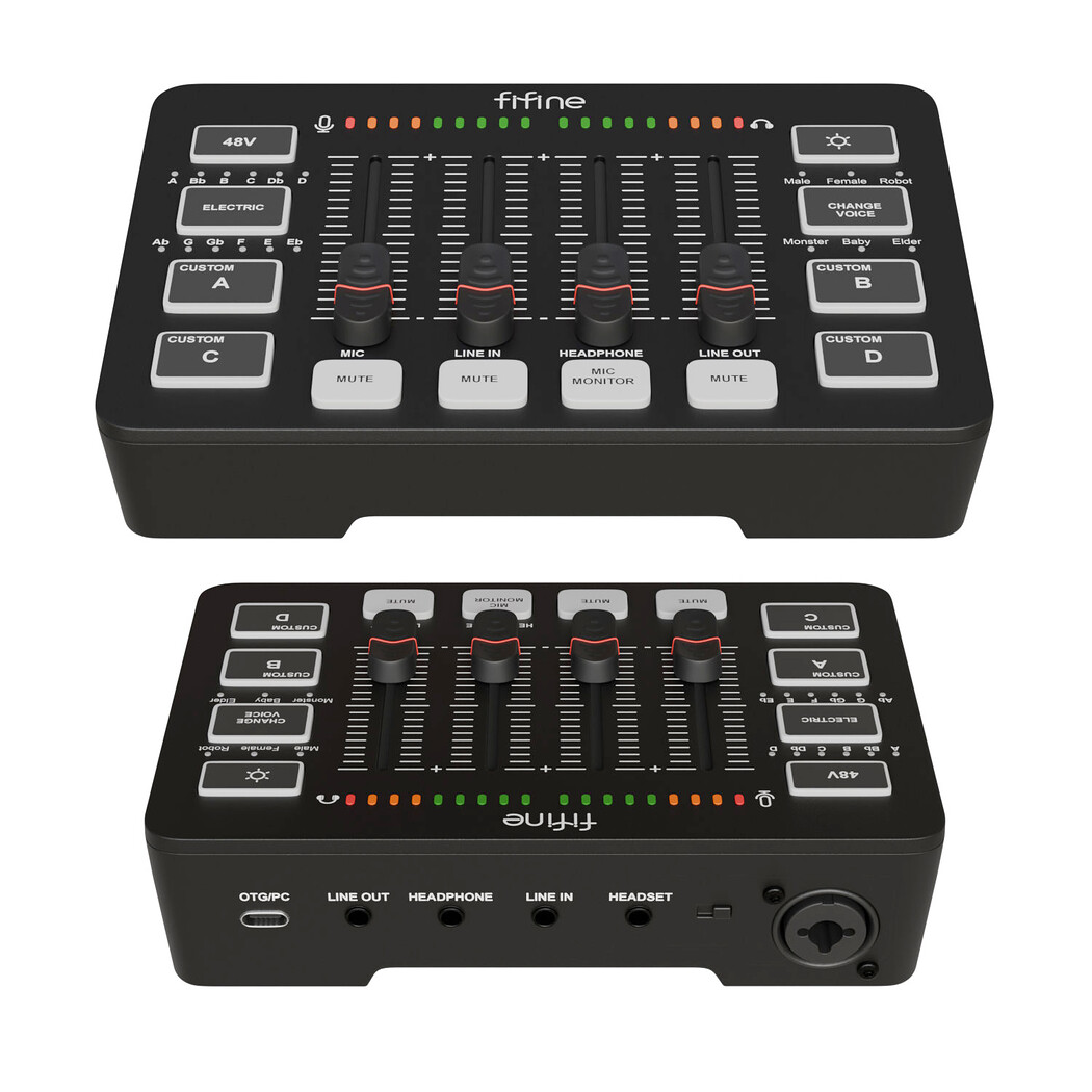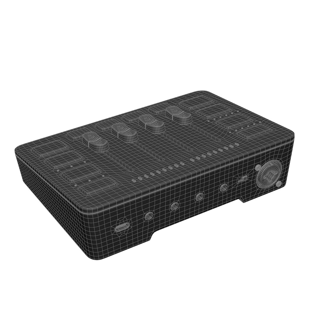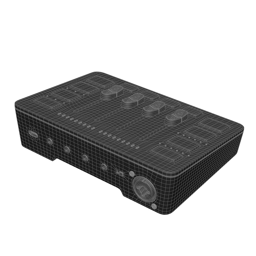 Audiointerface Fifine SC3 High-quality 3D render of the Fifine CS3 audio interface, designed for podcasting, streaming, and home studio recording. The model features detailed knobs, input/output ports, LED indicators, and a clean modern design. Isolated presentation makes it perfect for use in product visualization, music production concepts, technology showcases, and digital marketing materials. Realistic lighting and accurate proportions ensure professional commercial use. Sound card, turbosmooth ready model. PBR Standard Material UV-map - one UDIM