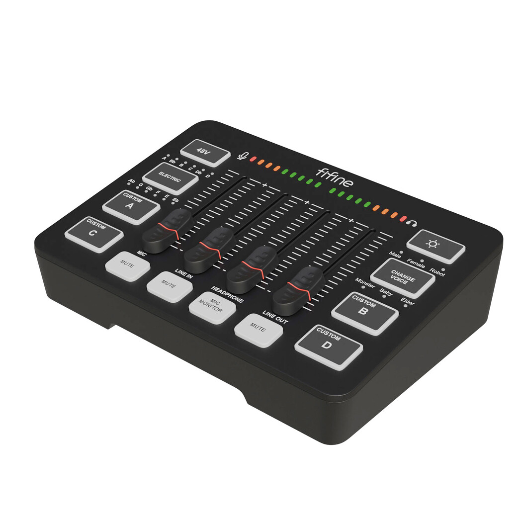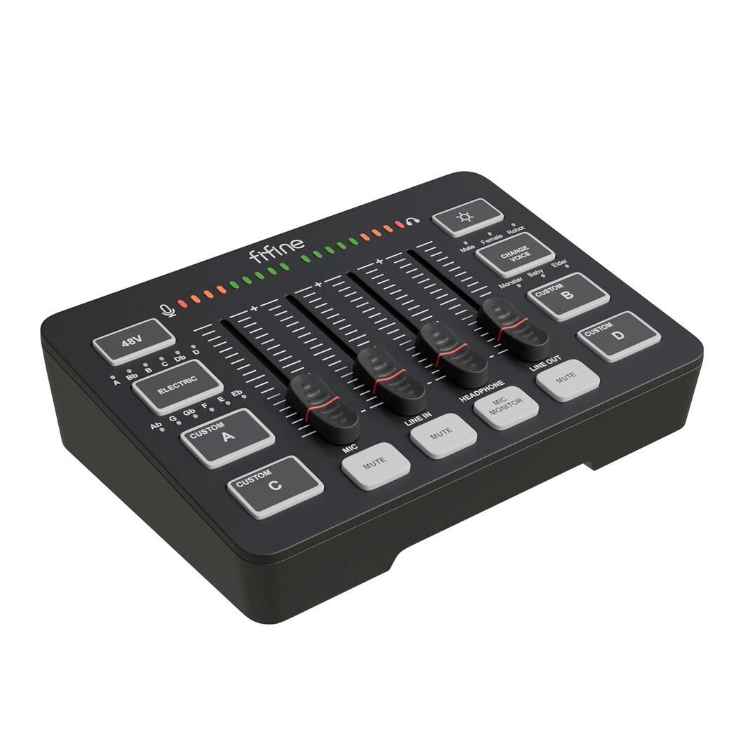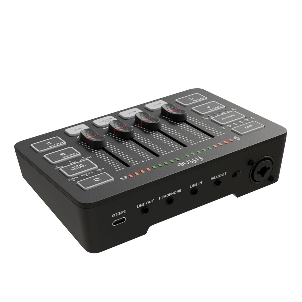 Audiointerface Fifine SC3 High-quality 3D render of the Fifine CS3 audio interface, designed for podcasting, streaming, and home studio recording. The model features detailed knobs, input/output ports, LED indicators, and a clean modern design. Isolated presentation makes it perfect for use in product visualization, music production concepts, technology showcases, and digital marketing materials. Realistic lighting and accurate proportions ensure professional commercial use. Sound card, turbosmooth ready model. PBR Standard Material UV-map - one UDIM