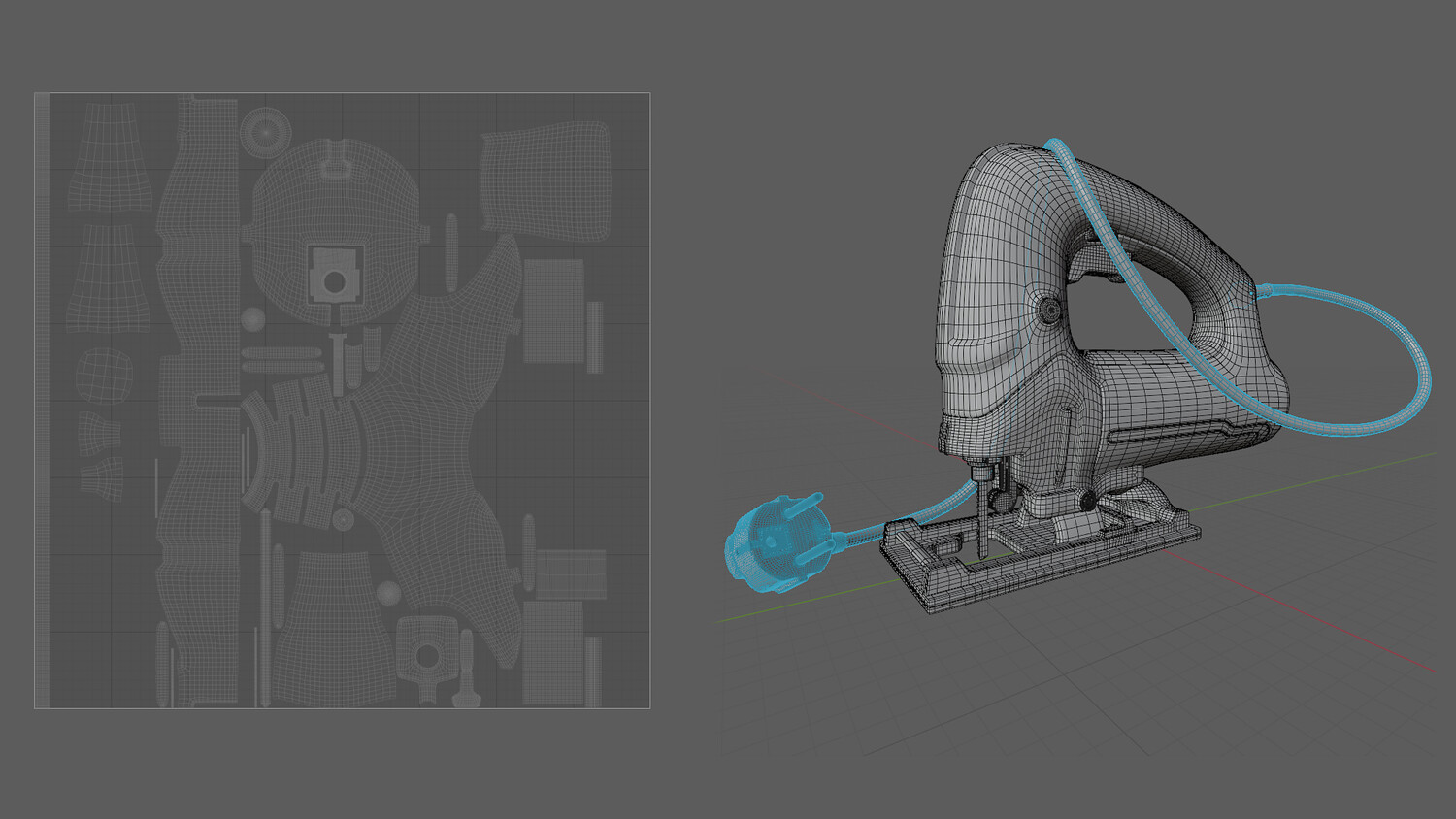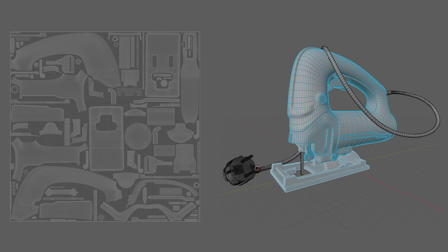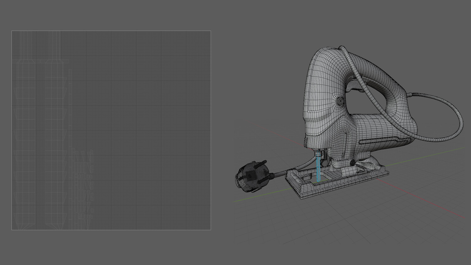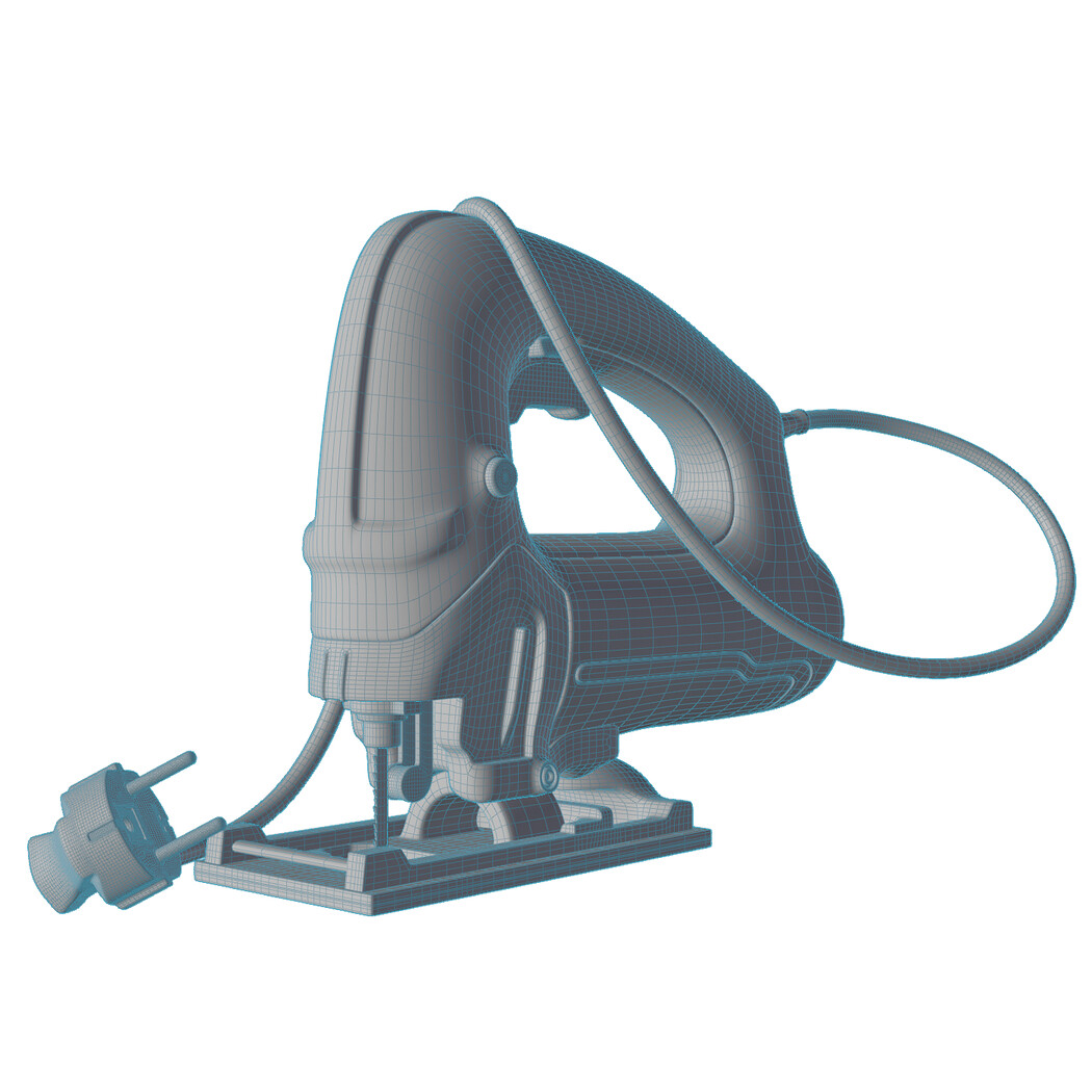 Jigsaw with saw and cable to the socket. The model is ready for smoothing Materials of the PBR standard There are 3 materials: Saw Cable Jigsaw