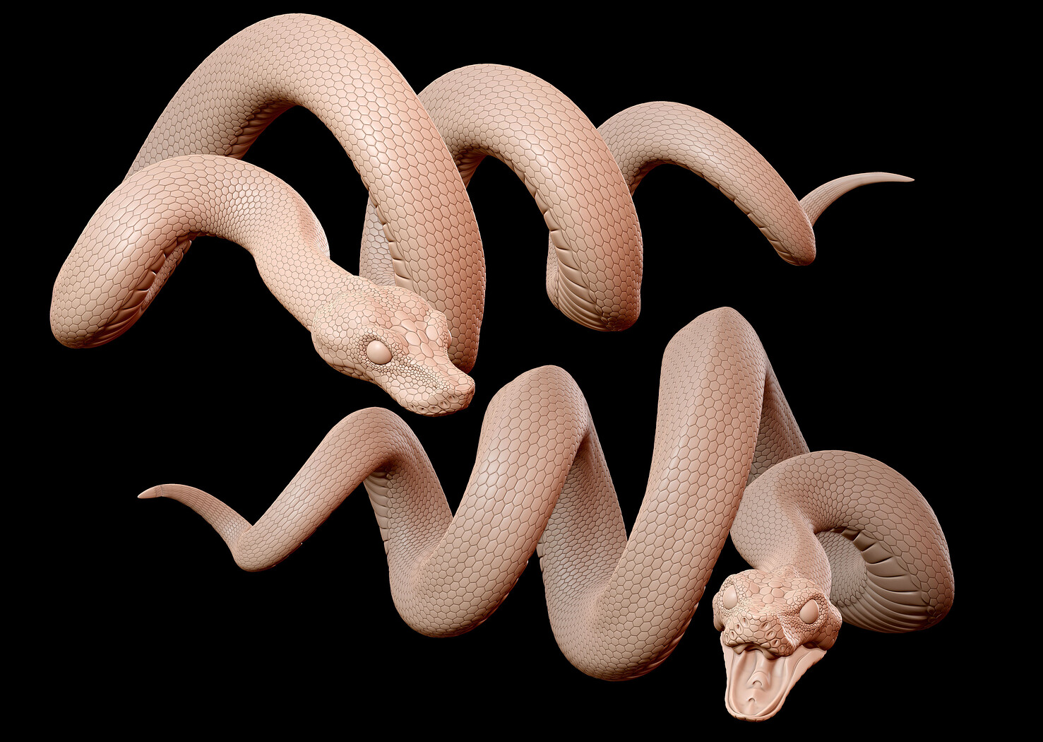 File: SNAKE _5.ZBP, SNAKE _5R.ZBP (reverse direction brush), Matcap1.zmt, Matcap2.zmt