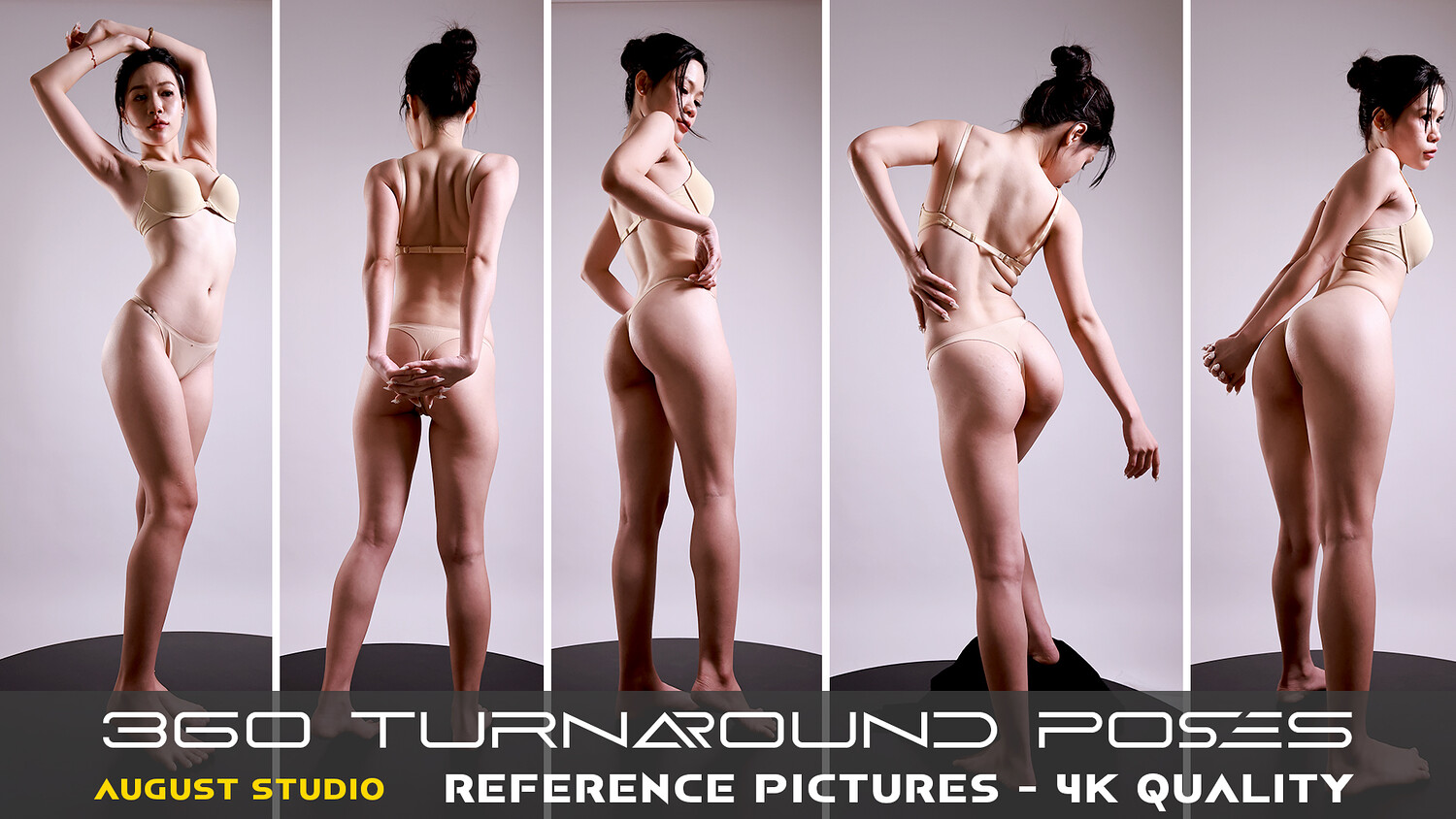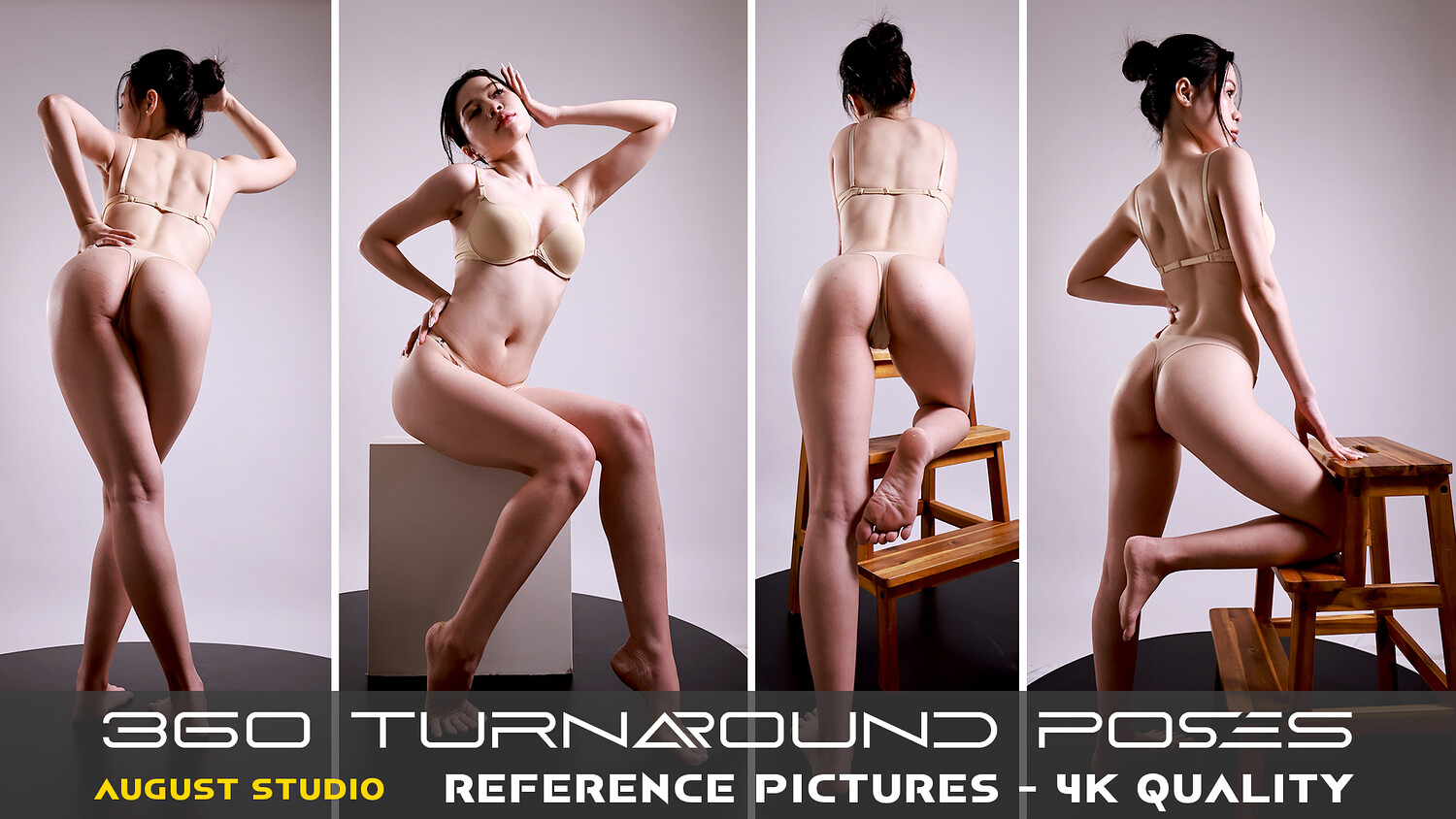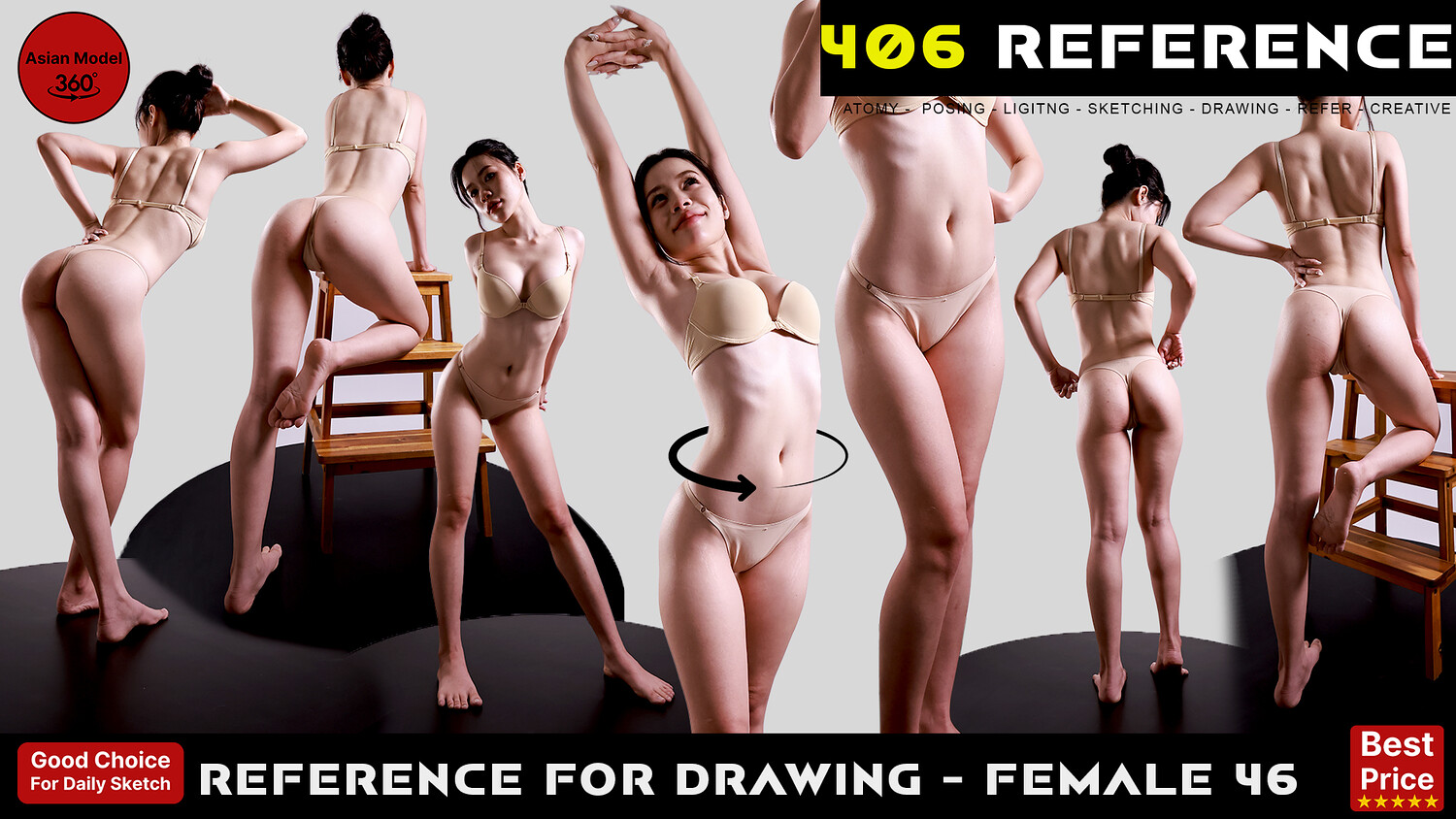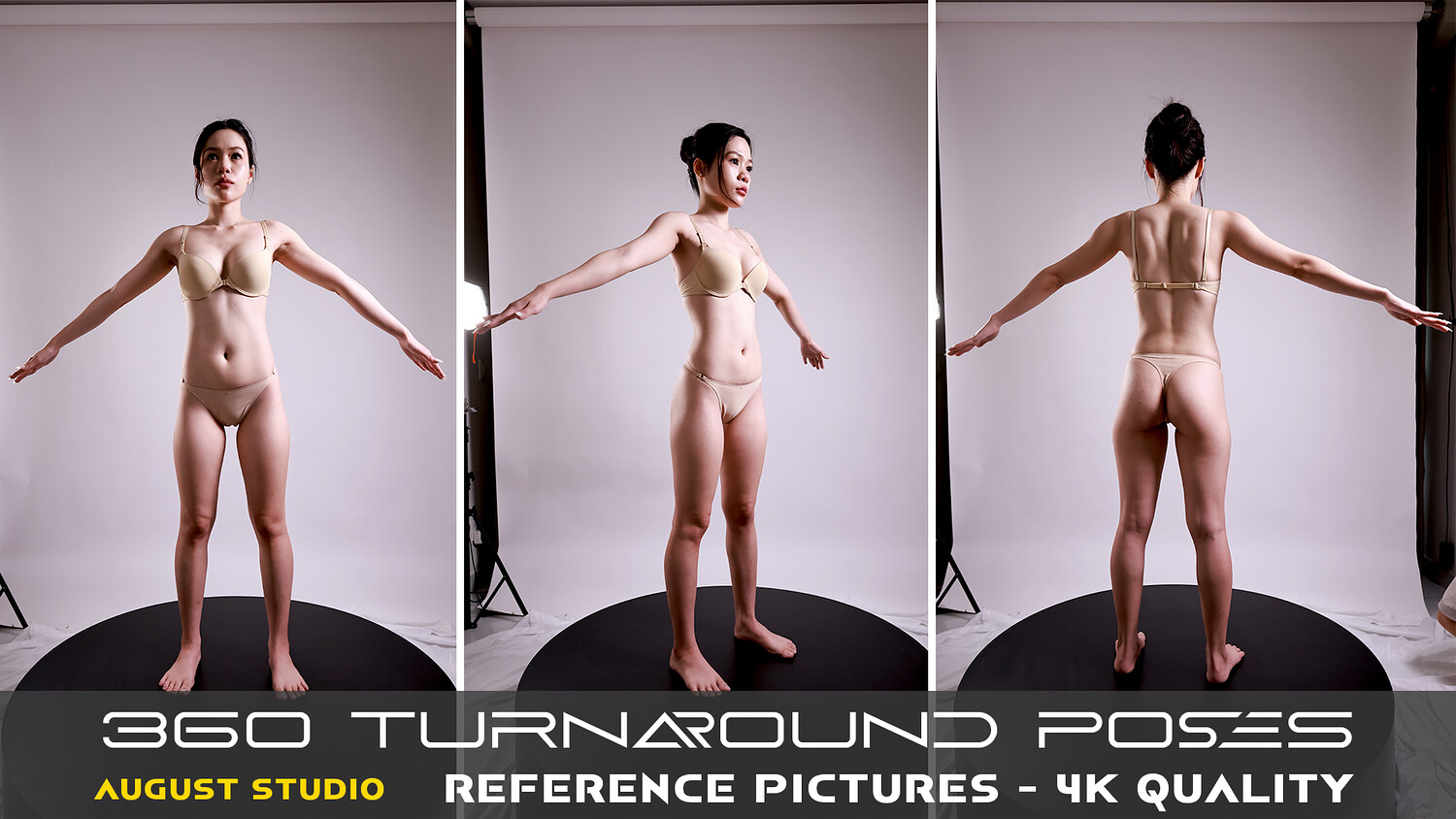 This is a set of pictures for reference and learning purposes about anatomy, character design, posing, and lighting. This collection has a total of 406 high-quality reference pictures. 360 Turnaround Poses.