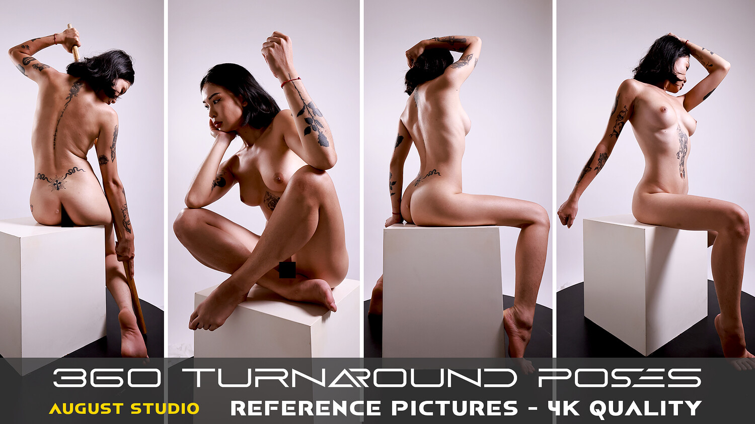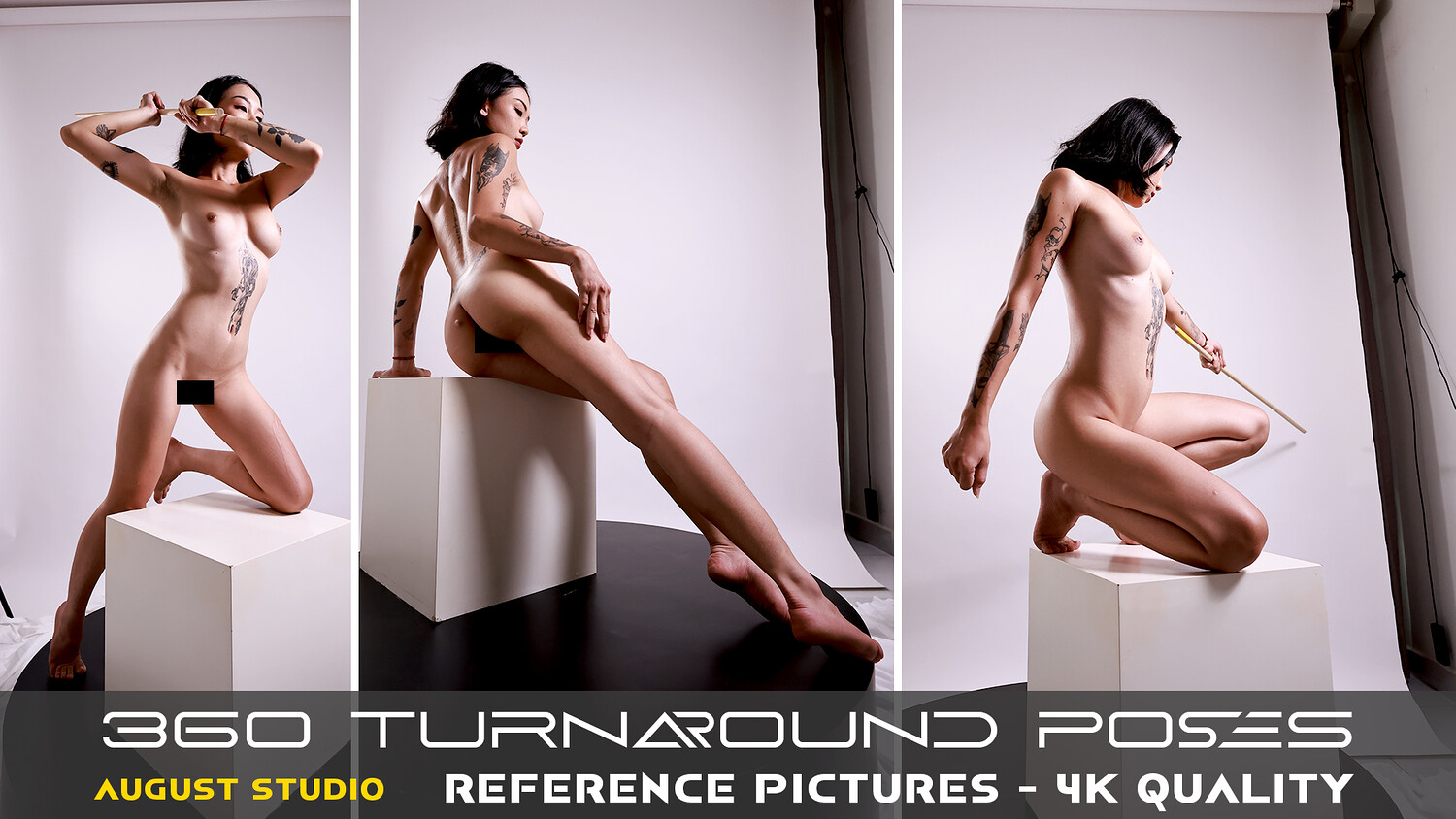 We would like to introduce to you the reference pictures set "Drawing Reference - Female 44". This is a set of pictures for reference and learning purposes about anatomy, character design, posing, and lighting. This collection has a total of 387 high-quality reference pictures, a lot pose taken with 360 turnaround.