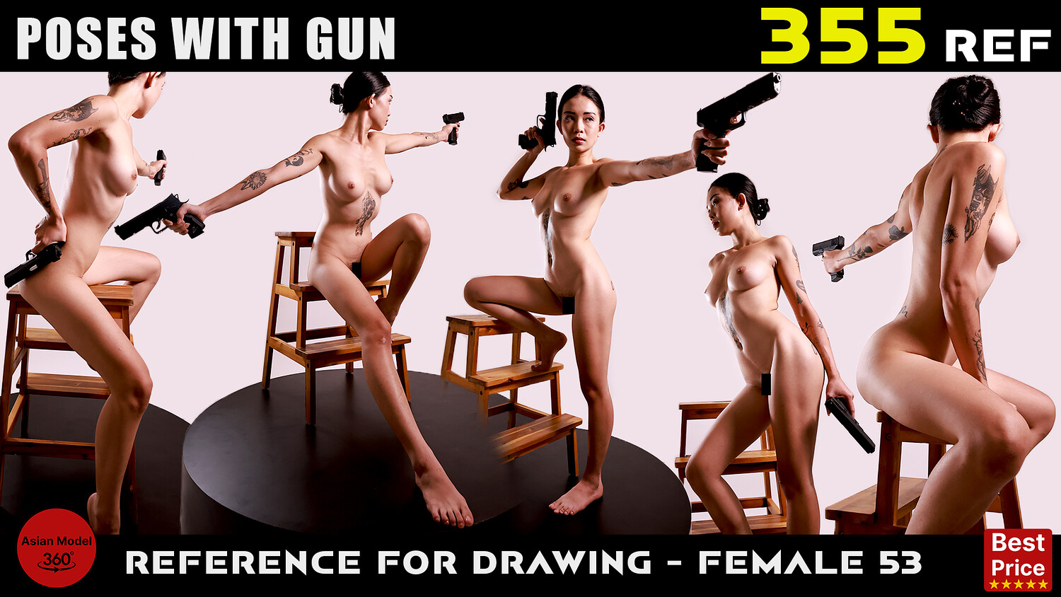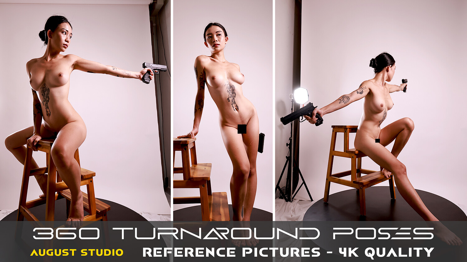 Poses With Gun This is a set of pictures for reference and learning purposes about anatomy, character design, posing, and lighting. This collection has a total of 355 high-quality reference pictures. 360 Turnaround Poses.