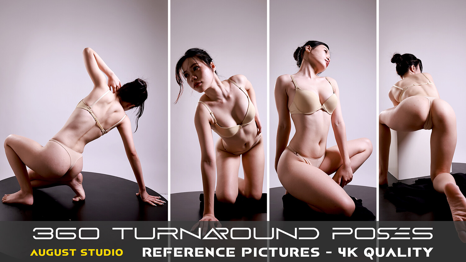 This is a set of pictures for reference and learning purposes about anatomy, character design, posing, and lighting. This collection has a total of 376 high-quality reference pictures. 360 Turnaround Poses.