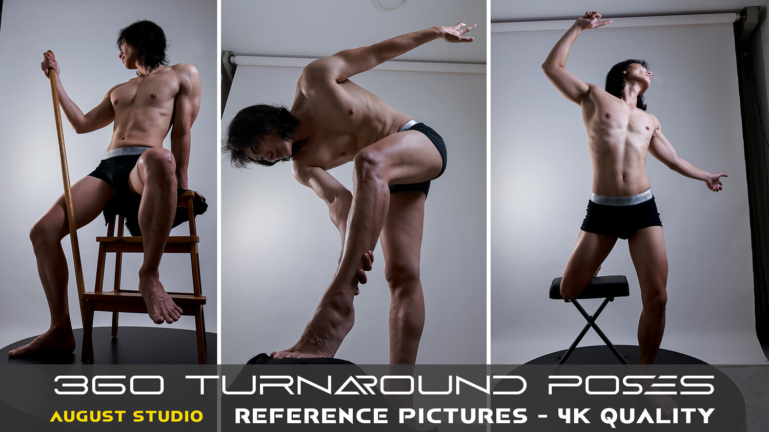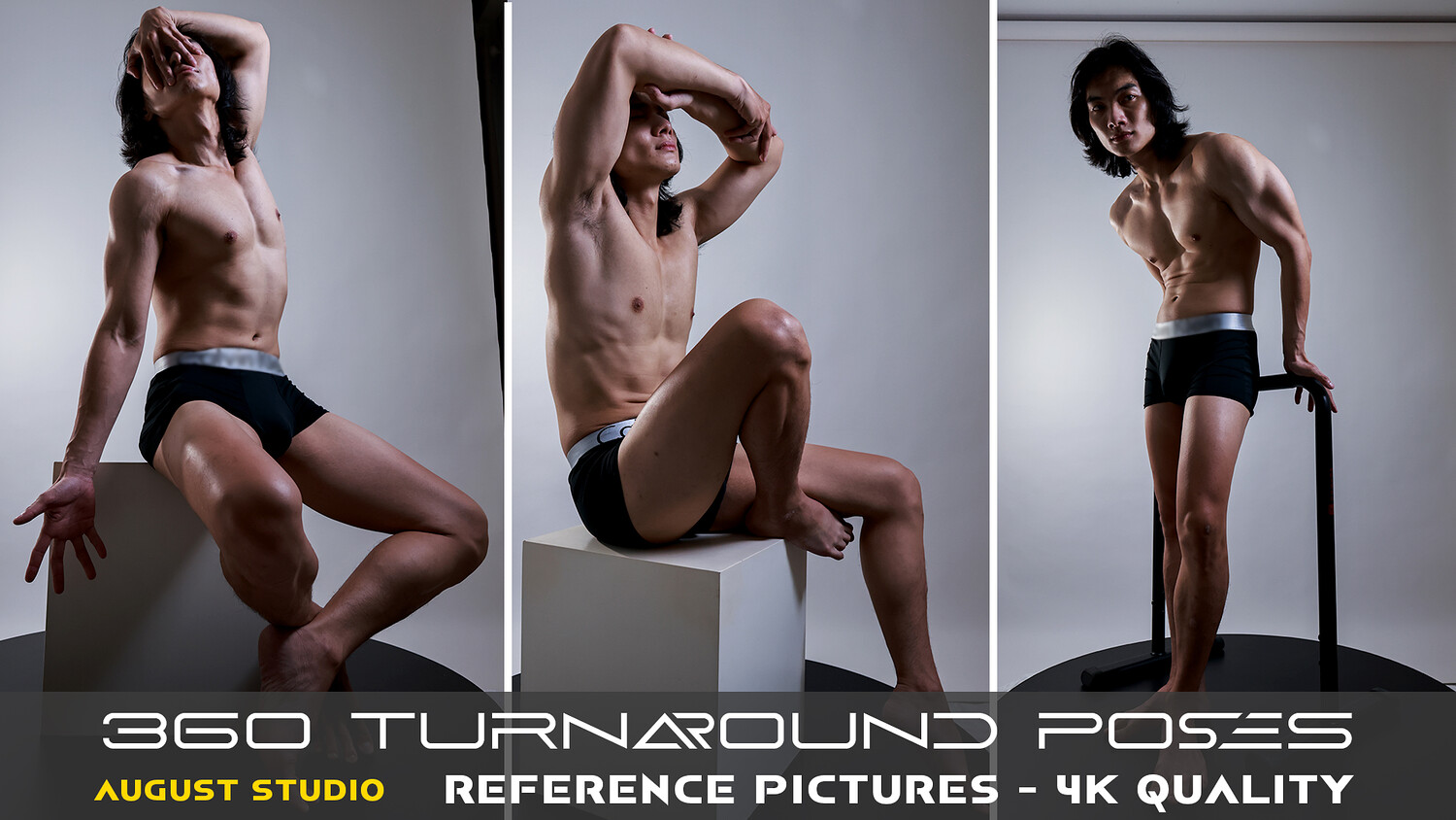 This is a set of pictures for reference and learning purposes about anatomy, character design, posing, and lighting. This collection has a total of 340 high-quality reference pictures. 360 Turnaround Poses.