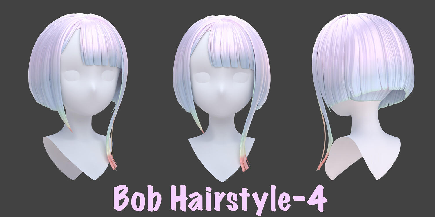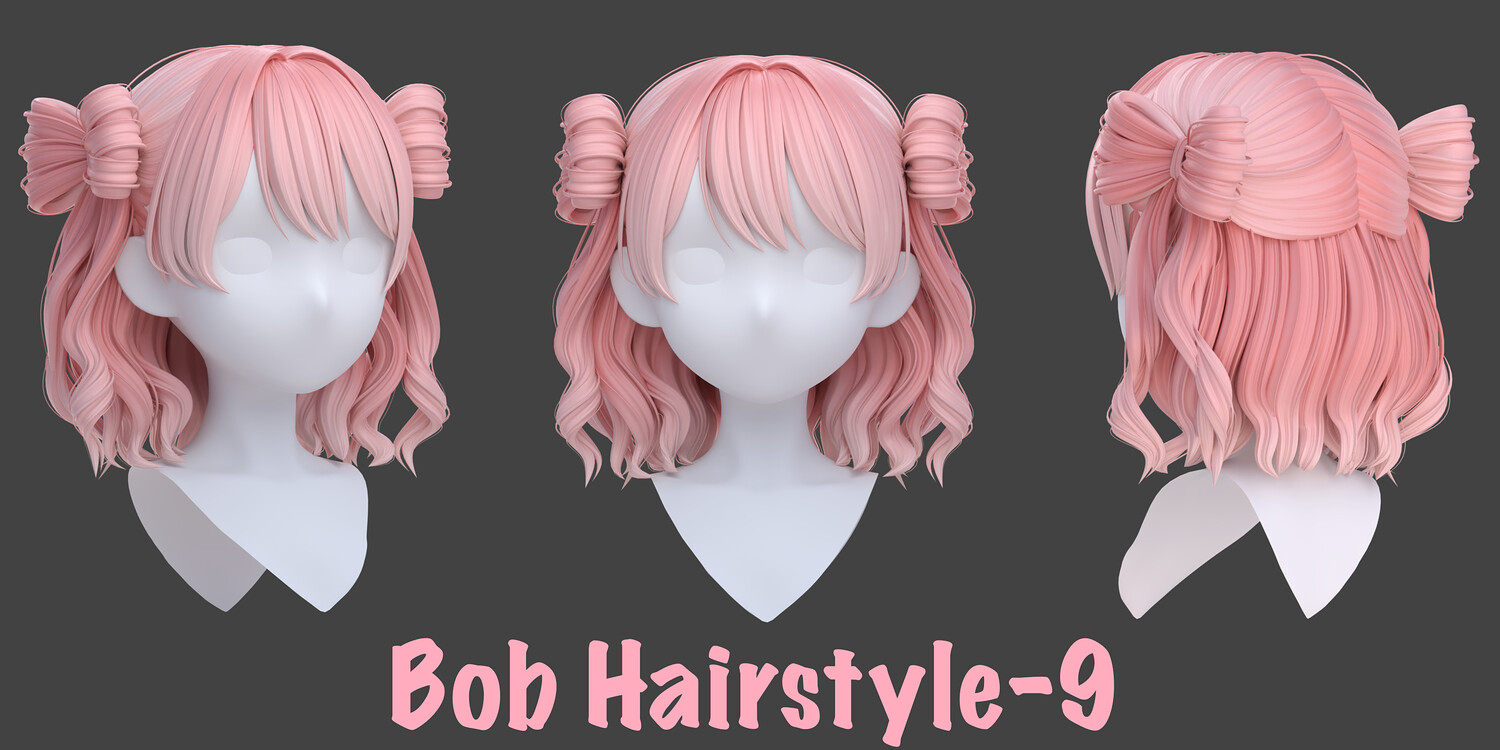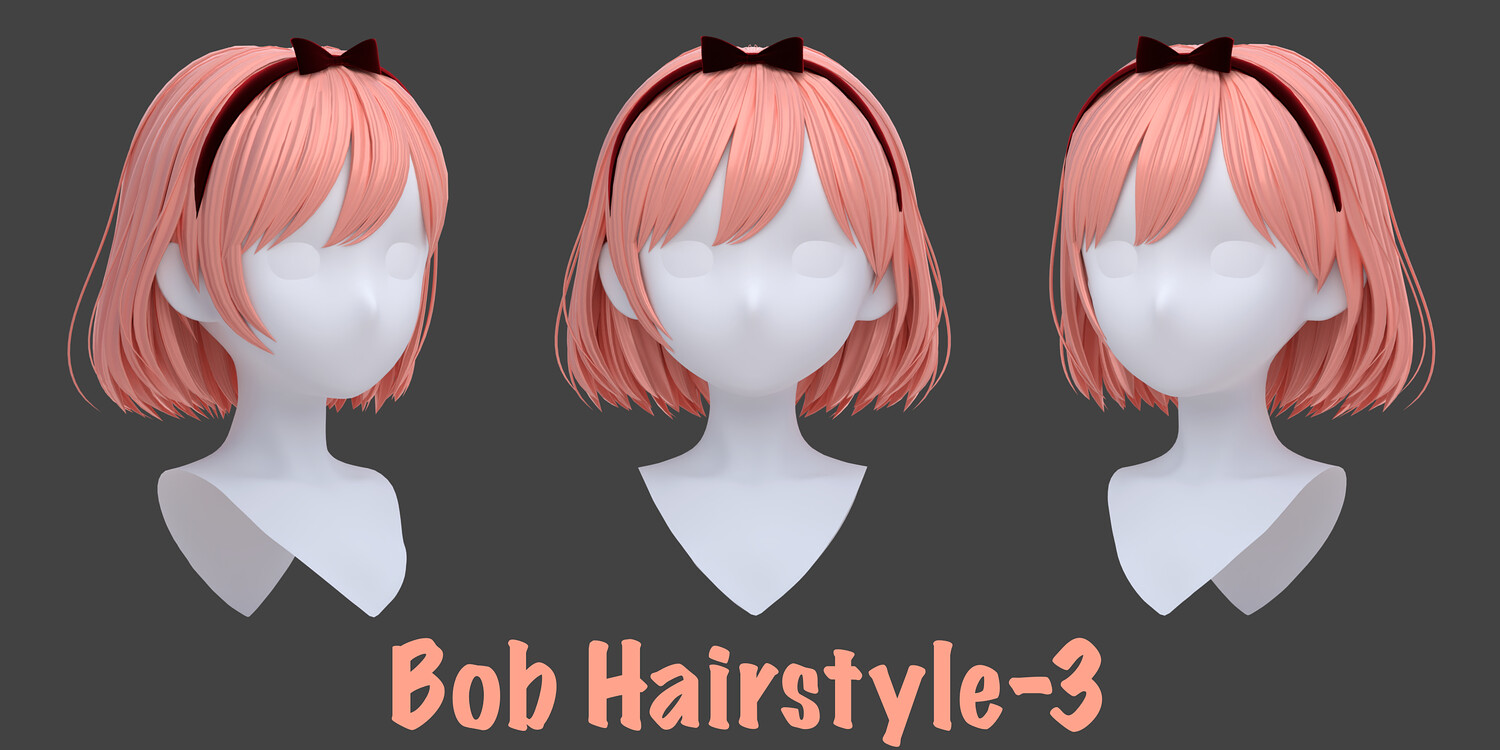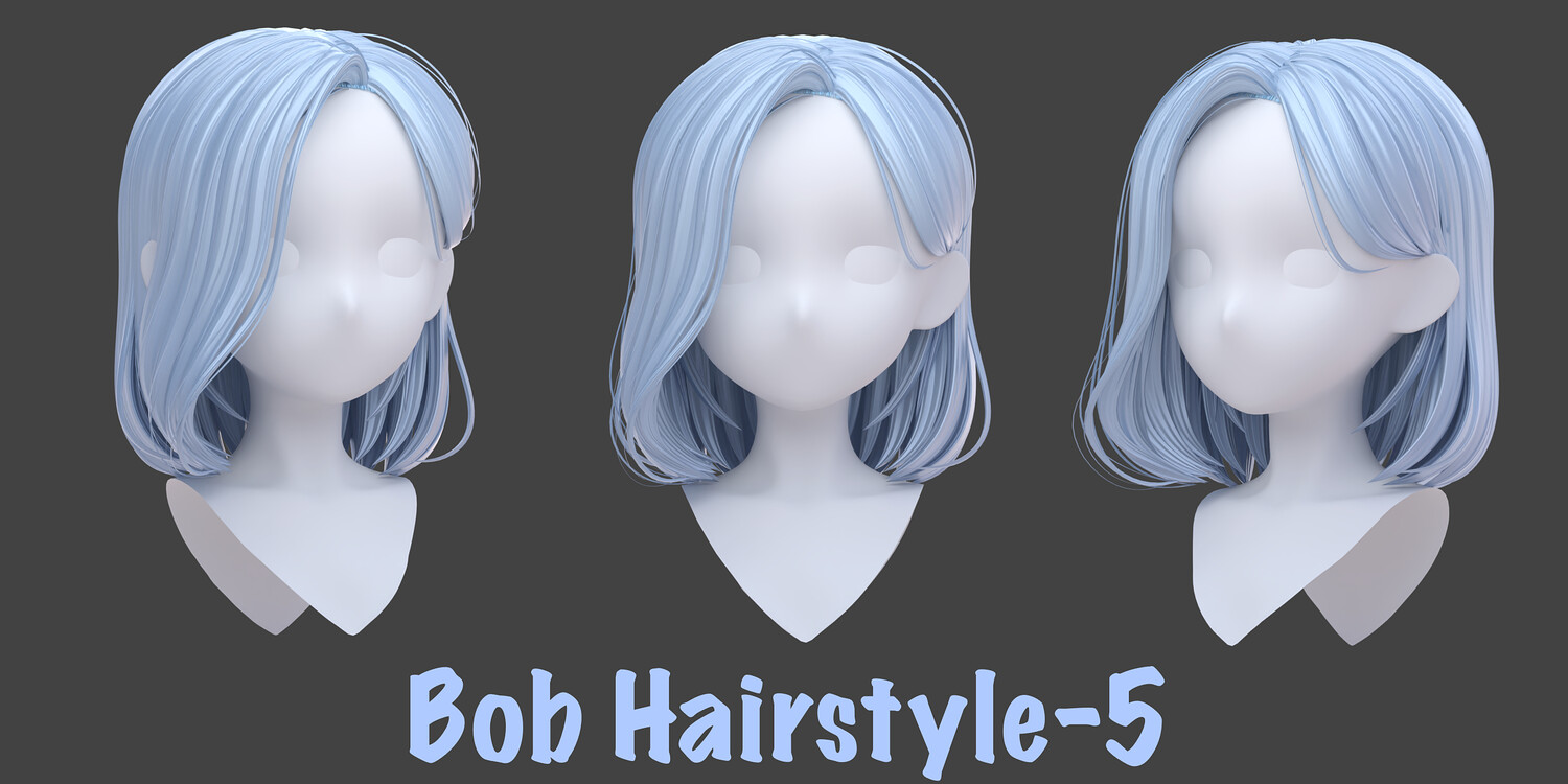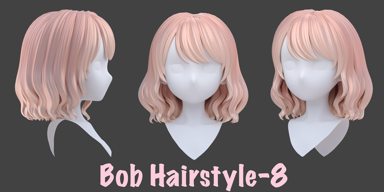 The pack includes: - 12 types of bob Hairstyles - Blender files (curve +mesh)- built as a fully modular hair system.Each hairstyle is separated into parts, allowing you to mix, match, and customize freely to create multiple variations from a single base.The hair is provided in both curve-based and mesh-based versions, giving you full control over shape, structure, and export workflow. -Different types of bangs for creating more variations (interchange the bangs to get a different hairstyle) - Head Mesh and other accessories