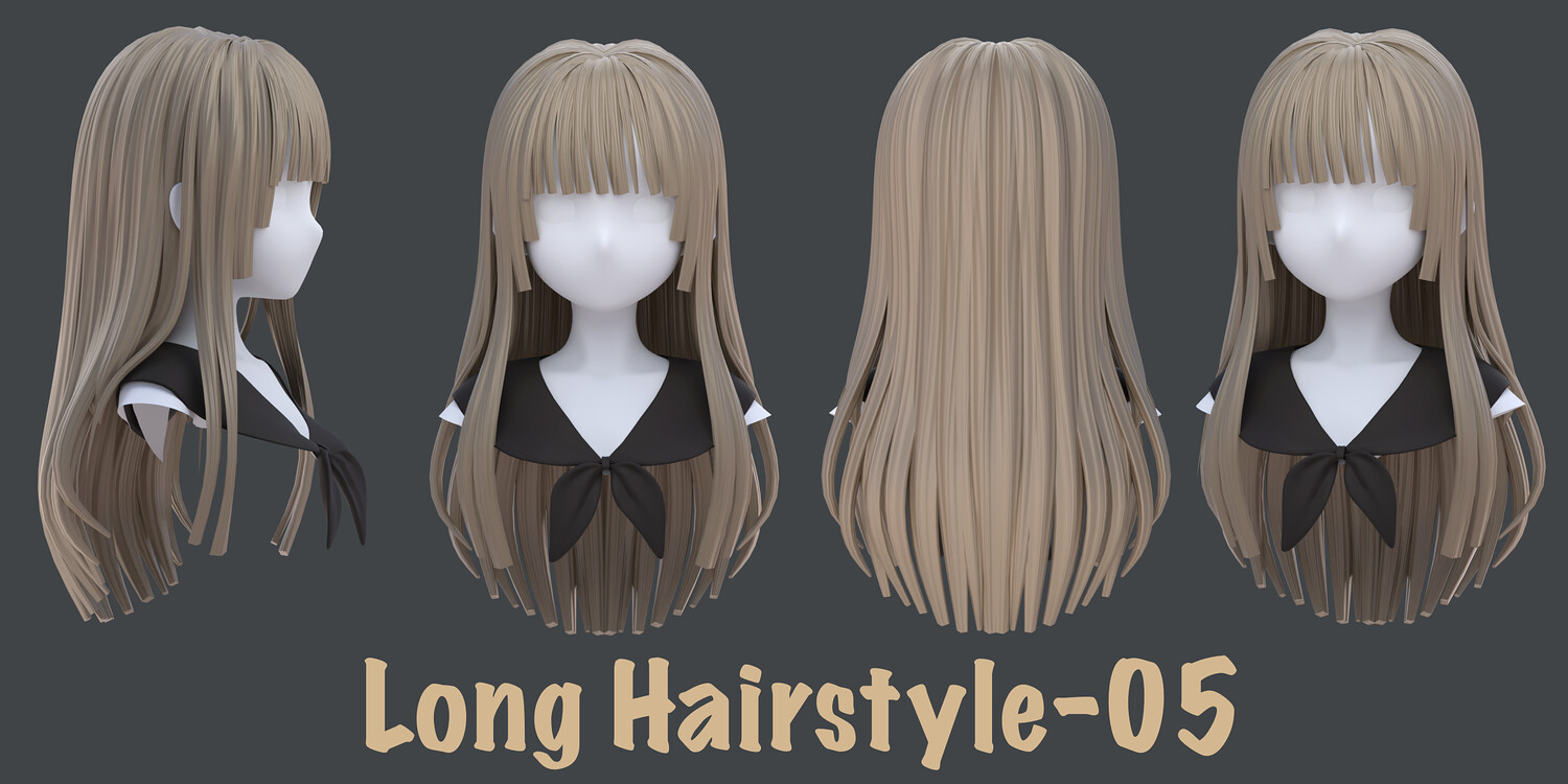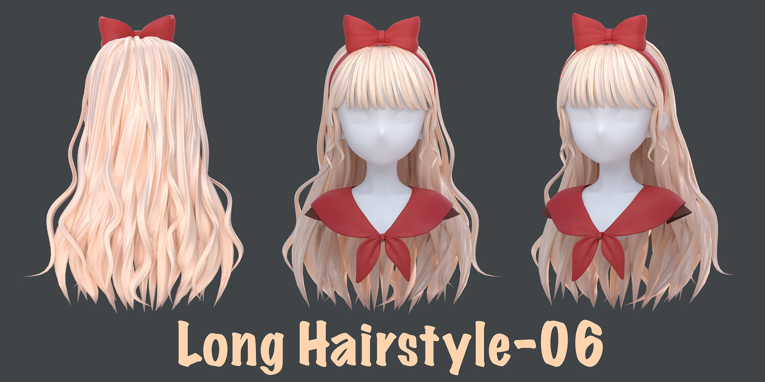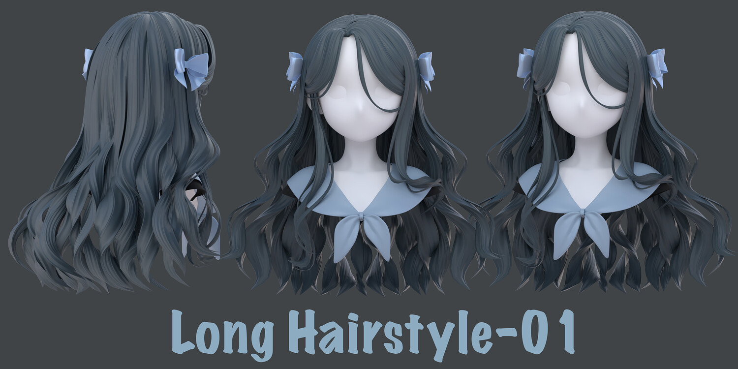 The pack includes: - 9 types of long Hairstyles - Blender files (curve +mesh)- built as a fully modular hair system. - Each hairstyle is separated into parts, allowing you to mix, match, and customize freely to create multiple variations from a single base. - The hair is provided in both curve-based and mesh-based versions, giving you full control over shape, structure, and export workflow. - Interchange the bangs to get a different hairstyle - Head Mesh and other accessories