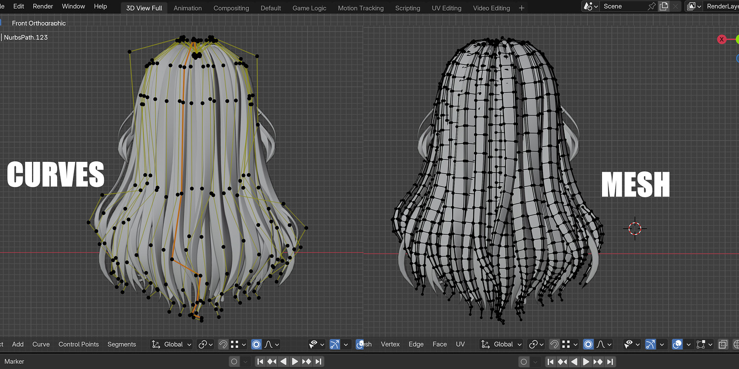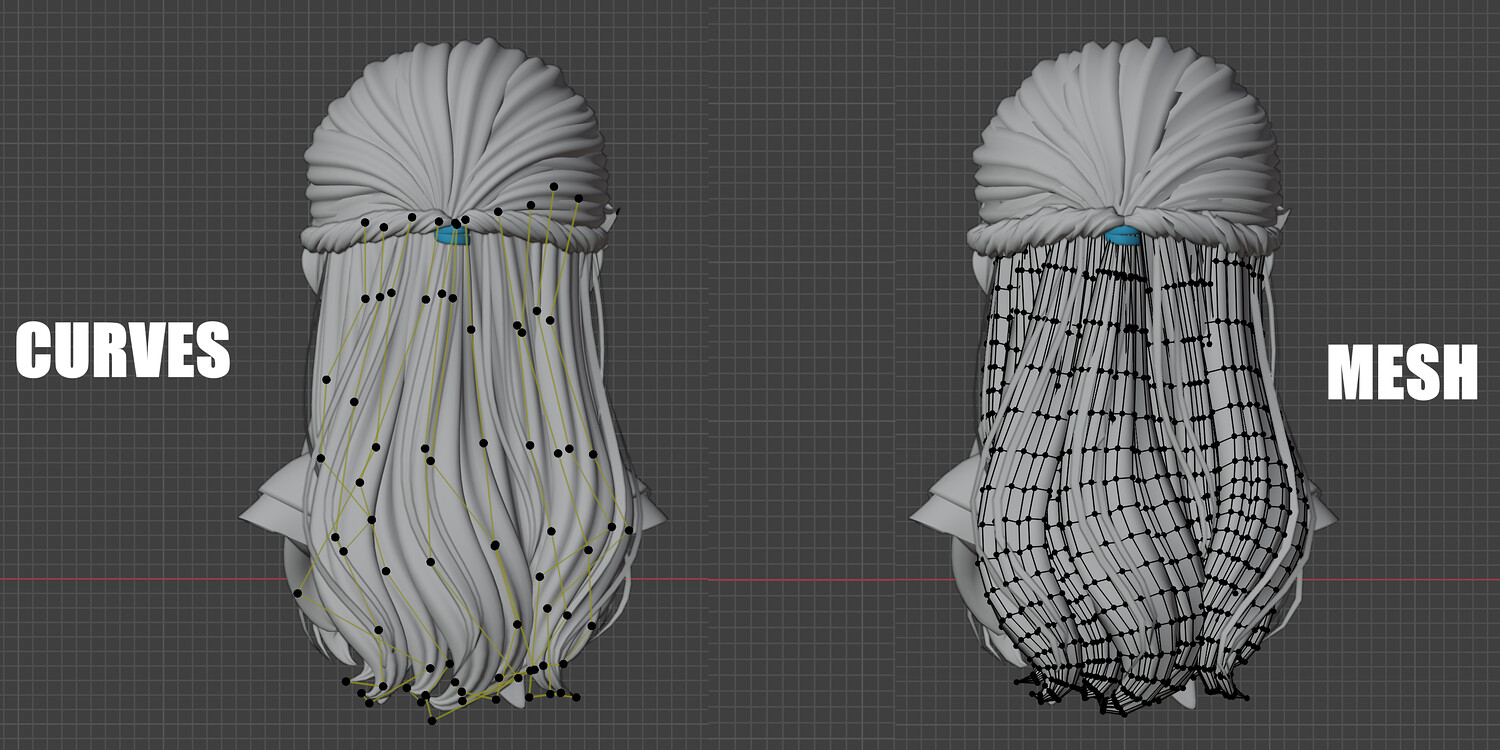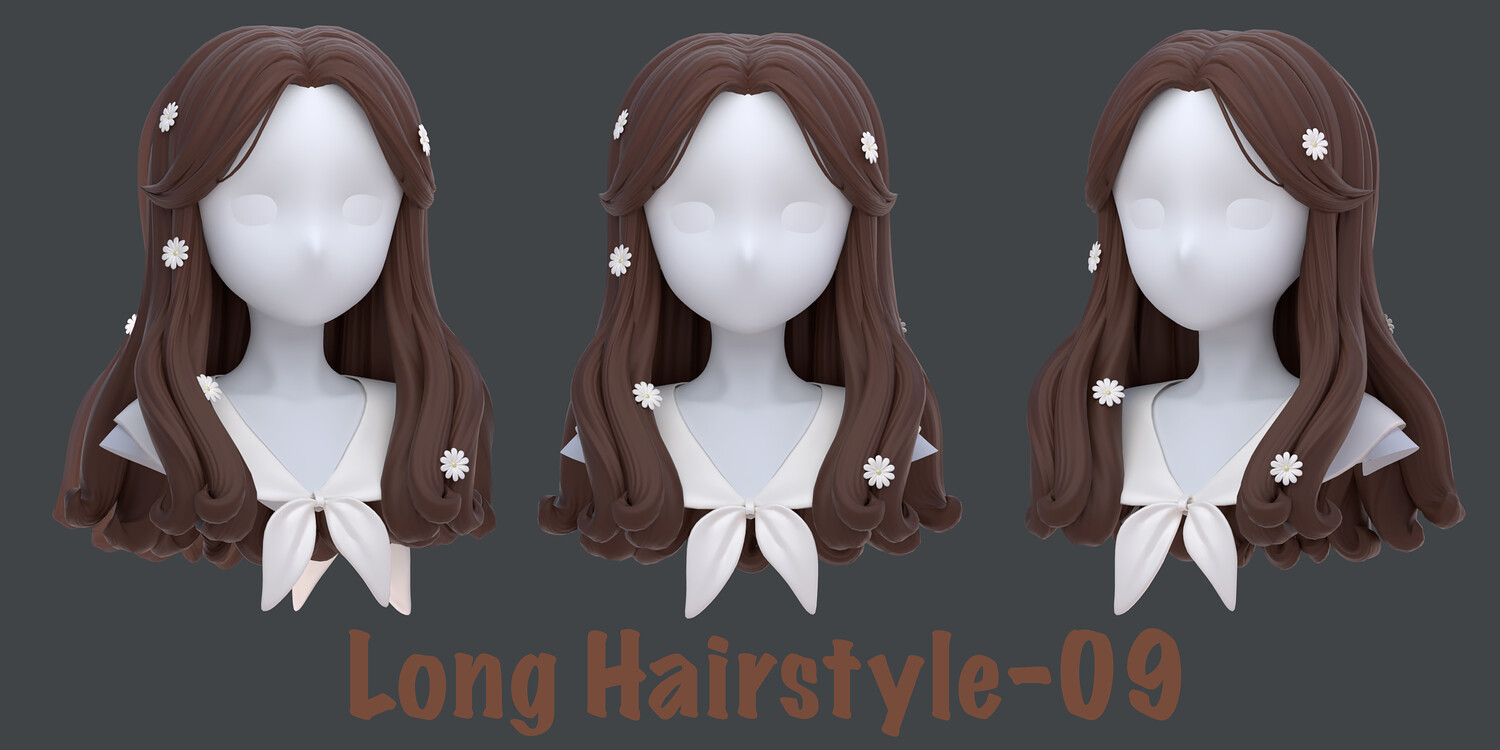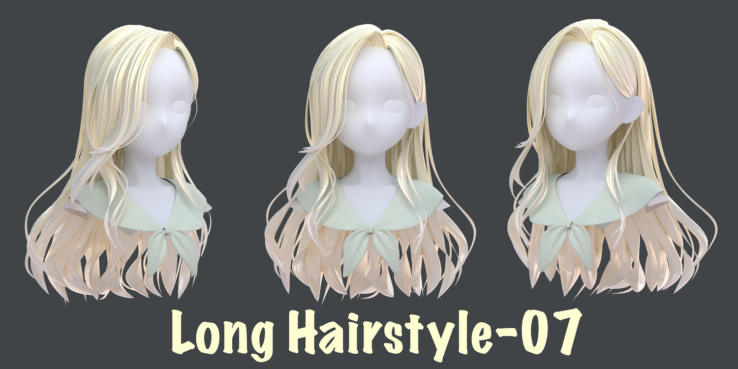 The pack includes: - 9 types of long Hairstyles - Blender files (curve +mesh)- built as a fully modular hair system. - Each hairstyle is separated into parts, allowing you to mix, match, and customize freely to create multiple variations from a single base. - The hair is provided in both curve-based and mesh-based versions, giving you full control over shape, structure, and export workflow. - Interchange the bangs to get a different hairstyle - Head Mesh and other accessories