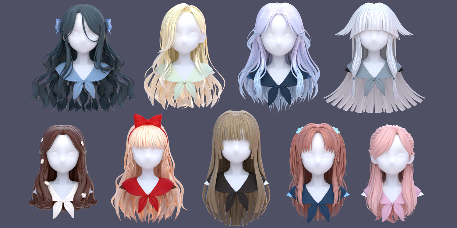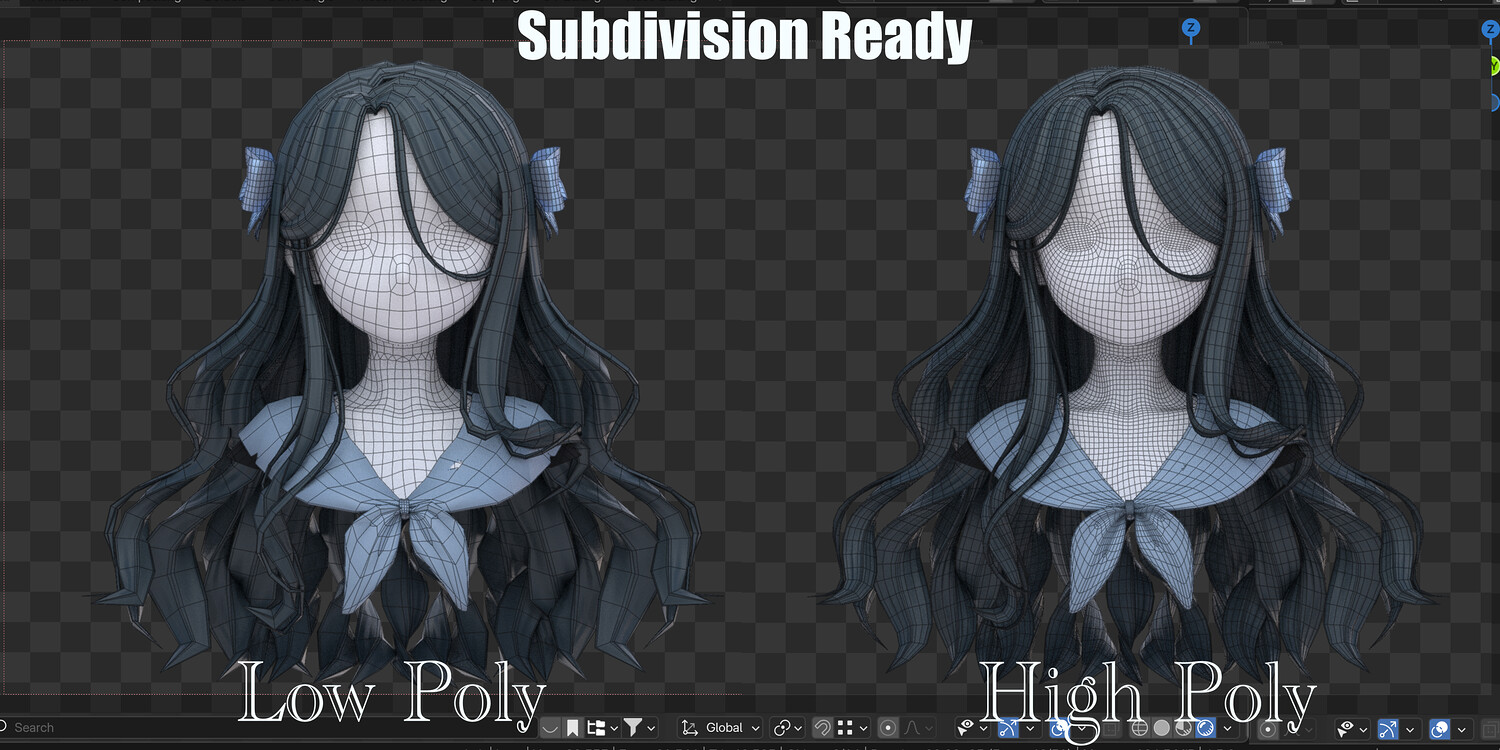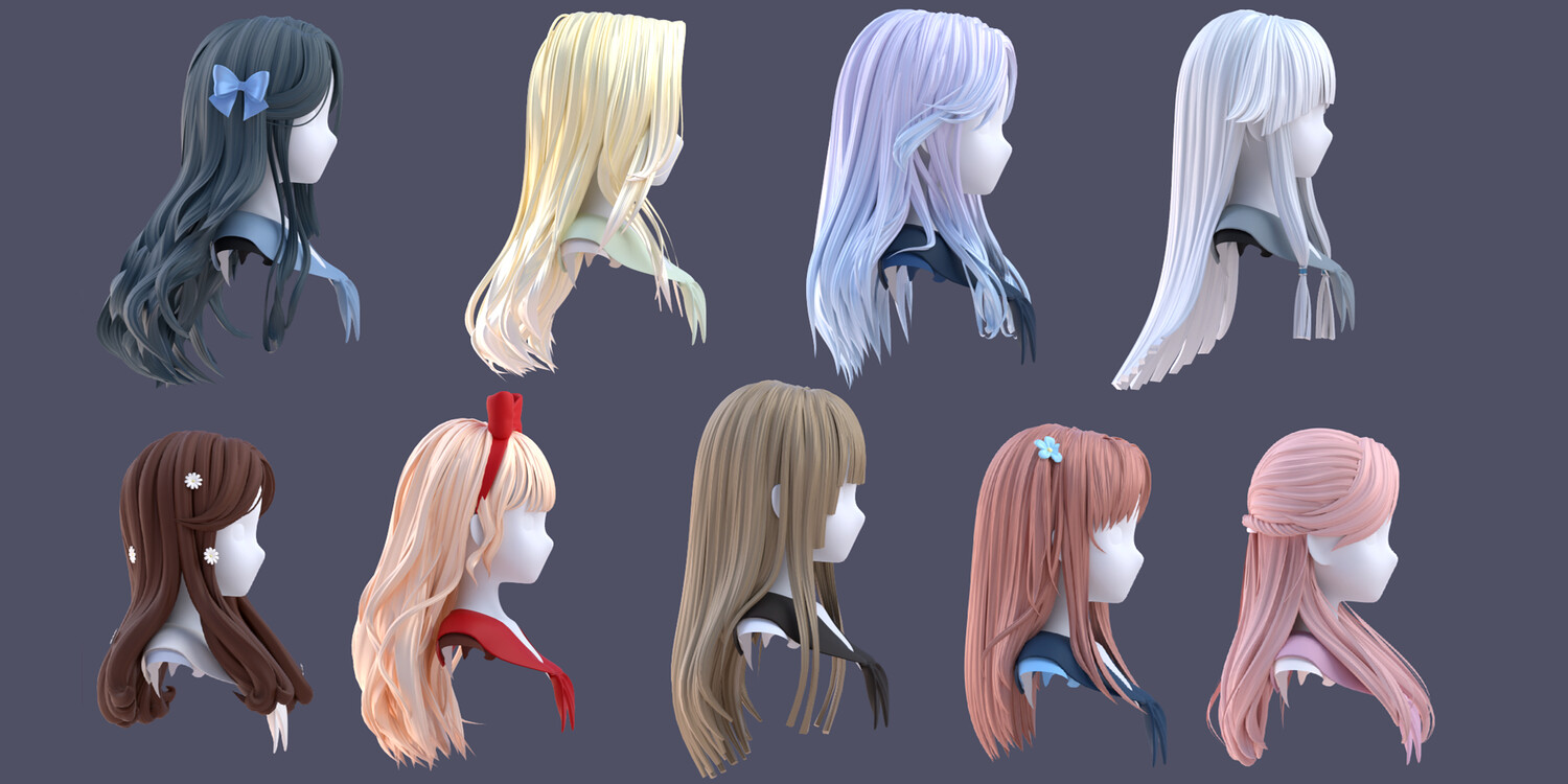 ✦ SupportUses subdivision workflow-Can be kept low-poly for performance or subdivided for smooth, high-quality renders ✦Multiple Material Presets & ColorsIncludes different hair material variationsEasily switch colors and looks to match your character style ✦ Ideal ForAnime / stylized charactersVTubers & avatarsIllustration rendersGame-ready workflows (after mesh export)Artists who want flexibility instead of fixed hairstyles