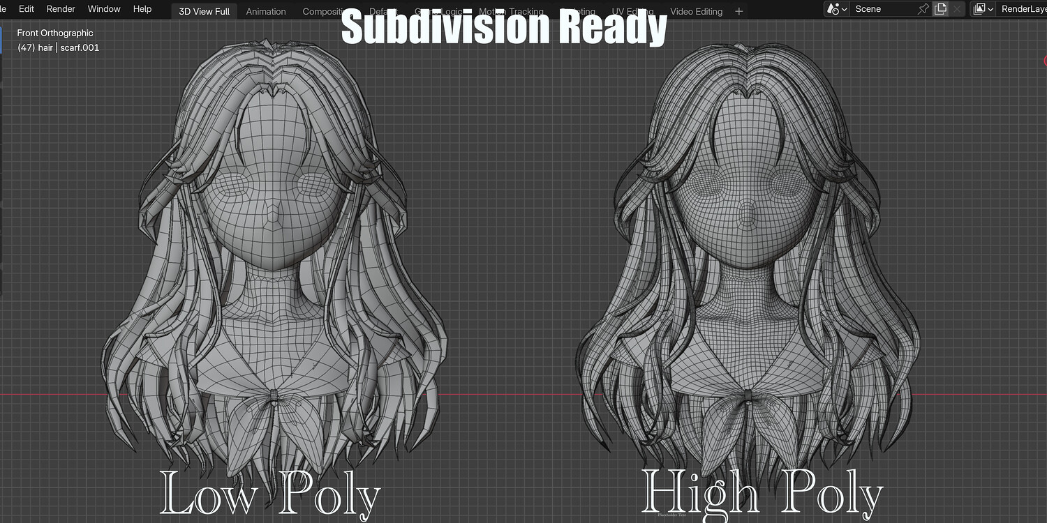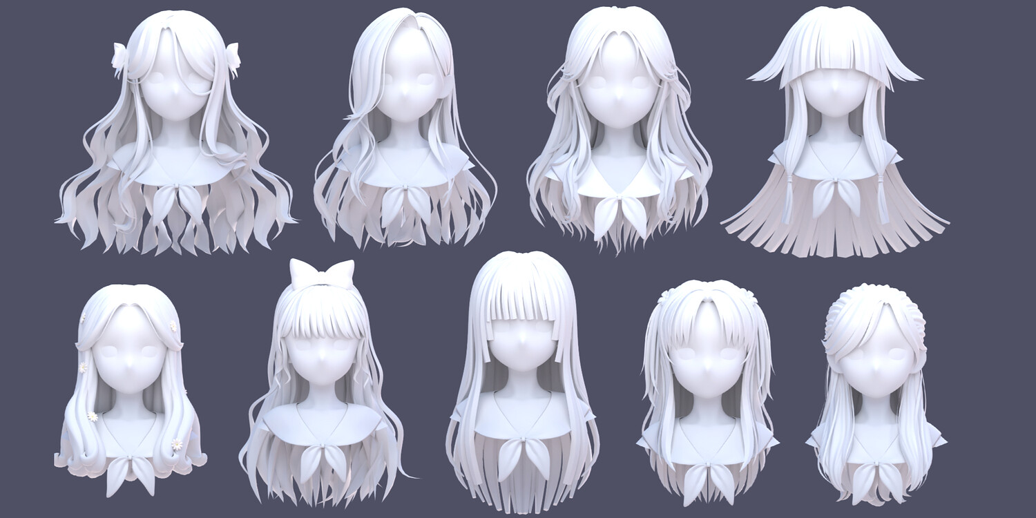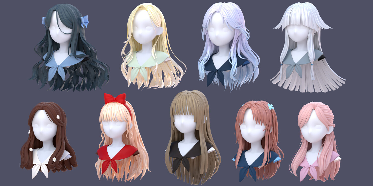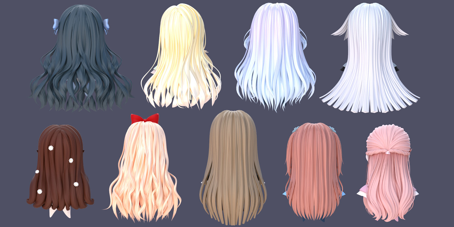 ✦ SupportUses subdivision workflow-Can be kept low-poly for performance or subdivided for smooth, high-quality renders ✦Multiple Material Presets & ColorsIncludes different hair material variationsEasily switch colors and looks to match your character style ✦ Ideal ForAnime / stylized charactersVTubers & avatarsIllustration rendersGame-ready workflows (after mesh export)Artists who want flexibility instead of fixed hairstyles
