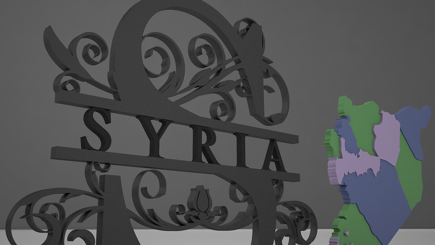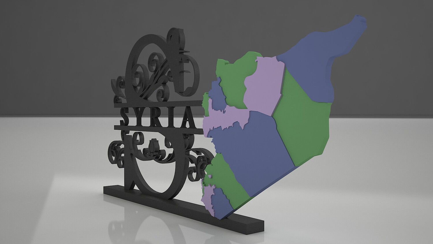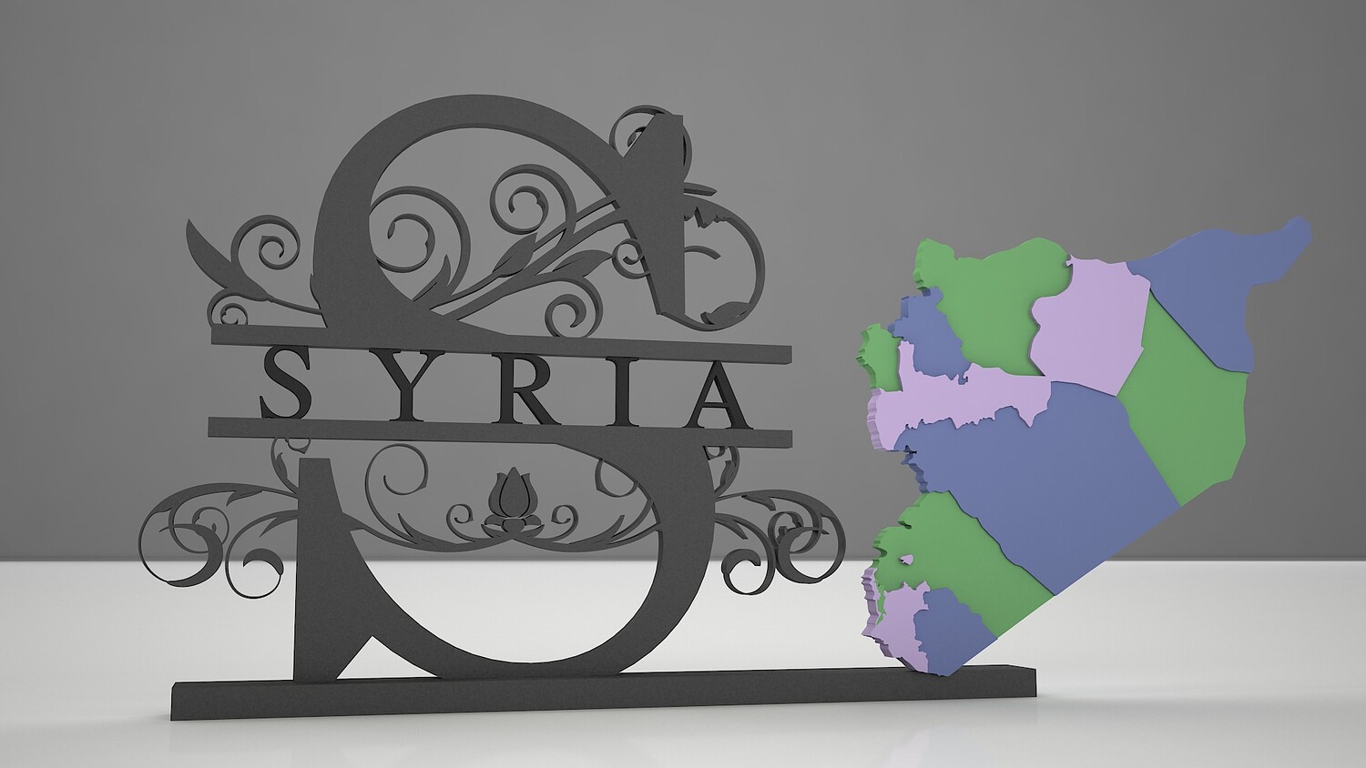 This high-quality 3D model features a stylized map of Syria displayed on an elegant decorative stand, perfect for architectural visualization, educational displays, or artistic installations. The map includes the country’s regions in distinct colors for easy identification, while the ornate frame adds a touch of cultural and artistic flair.