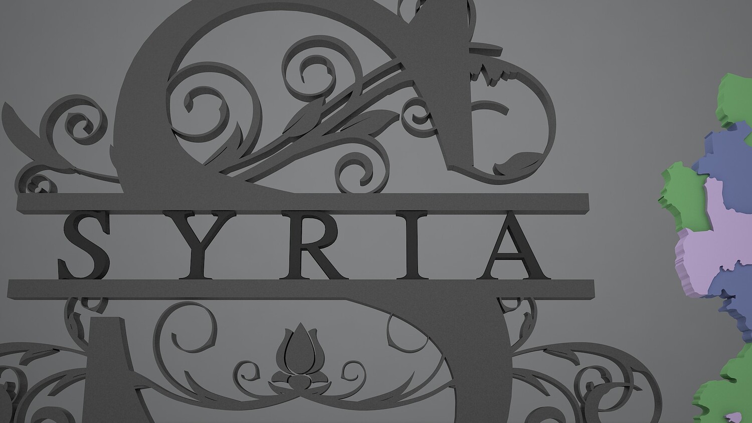 Syria Map with Decorative Stand – 3D Model | Country Map with Ornamental Design
