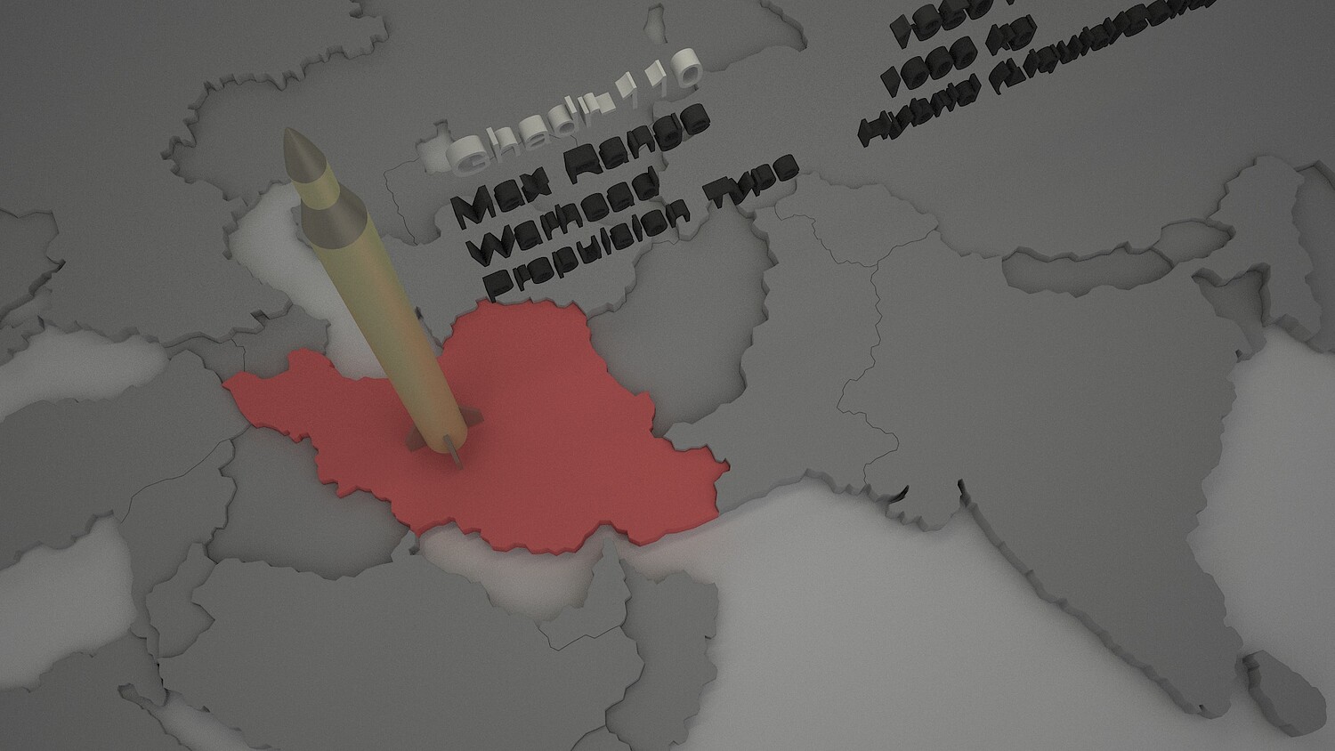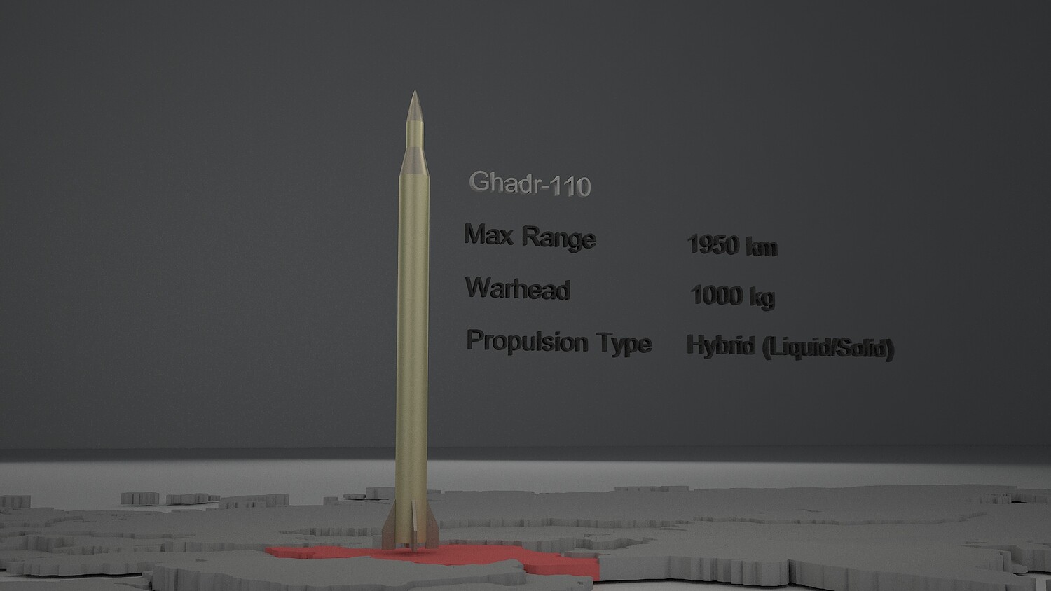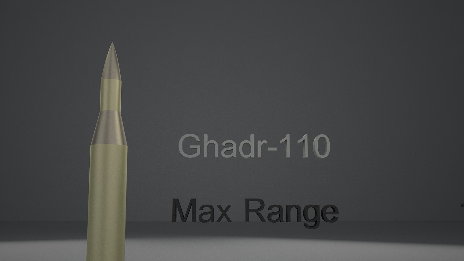 High-quality, photorealistic 3D model of the Ghadr-110 medium-range iranian ballistic missile. This professionally crafted model is created in 3ds Max 2025 and rendered with V-Ray 7, featuring accurate specifications and realistic details.