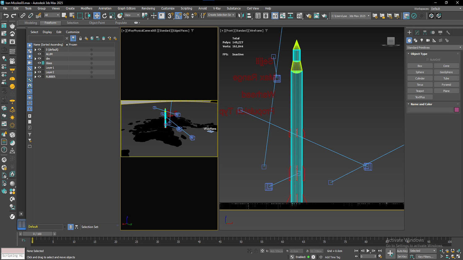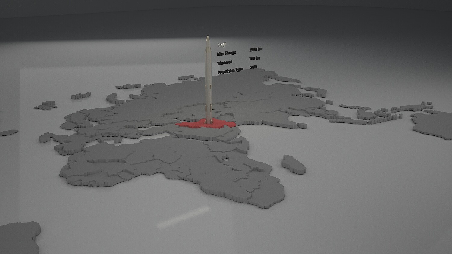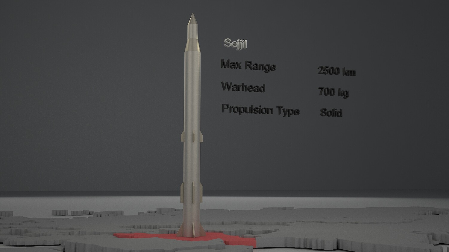 High-quality, photorealistic 3D model of the Sejjil medium-range ballistic missile. This professionally crafted model is created in 3ds Max 2025 and rendered with V-Ray 7, featuring accurate specifications and realistic details. Model Specifications: Max Range: 2500 km Warhead: 700 kg Propulsion Type: Solid