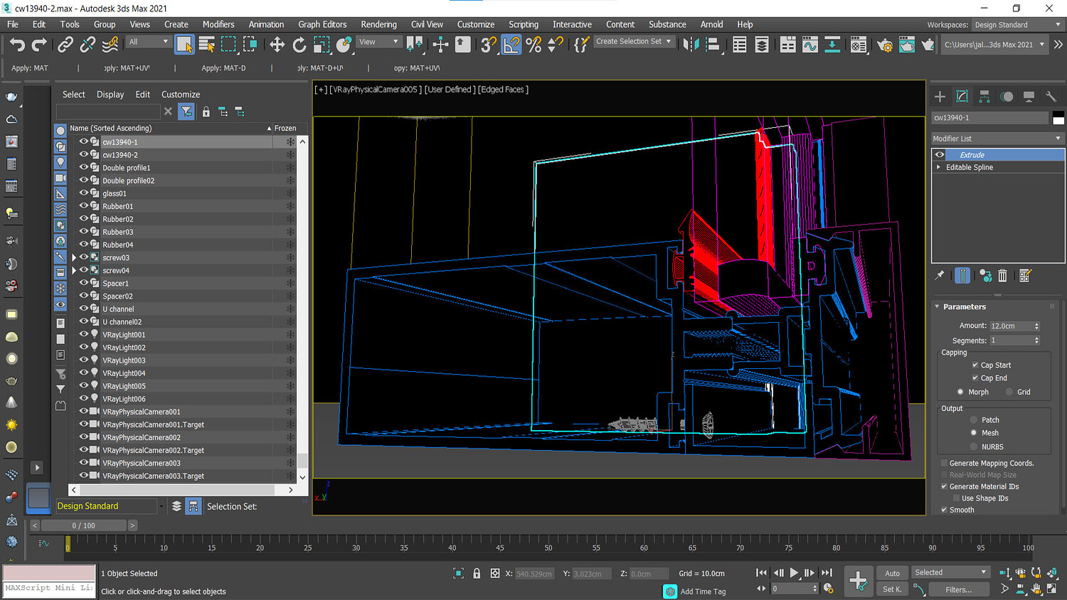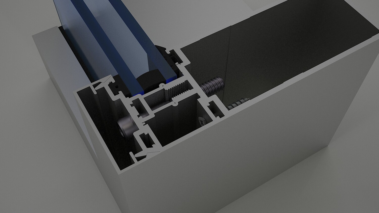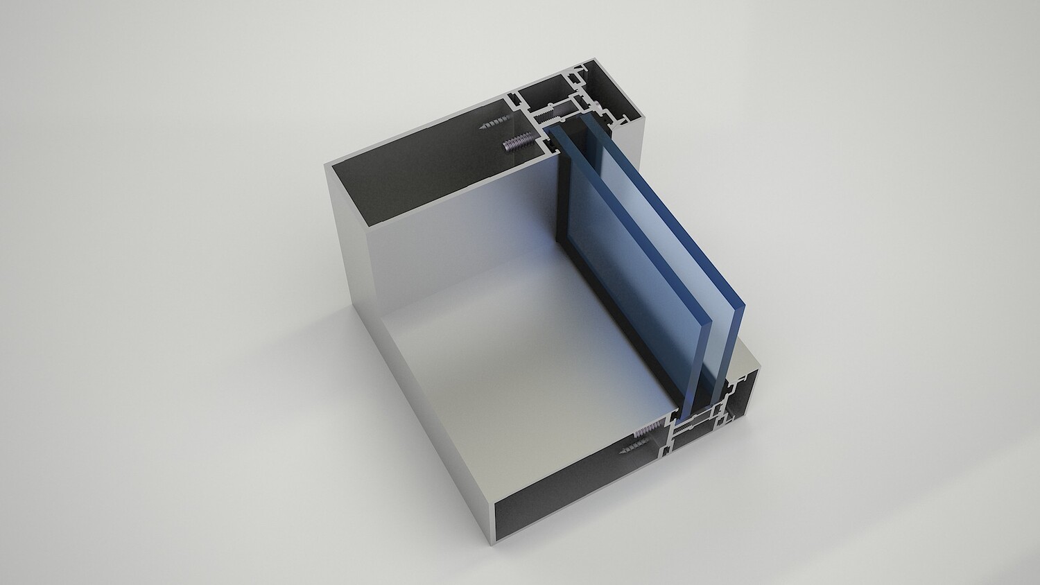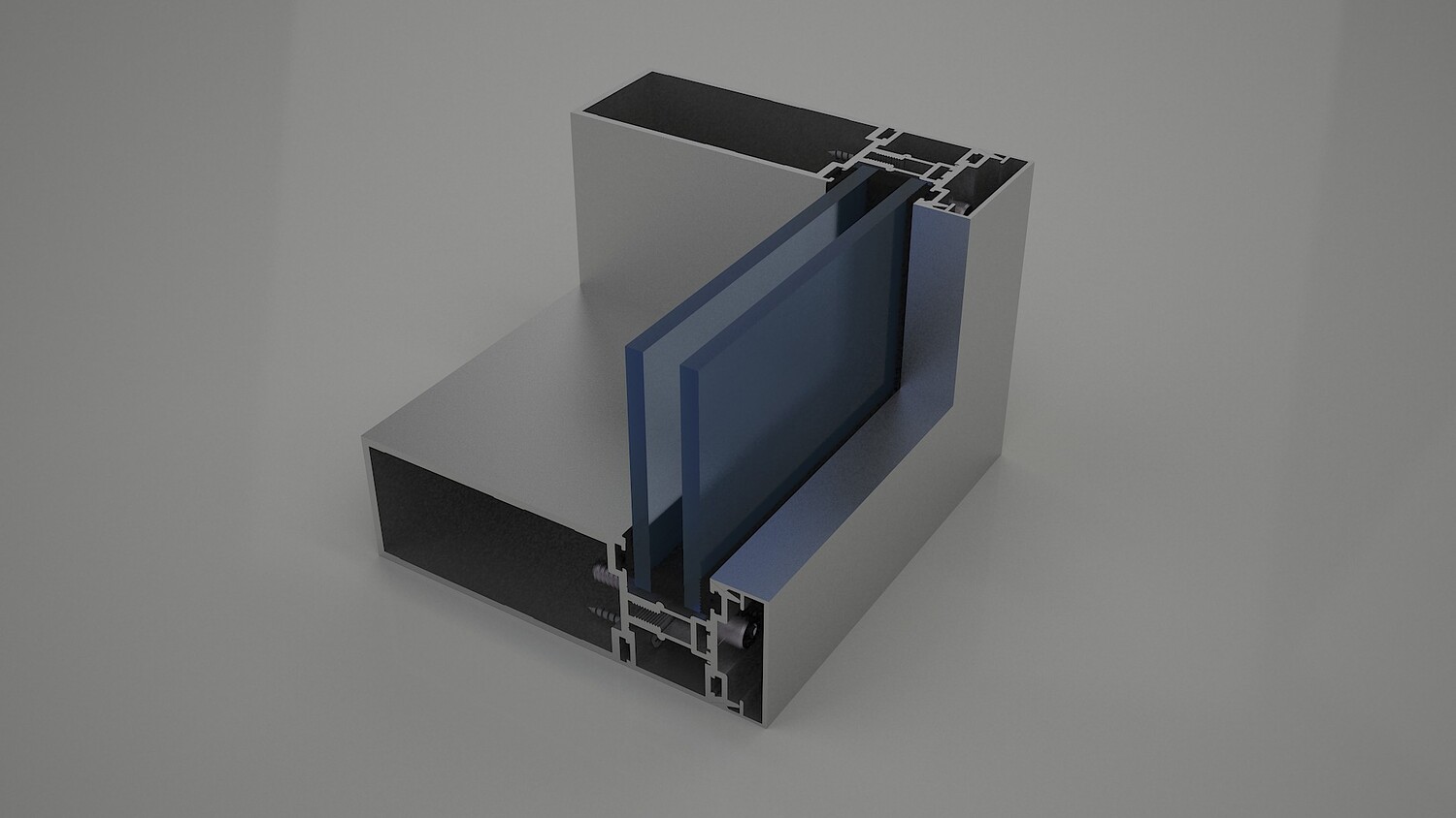 High-quality 3D model of Al Ghurair Gulf Extrusions curtain wall profile number 13940, created in 3ds Max 2021 and rendered with V-Ray 3.2. This detailed model represents a fixed panel double-glass curtain wall system complete with aluminum extrusion profiles, screws, and accessories. Ideal for use in architectural visualization, construction detailing, and technical presentations. The model is optimized with clean geometry and realistic materials, making it suitable for both close-up renders and large-scale projects.