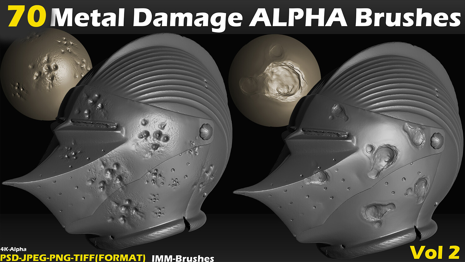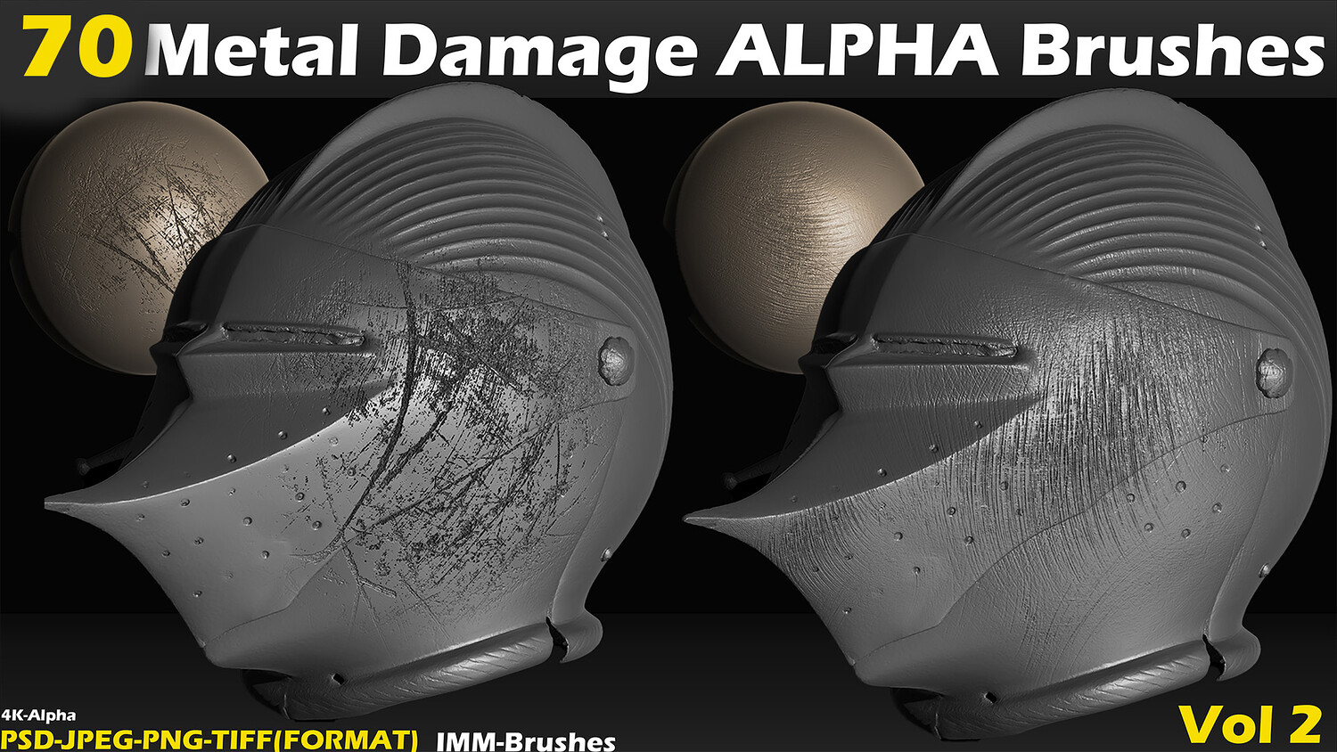 This product contains 70 alpha brushes for metal and iron, which you can drag to cause damage to the metal.