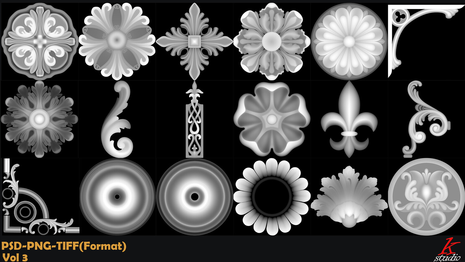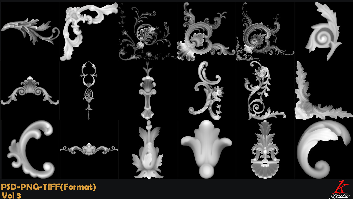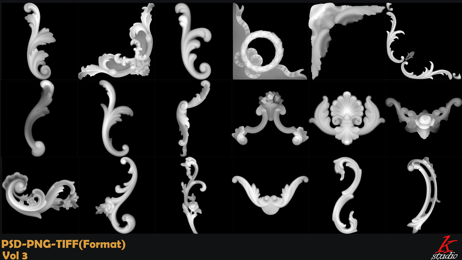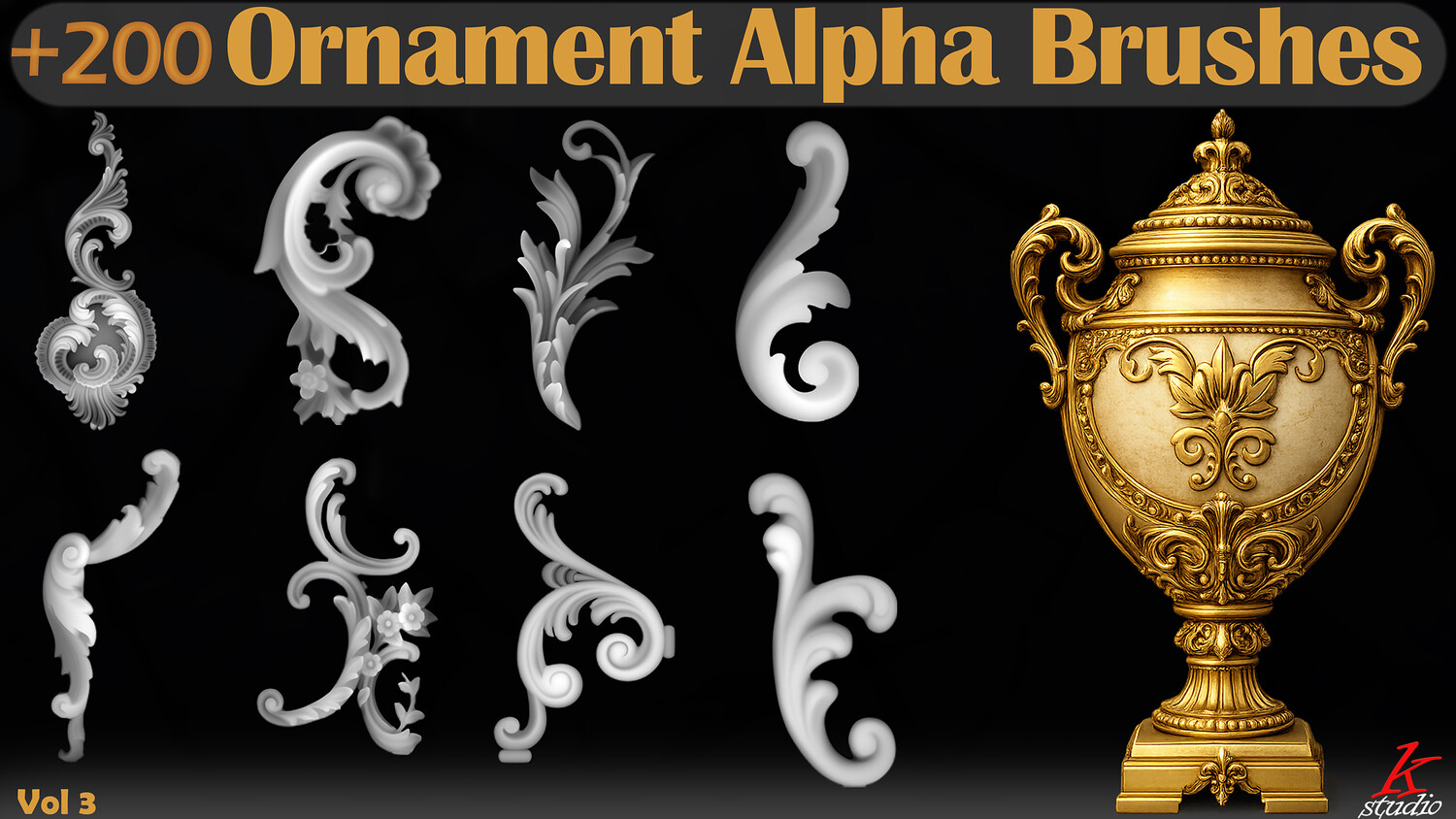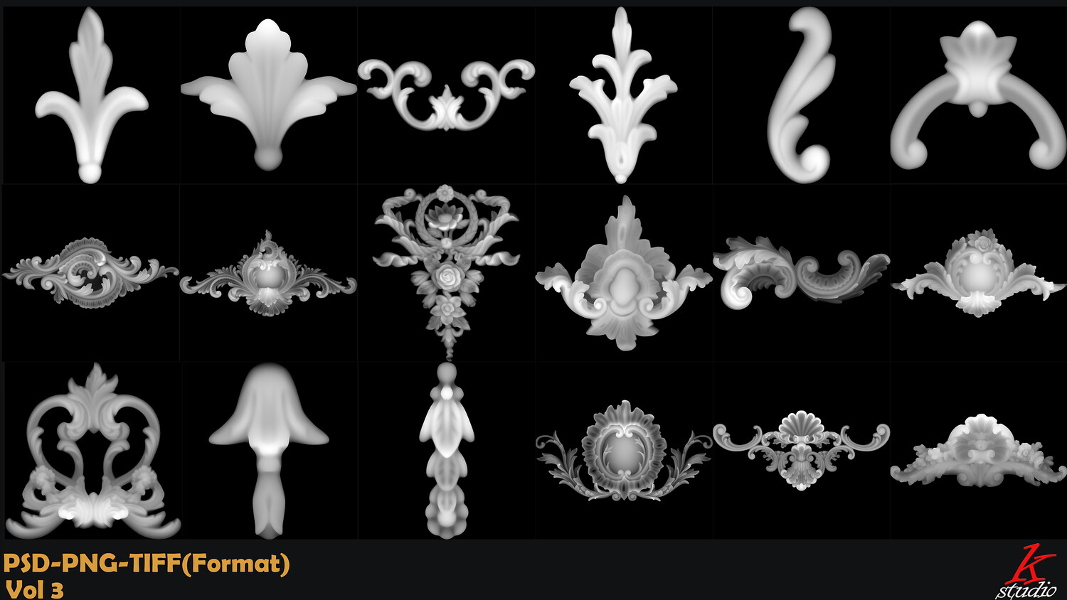 All brushes are carefully crafted with clean topology and crisp depth, making them ideal for architectural elements, baroque ornaments, props, frames, furniture, environments, and high-resolution assets.