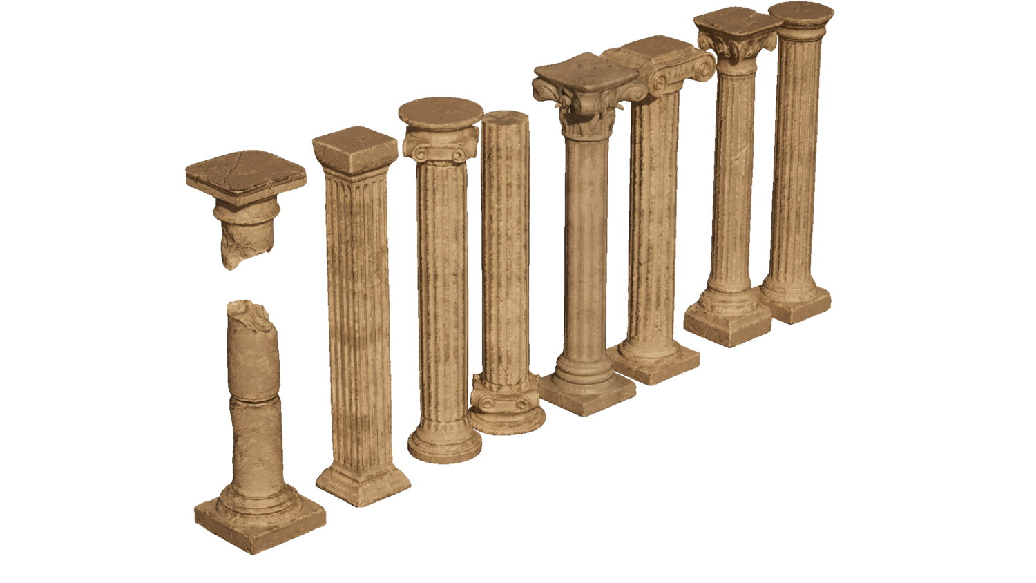 This pack includes a set of modular ancient columns perfect for games, cinematic environments, or architectural visualization.