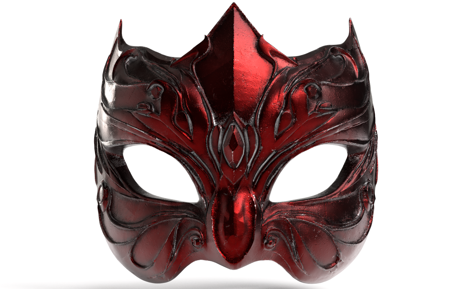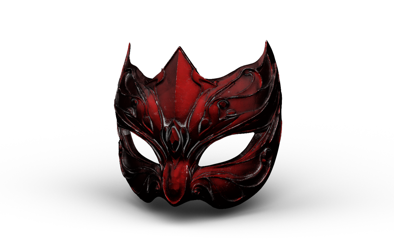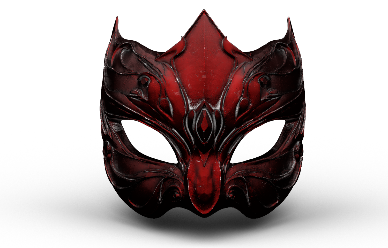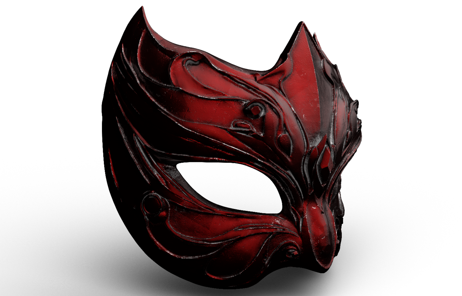 Exquisite High-Poly Fantasy Mask, featuring deep, metallic dark-red detailing. Meticulously sculpted in ZBrush and fully optimized for 3D Printing (FDM/Resin). Files Included: .STL, .OBJ, and .FBX, with PBR Textures.