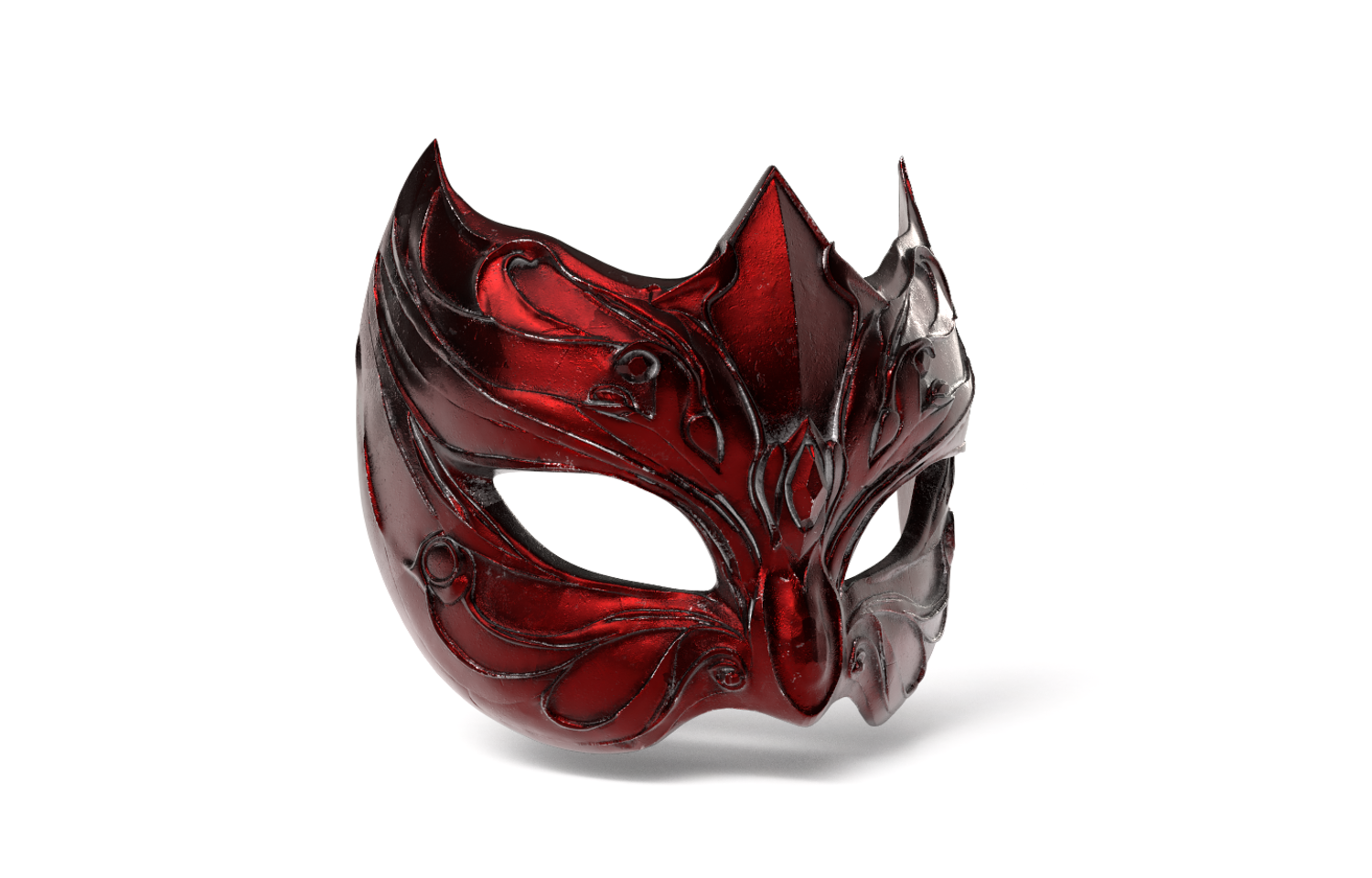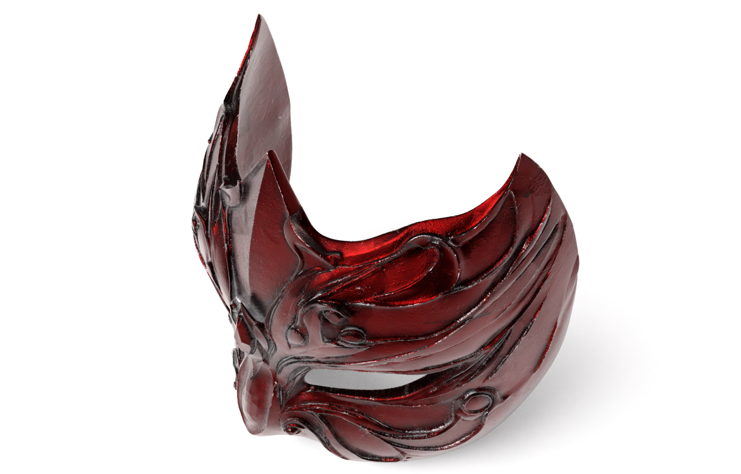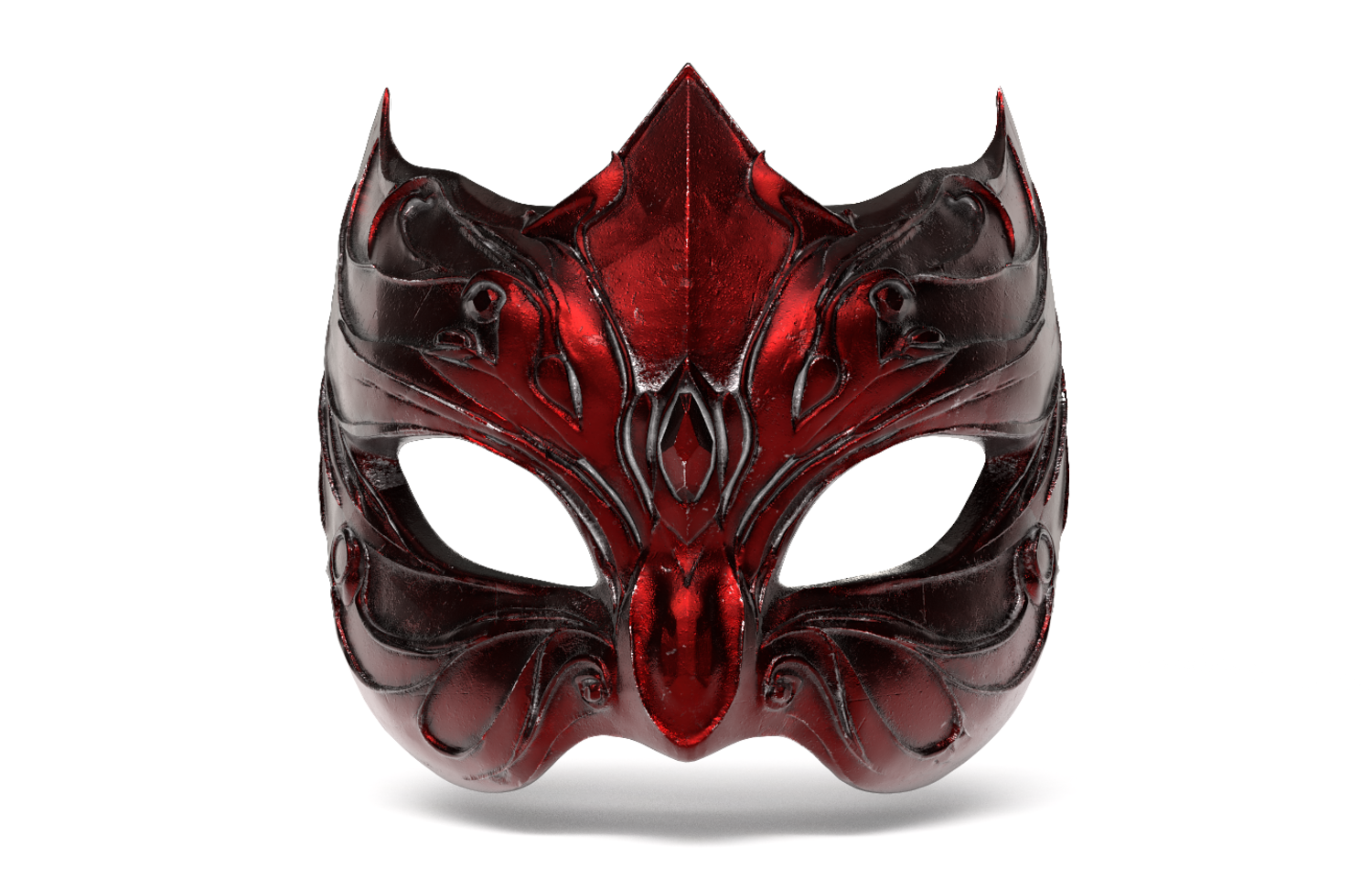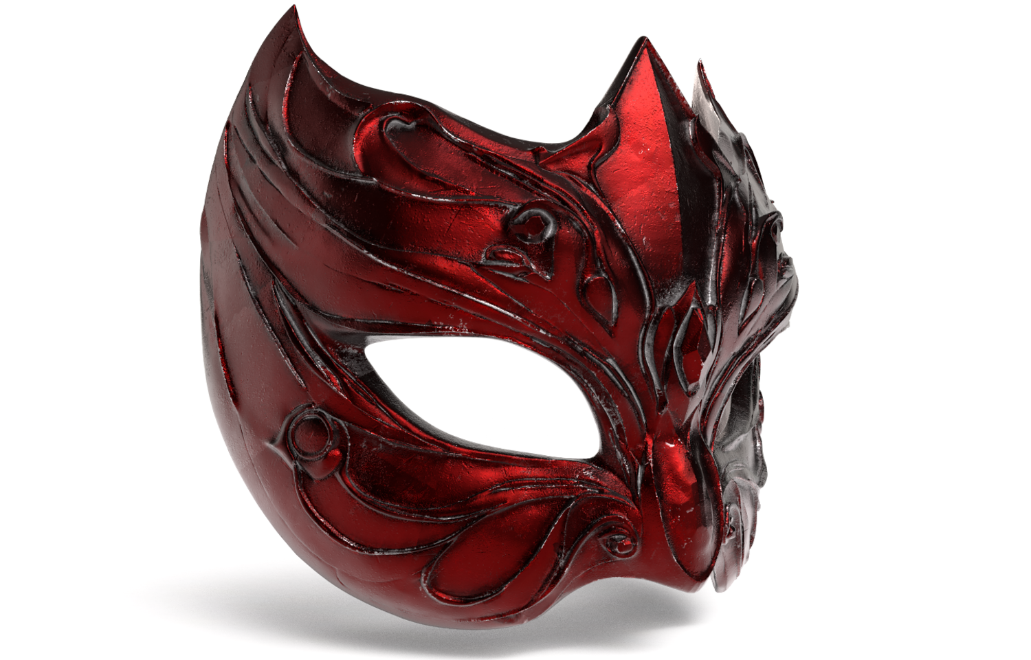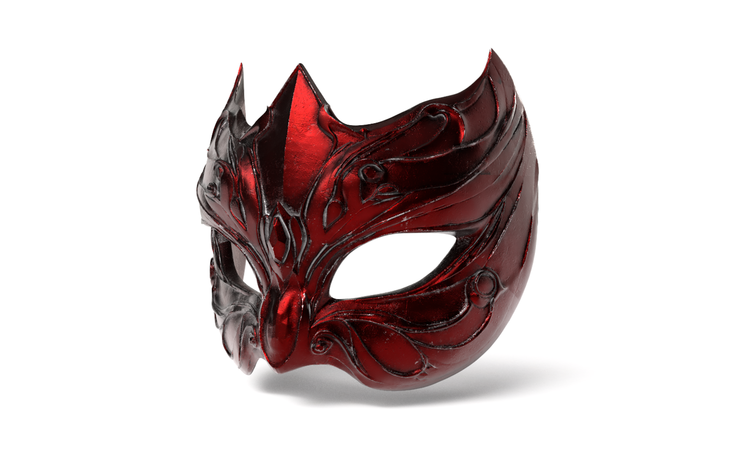 Exquisite High-Poly Fantasy Mask, featuring deep, metallic dark-red detailing. Meticulously sculpted in ZBrush and fully optimized for 3D Printing (FDM/Resin). Files Included: .STL, .OBJ, and .FBX, with PBR Textures.