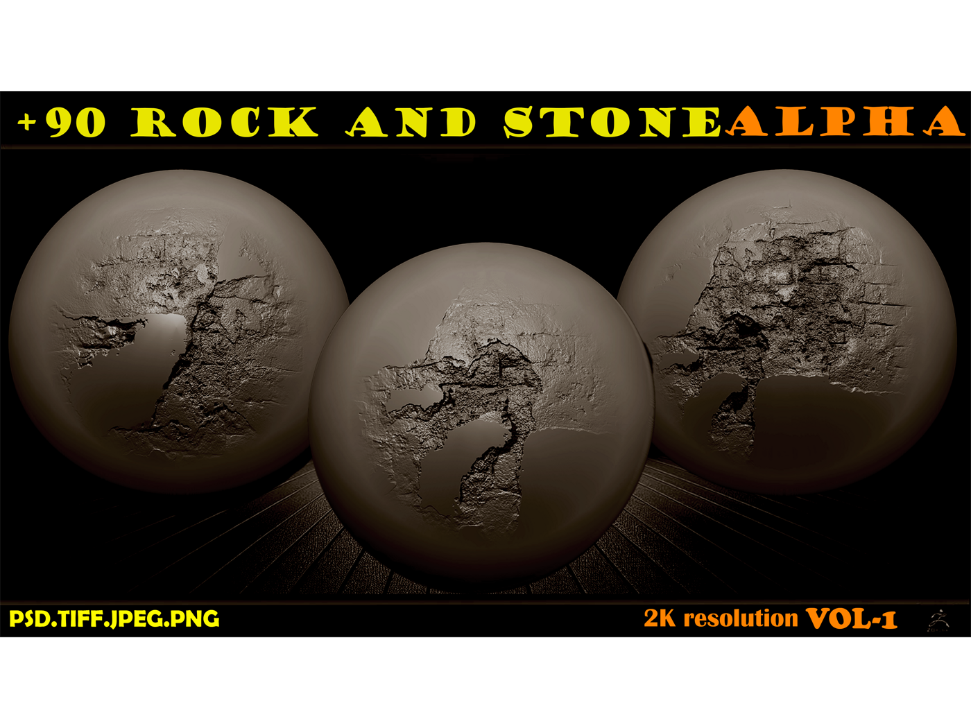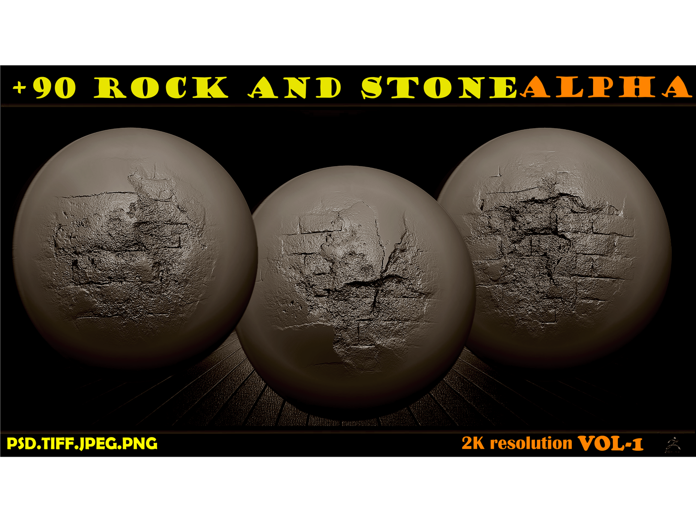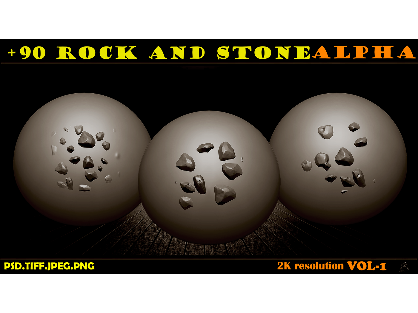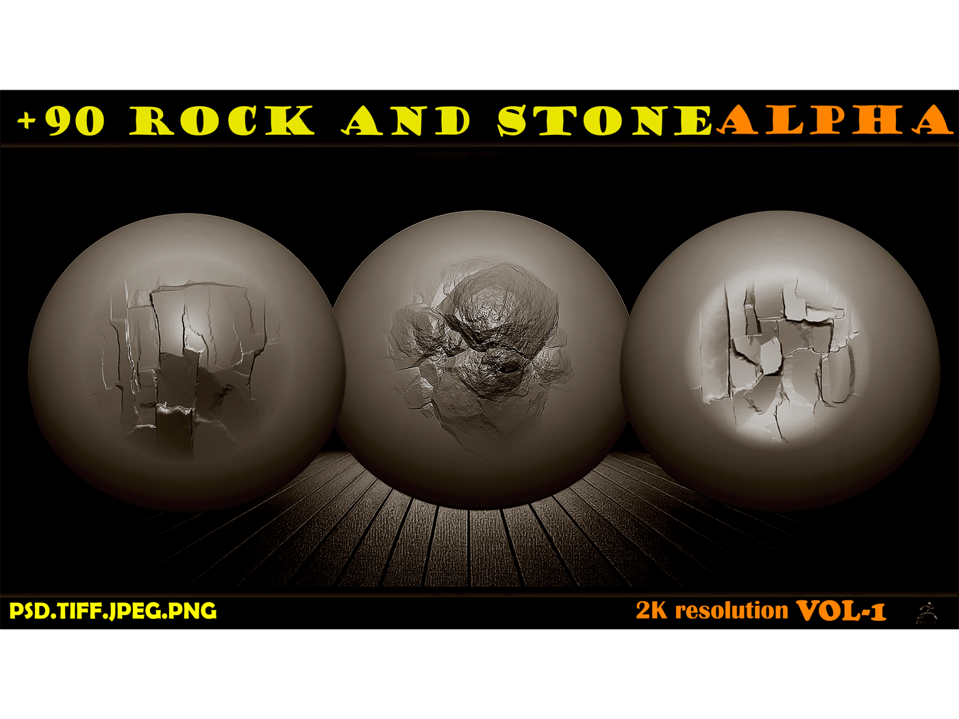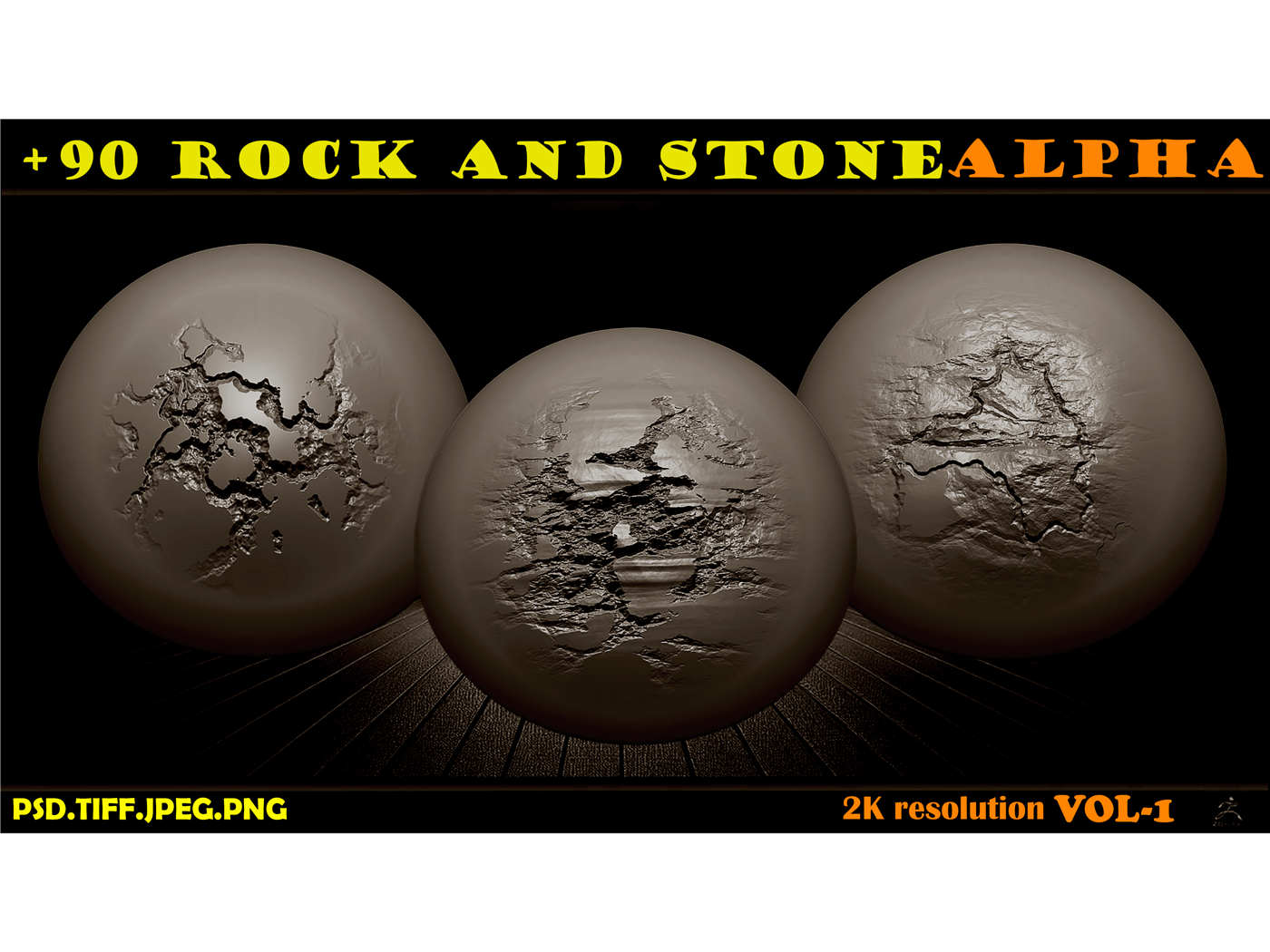 The Rock & Stone Alpha Pack Vol.1 includes more than 90 high‑quality stone and rock alpha textures in 2K resolution. Each alpha is handcrafted to bring natural surface realism to your 3D models—perfect for sculpting, texturing, and environment creation. 90+ detailed stone and rock alphas Resolution: 2K (2048×2048 px) Formats included: PSD, TIFF, JPEG, PNG Works perfectly with ZBrush, Blender, Substance Painter, 3ds Max, Maya, and more Ideal for environment artists, 3D sculptors, game designers, and visual effects projects Easily add cracks, erosion patterns, and natural surface imperfections to your 3D assets with this versatile and production‑ready pack.