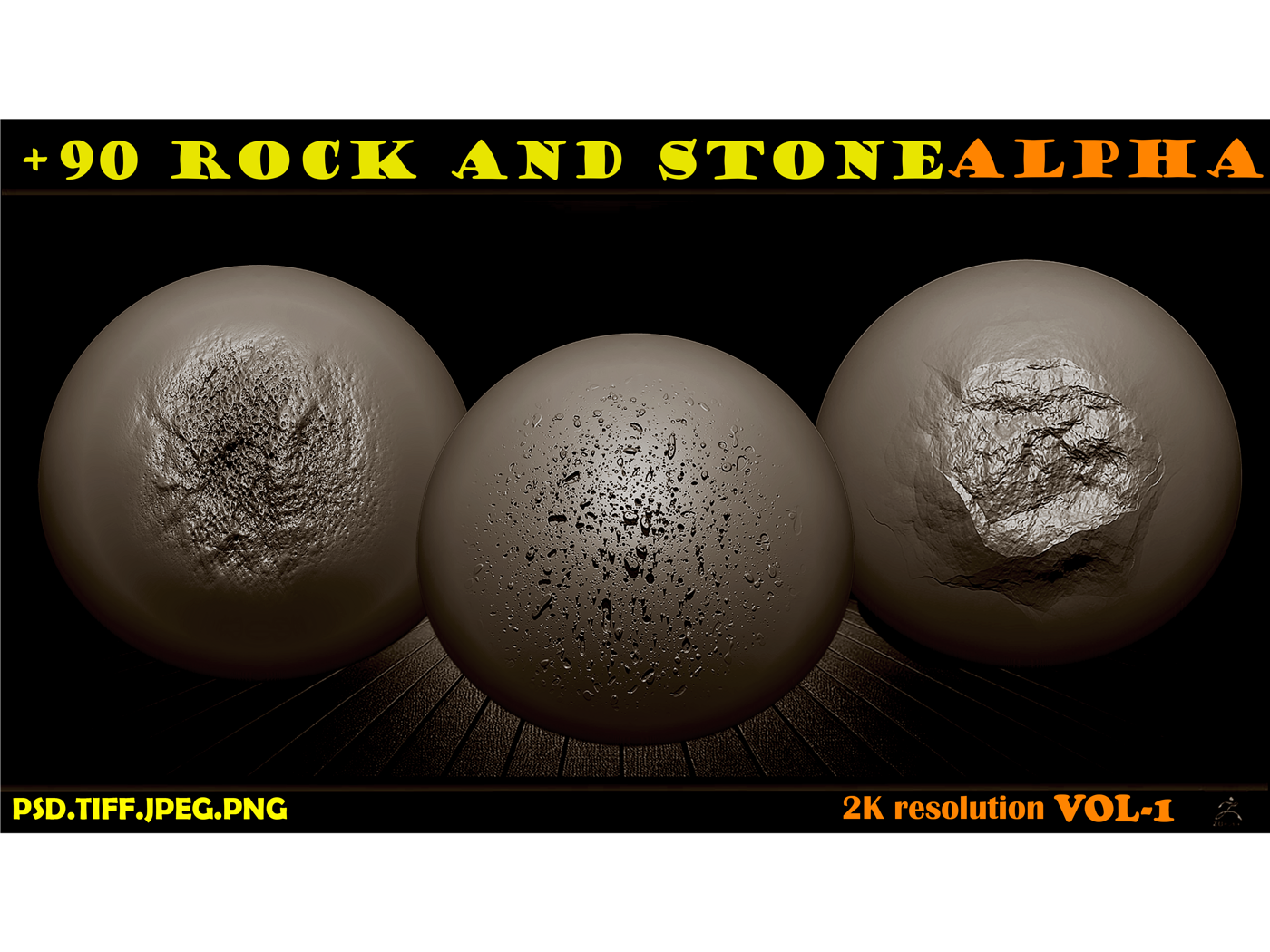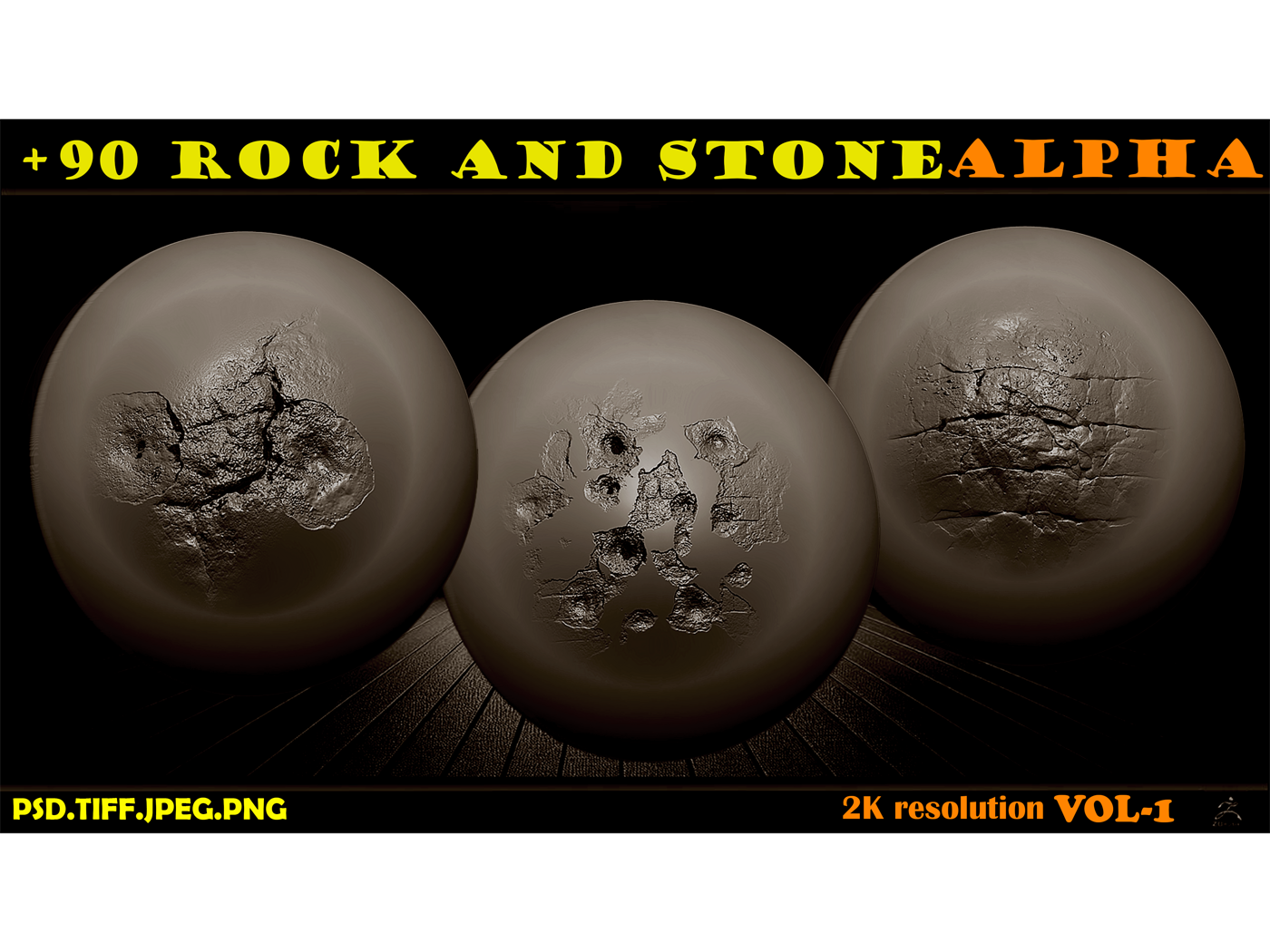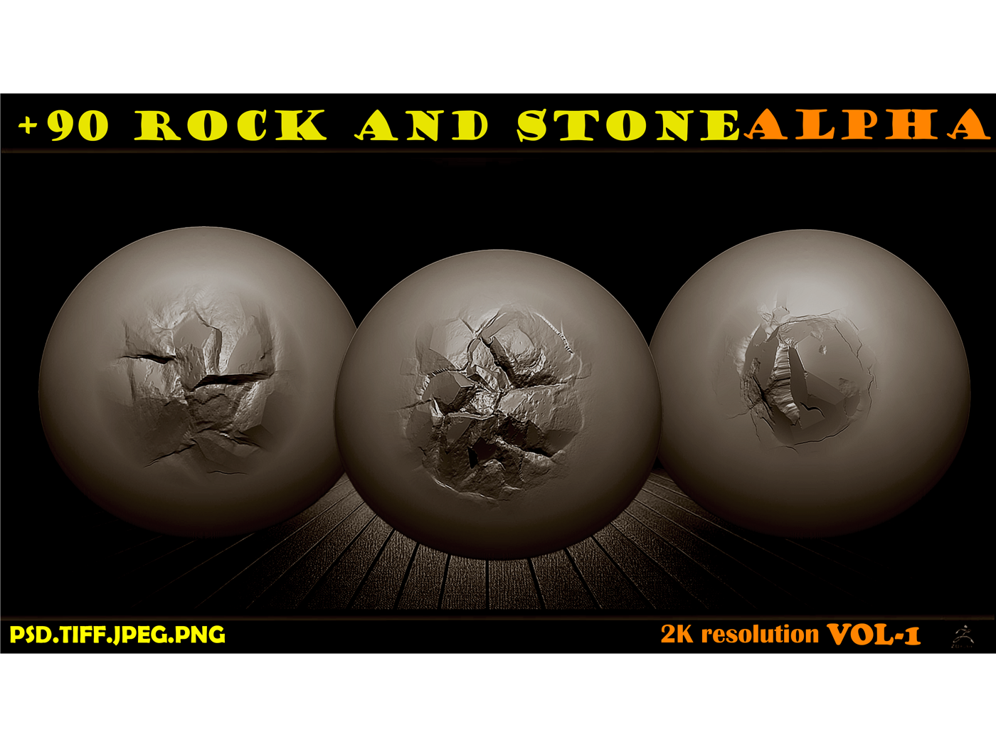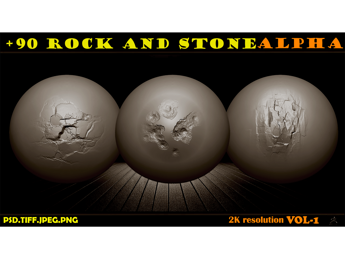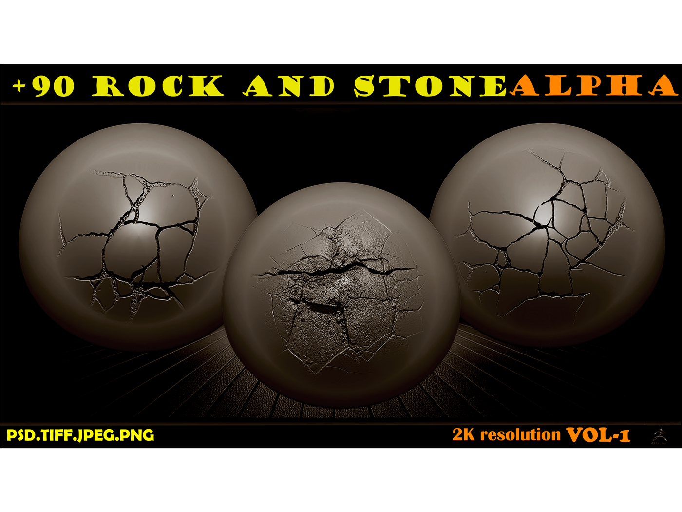 The Rock & Stone Alpha Pack Vol.1 includes more than 90 high‑quality stone and rock alpha textures in 2K resolution. Each alpha is handcrafted to bring natural surface realism to your 3D models—perfect for sculpting, texturing, and environment creation. 90+ detailed stone and rock alphas Resolution: 2K (2048×2048 px) Formats included: PSD, TIFF, JPEG, PNG Works perfectly with ZBrush, Blender, Substance Painter, 3ds Max, Maya, and more Ideal for environment artists, 3D sculptors, game designers, and visual effects projects Easily add cracks, erosion patterns, and natural surface imperfections to your 3D assets with this versatile and production‑ready pack.