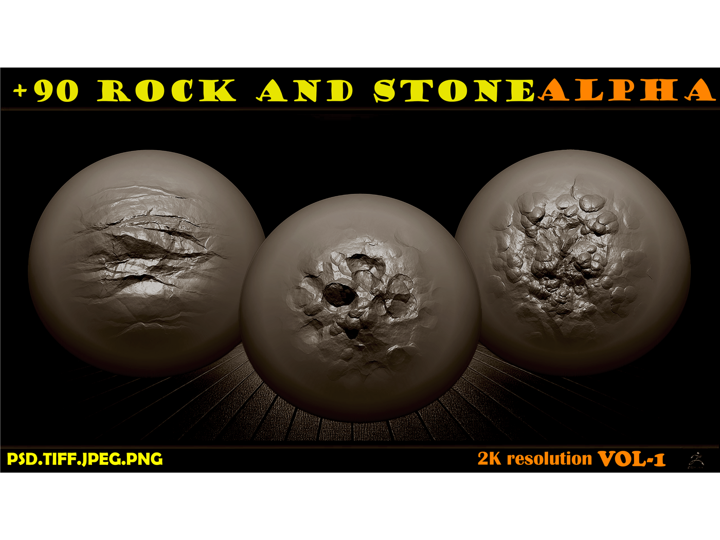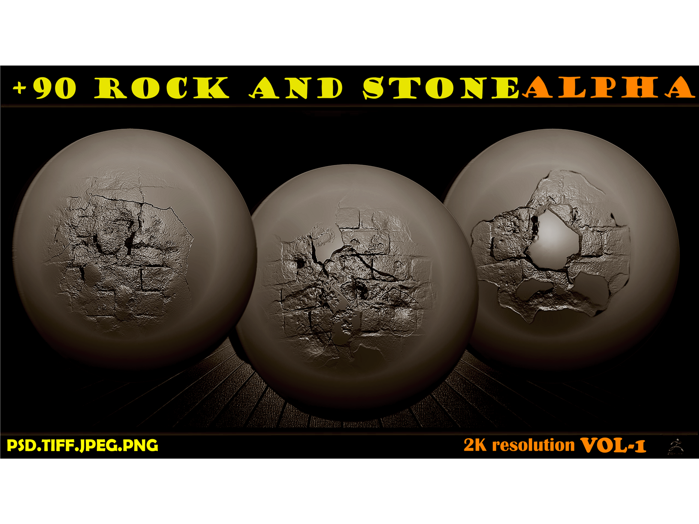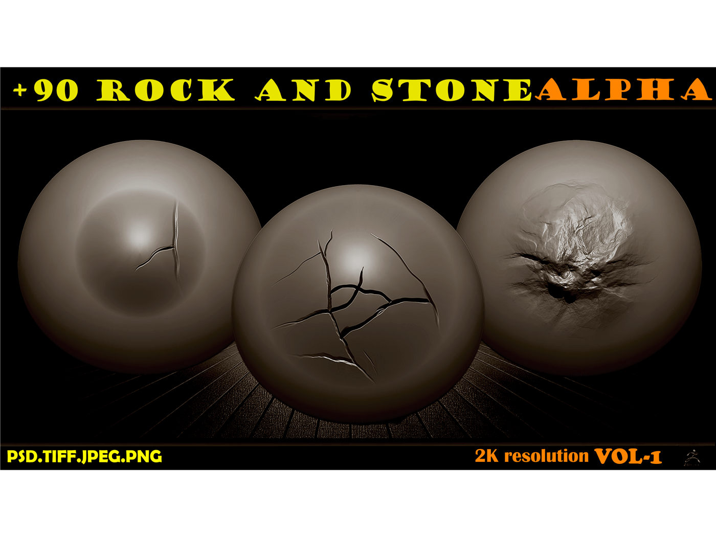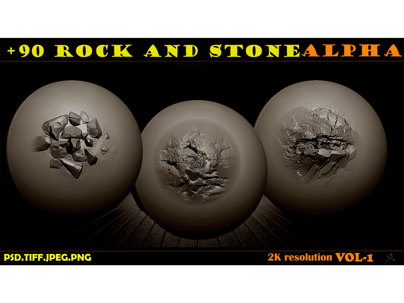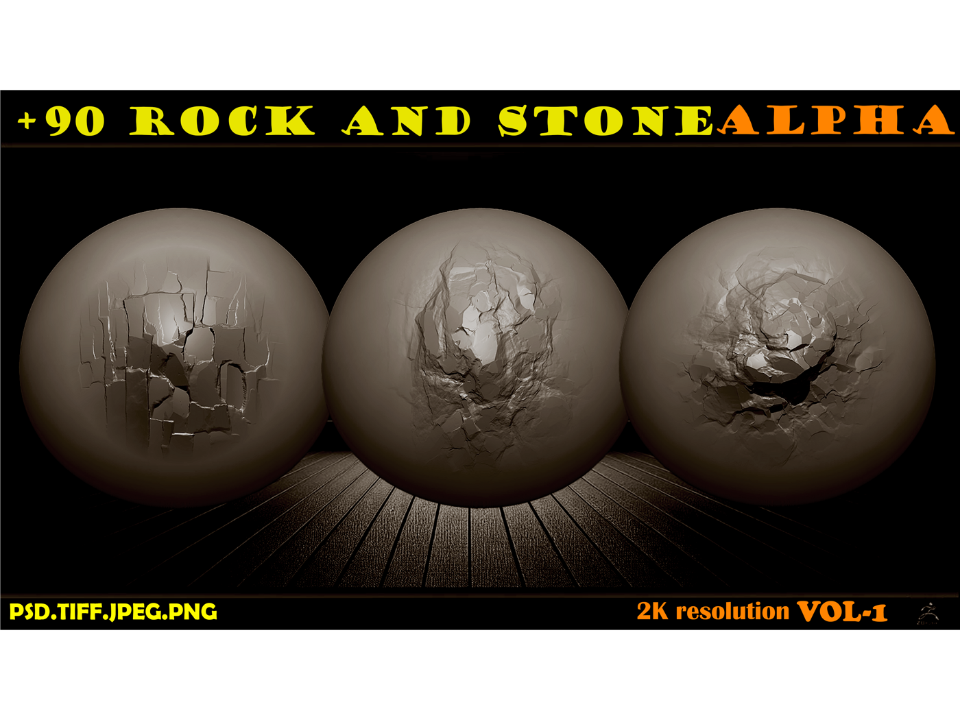 The Rock & Stone Alpha Pack Vol.1 includes more than 90 high‑quality stone and rock alpha textures in 2K resolution. Each alpha is handcrafted to bring natural surface realism to your 3D models—perfect for sculpting, texturing, and environment creation. 90+ detailed stone and rock alphas Resolution: 2K (2048×2048 px) Formats included: PSD, TIFF, JPEG, PNG Works perfectly with ZBrush, Blender, Substance Painter, 3ds Max, Maya, and more Ideal for environment artists, 3D sculptors, game designers, and visual effects projects Easily add cracks, erosion patterns, and natural surface imperfections to your 3D assets with this versatile and production‑ready pack.