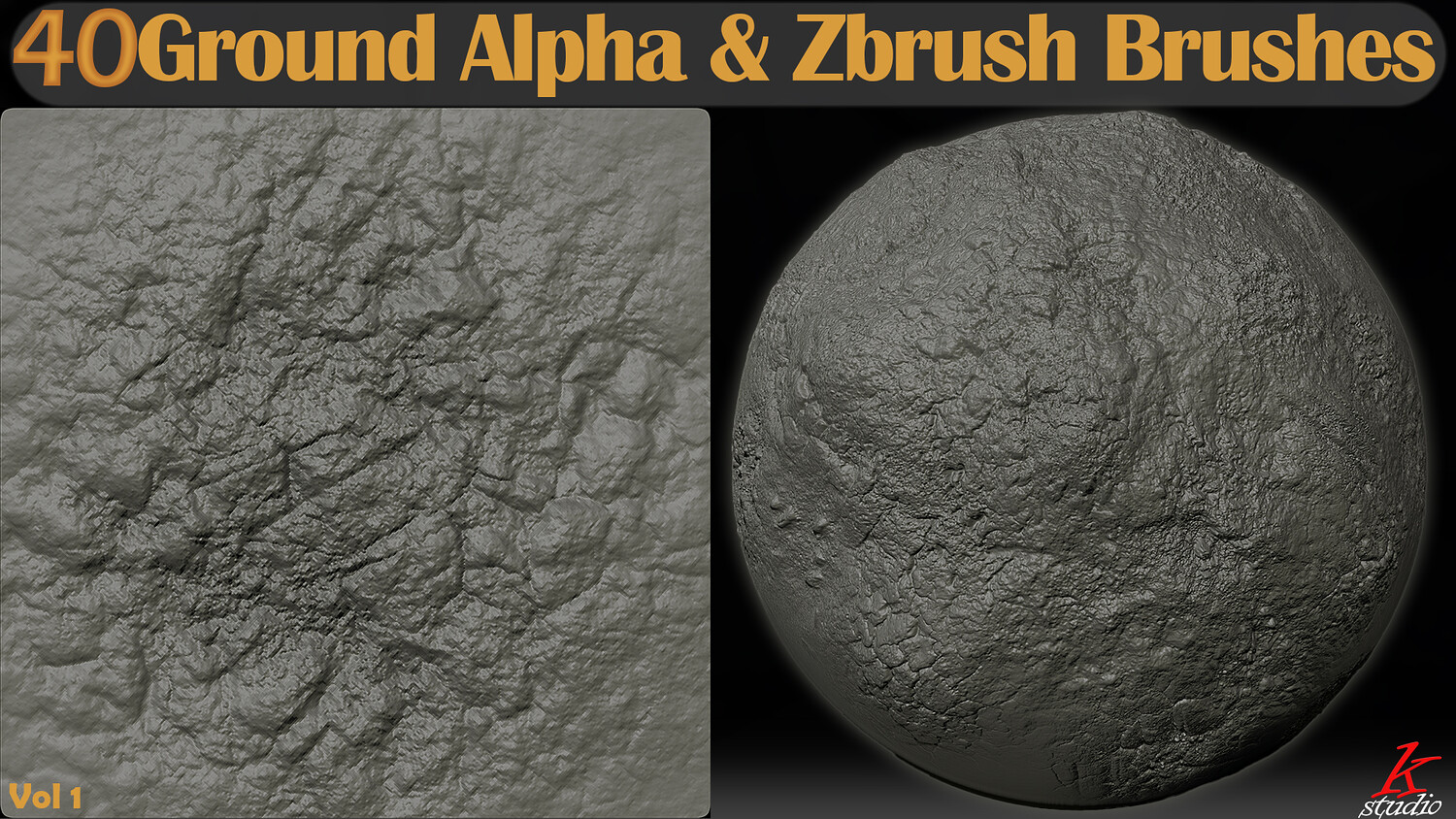 This pack includes 40 high-quality Ground Alphas and ZBrush Brushes, carefully designed to create realistic ground, rock, dirt, cracked surfaces, and organic terrain details.