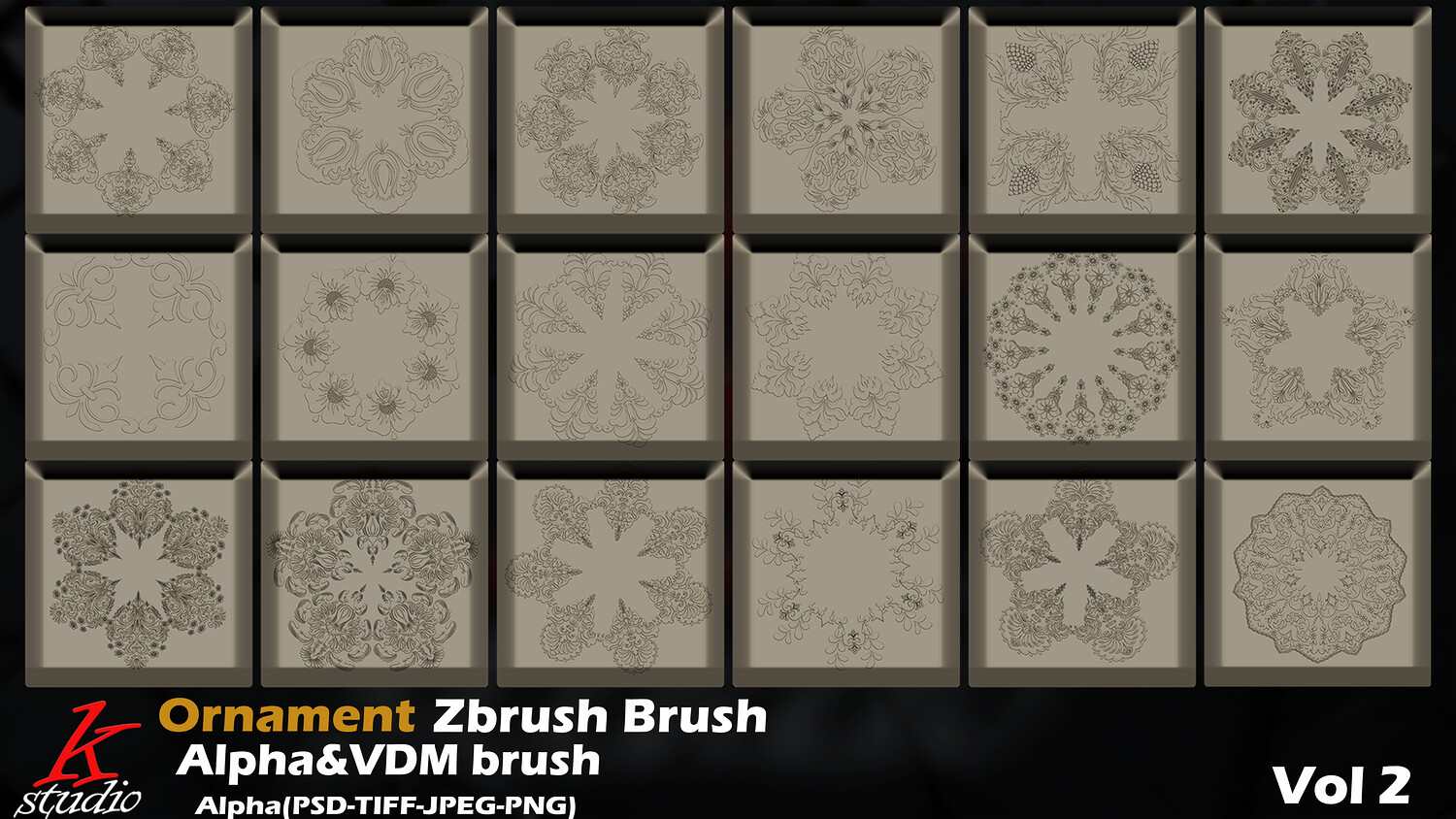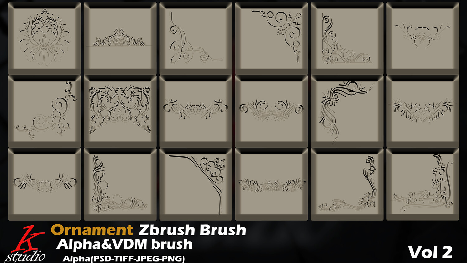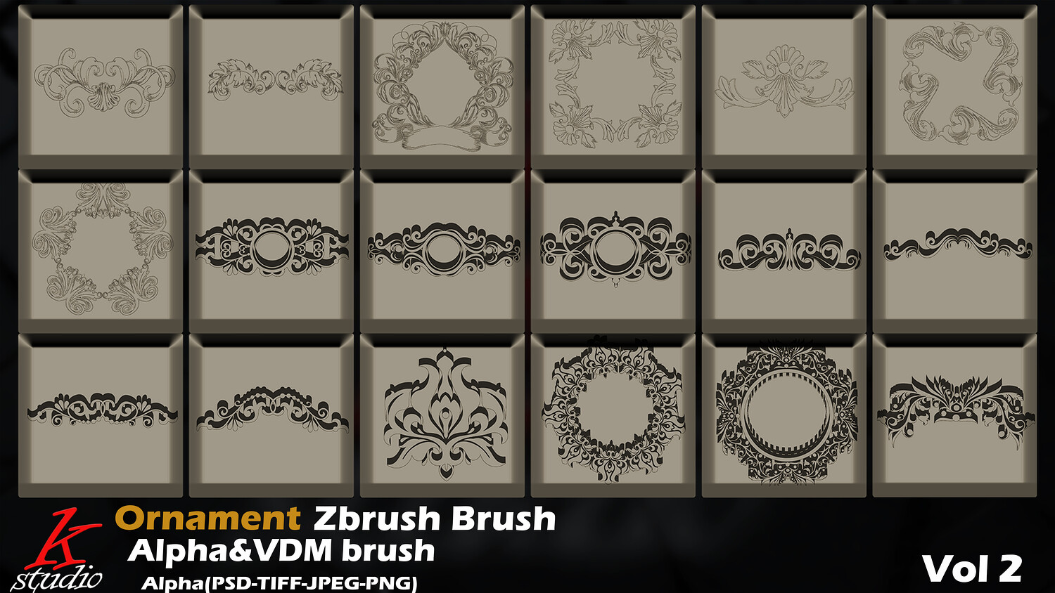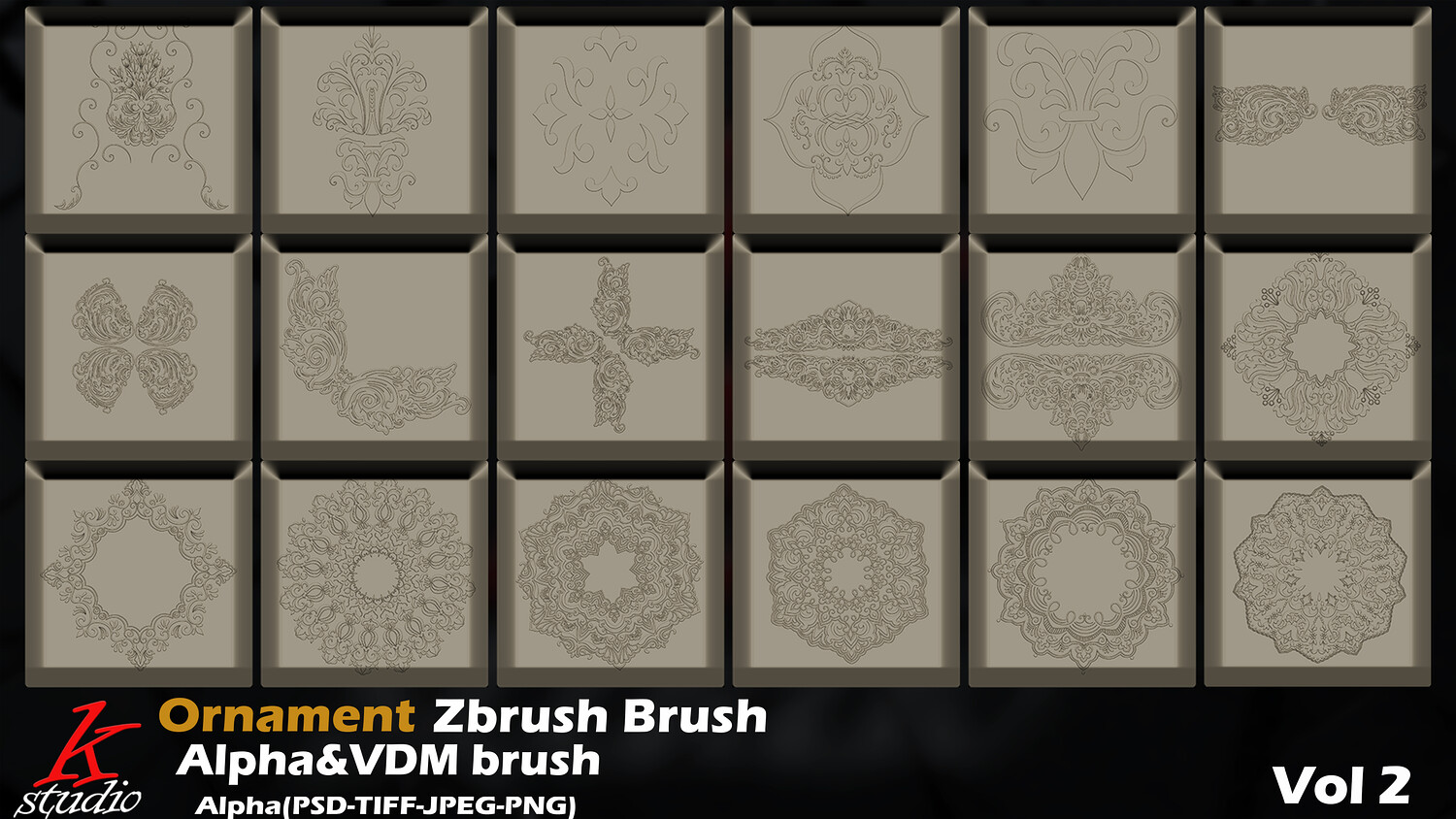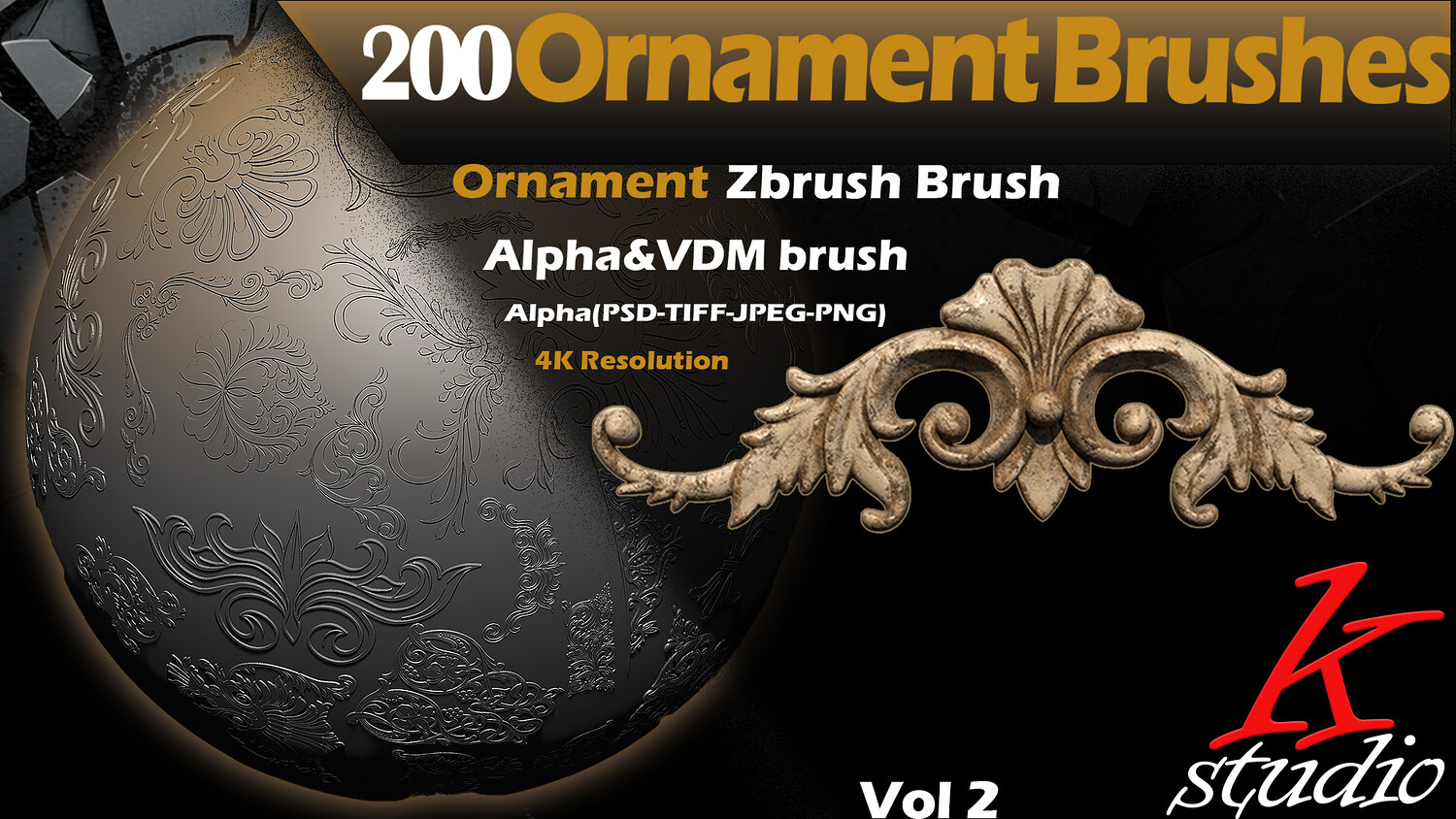 200 Ornament Brushes for ZBrush – Alpha & VDM – 4K – Vol.2