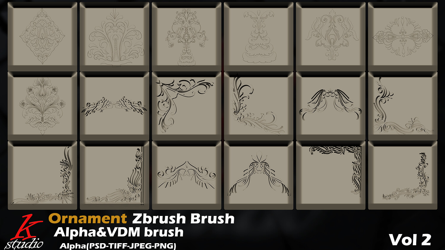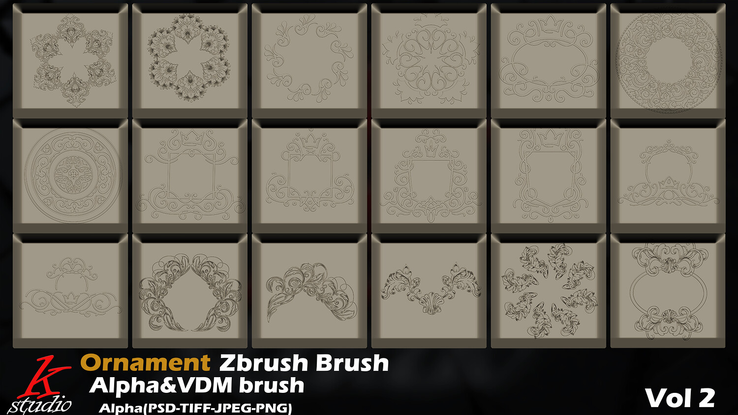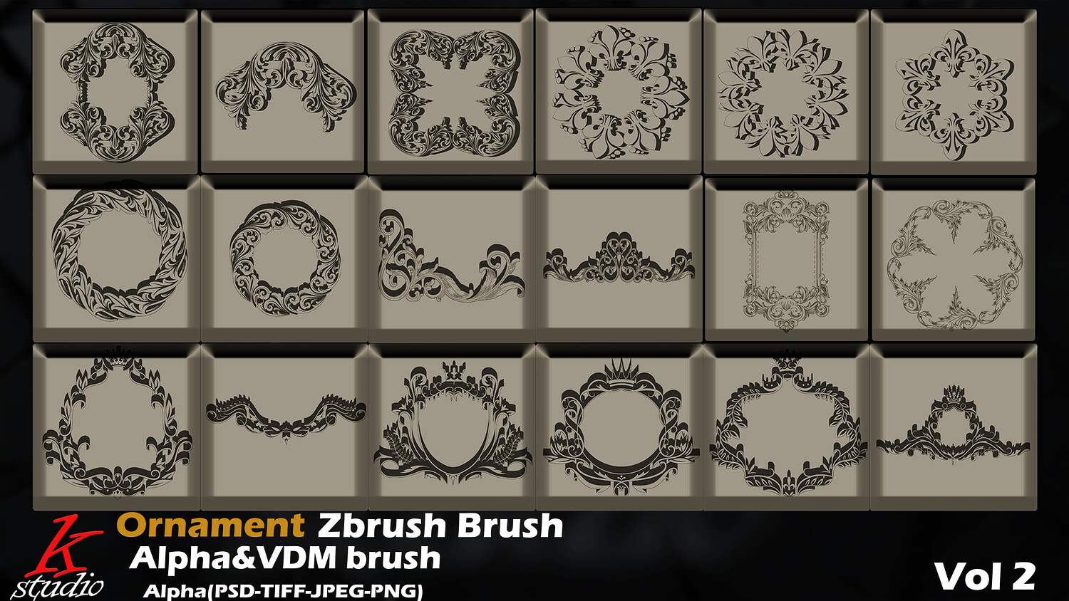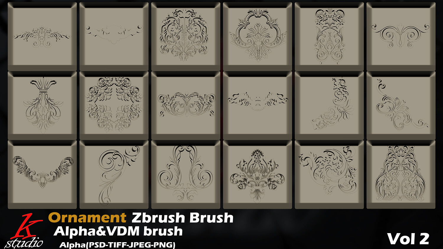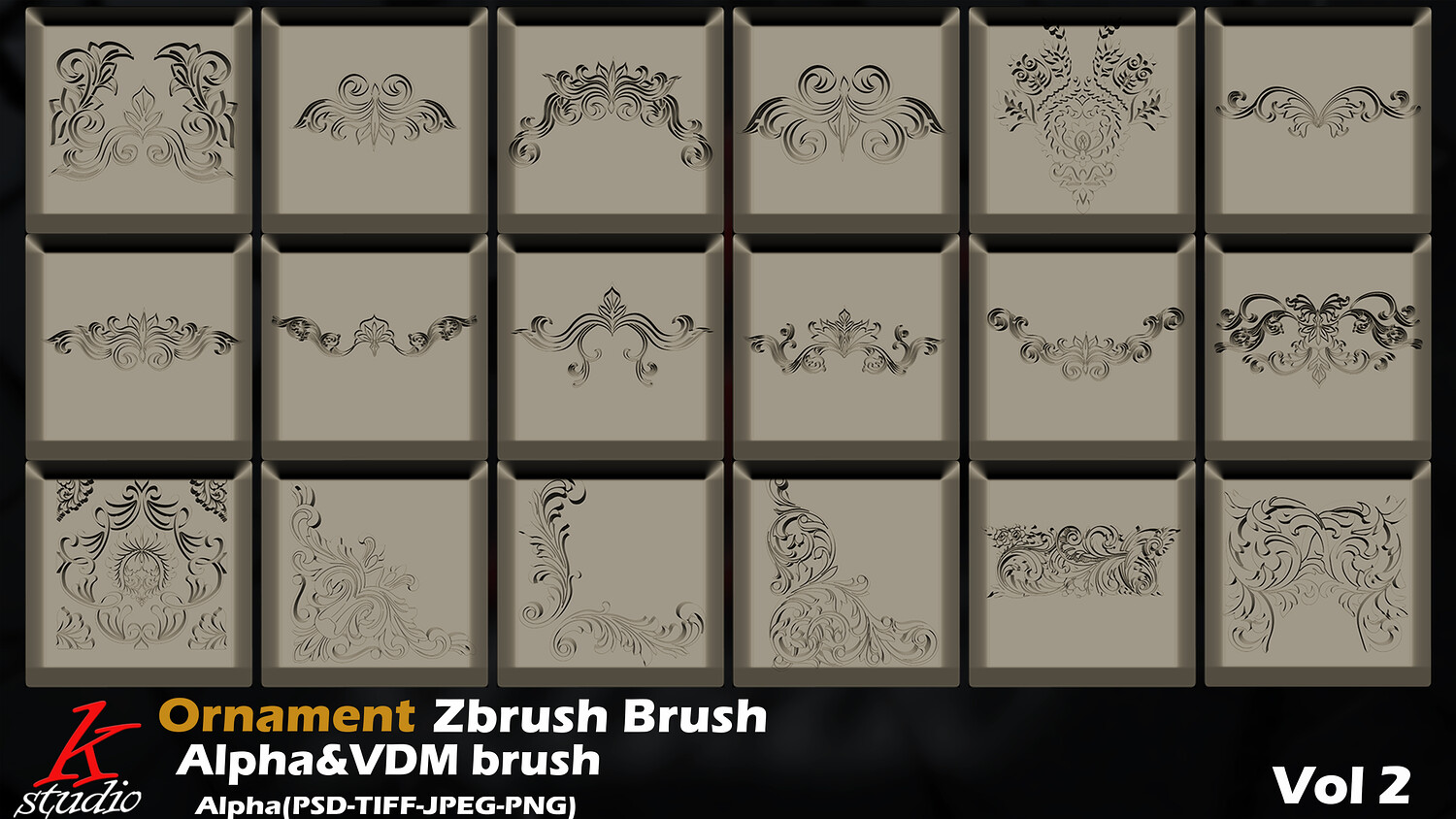 200 Ornament Brushes for ZBrush – Alpha & VDM – 4K – Vol.2