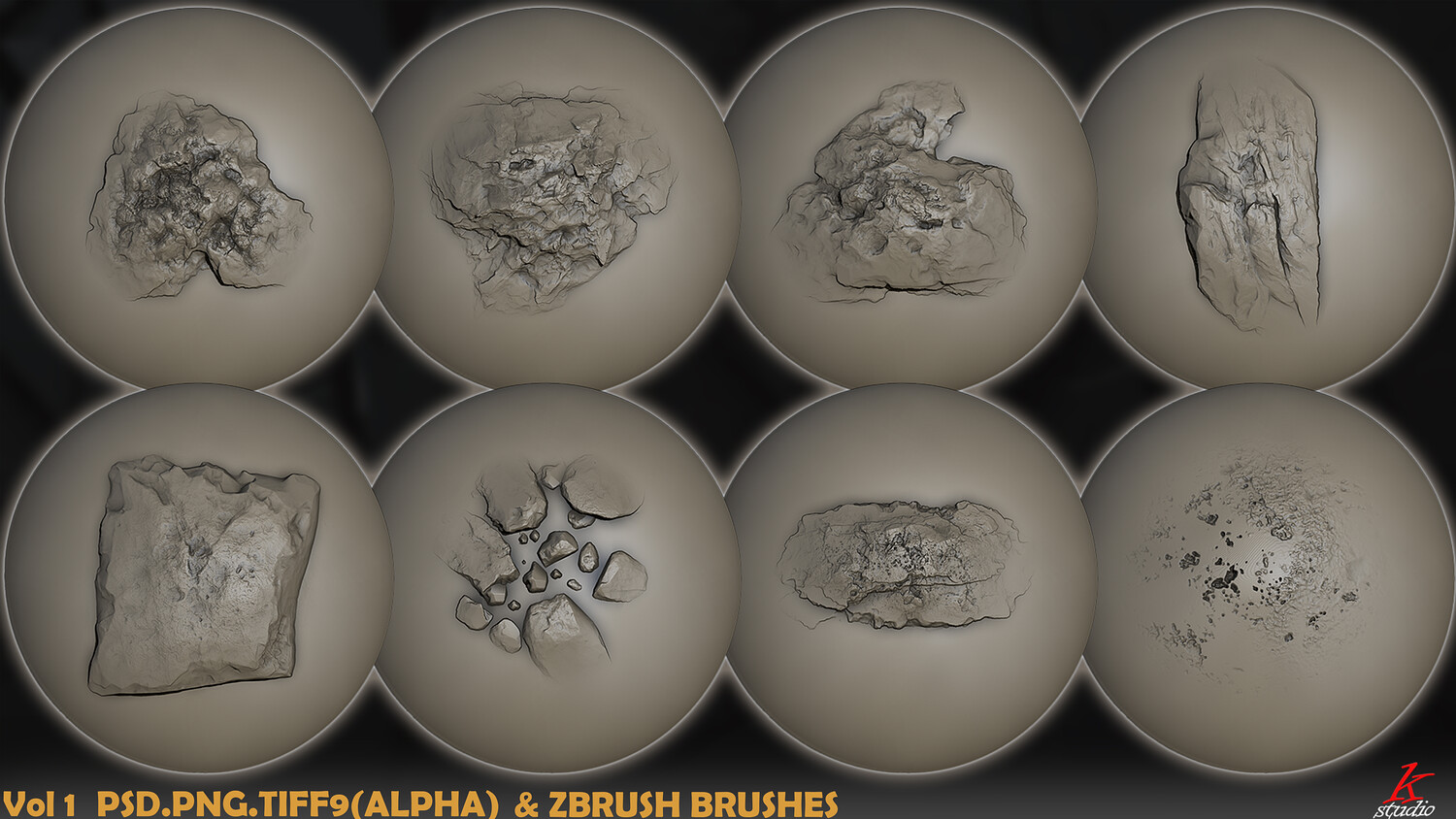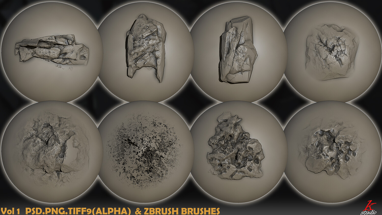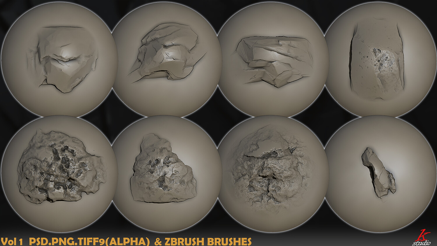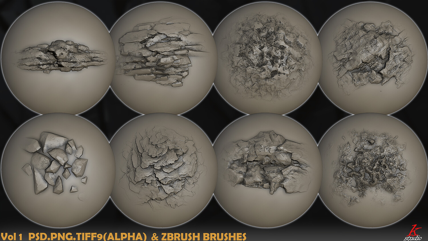 Elevate your environment and creature sculpting with this professional collection of 50 Rock & Stone Brushes designed specifically for ZBrush.