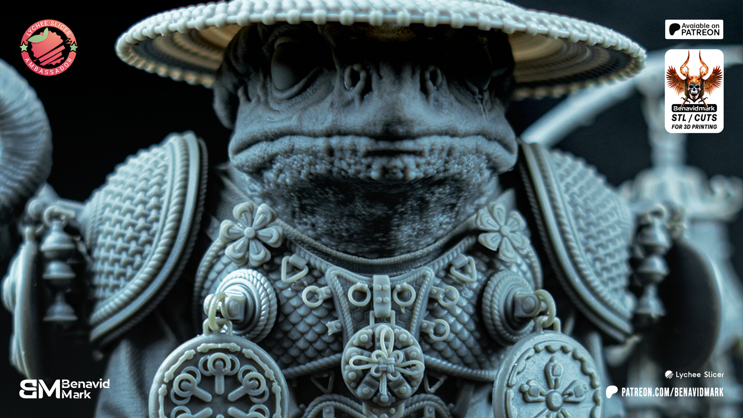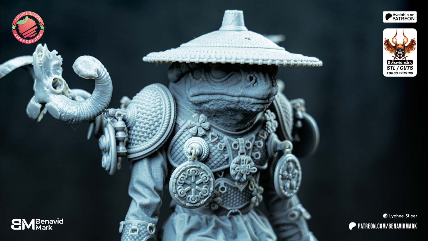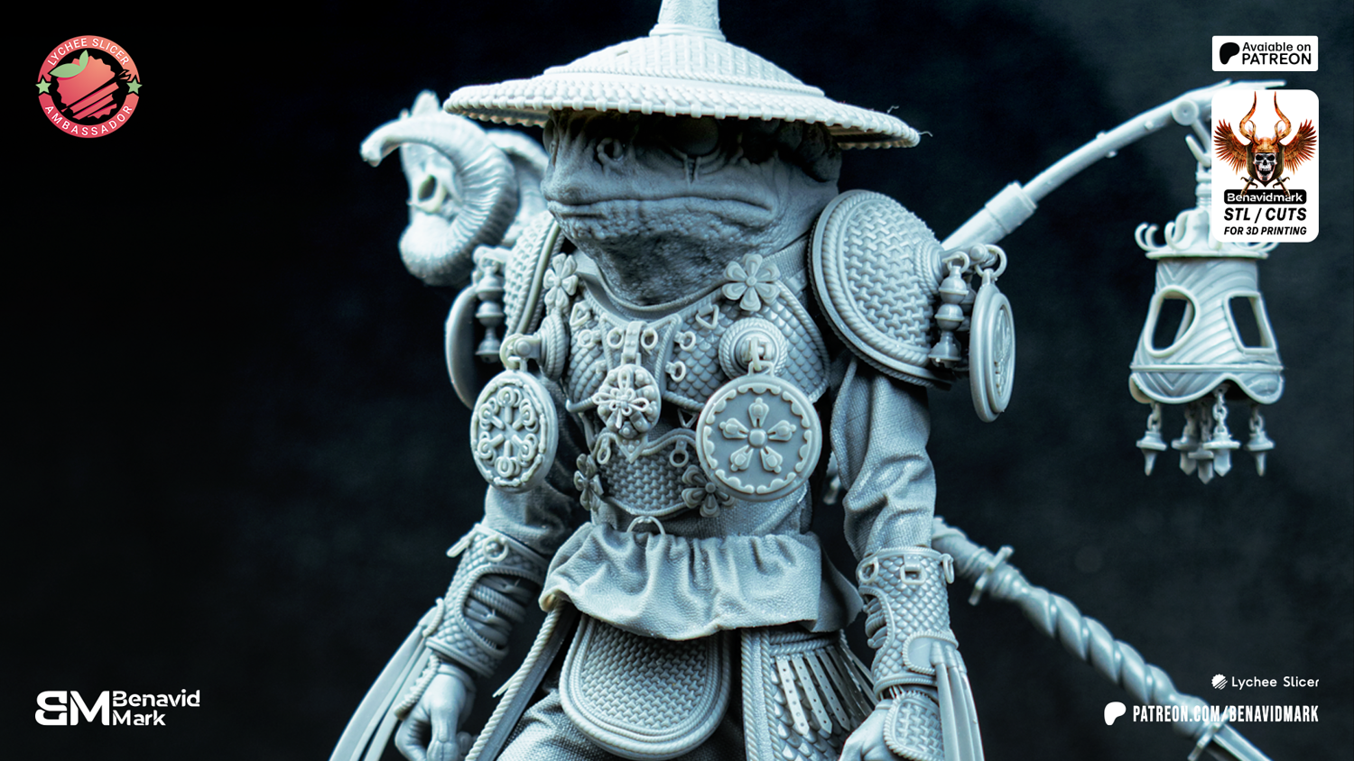 Samurai Frog High quality sculpture with exquisite detail and ready to be brought to life through 3D printing.