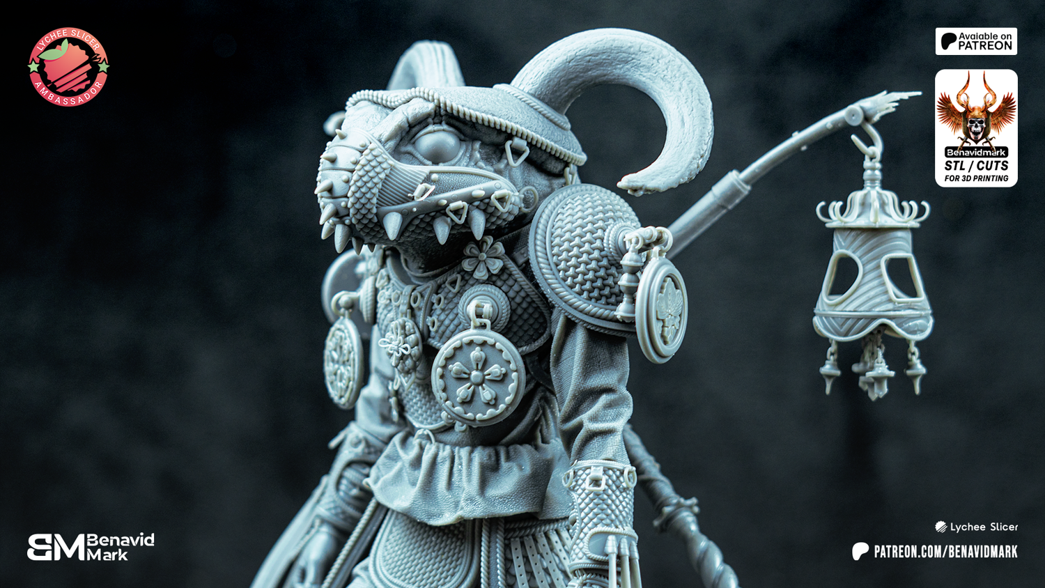 This samurai frog model boasts an array of intricate features, from the intricate scales on its skin to the delicate folds of its armor. Step into the character's shoes and experience the world from their perspective, thanks to the details of this character.