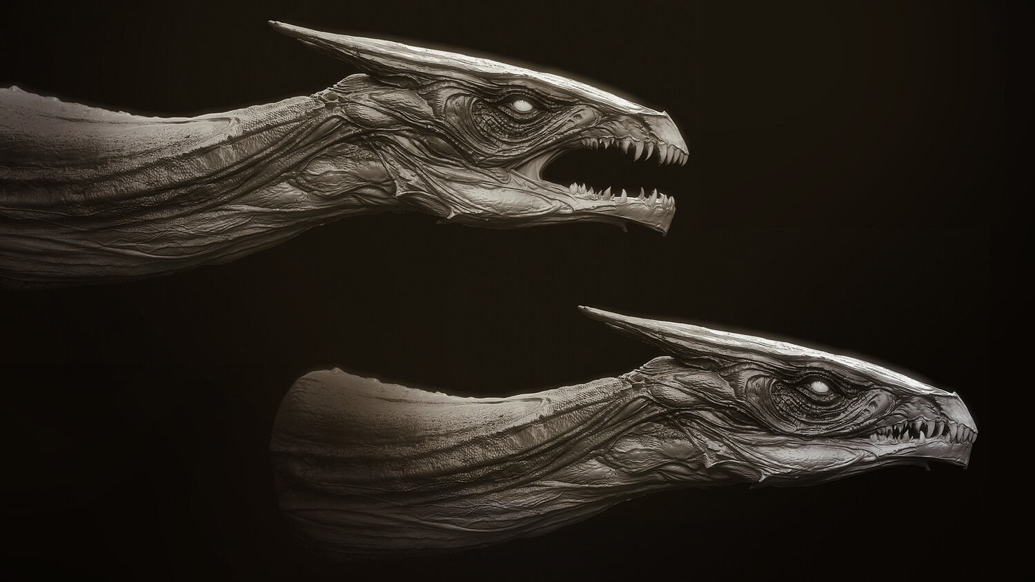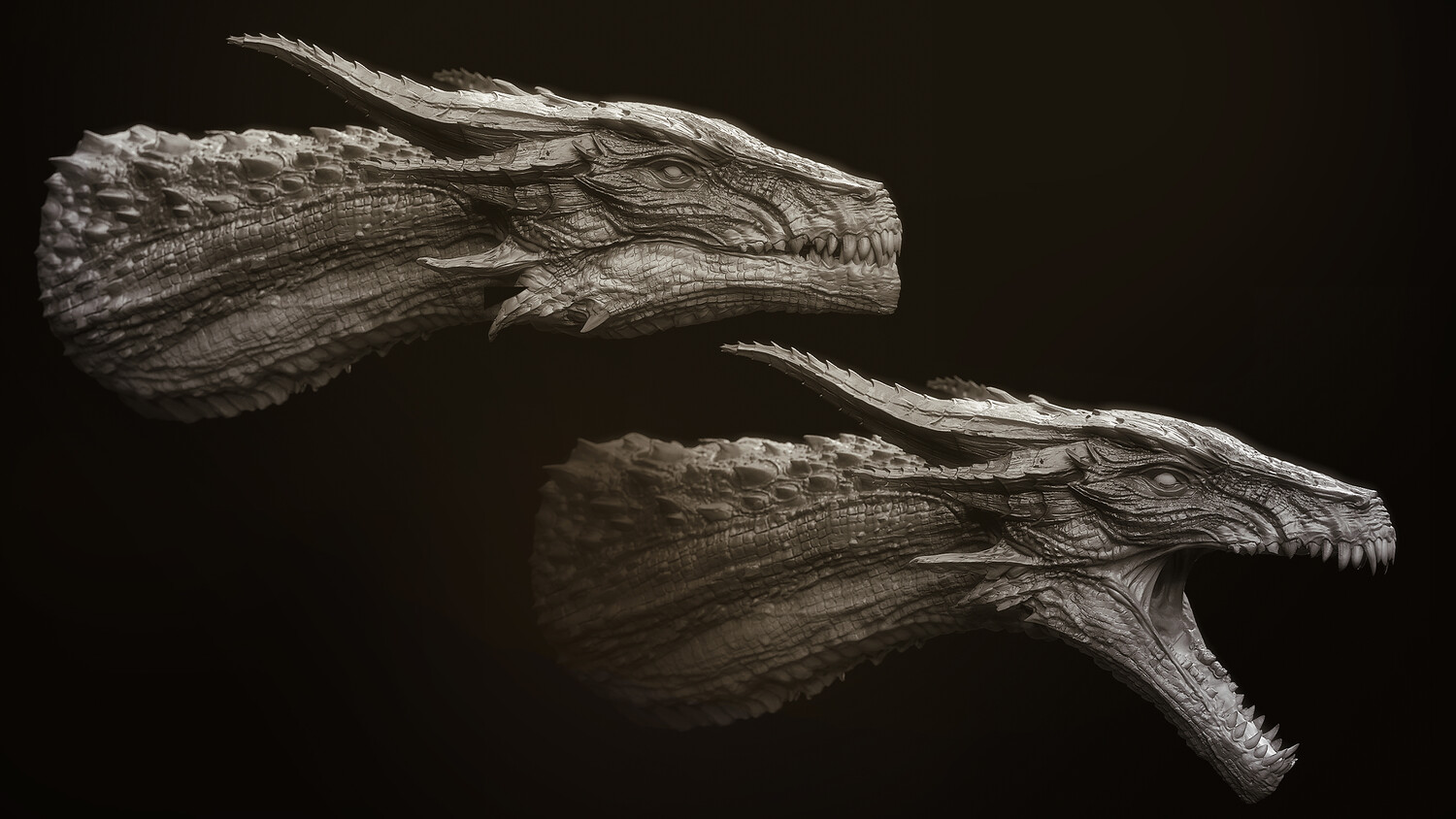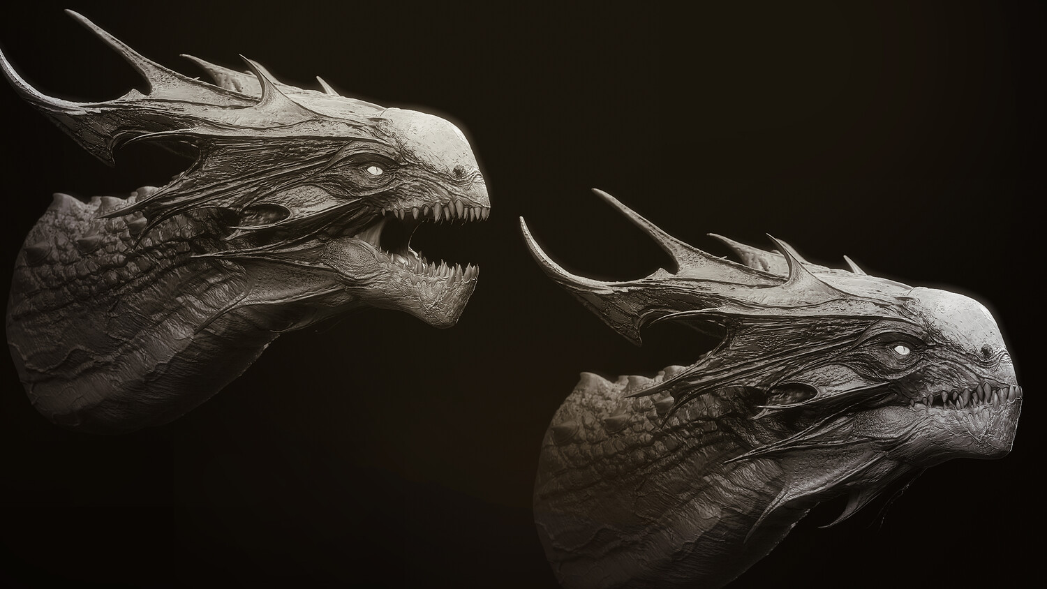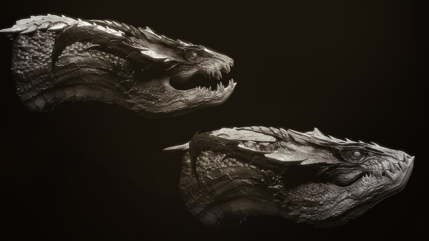 10 high-detail Dragon Head sculpts for quick design and kitbashing of dragons, monsters, or any fantastical creation Zbrush Master Tool file housing all 10 Dragon Head subtools, each with MouthOpen and MouthClosed blendshapes, an example body, and the 10 heads as simplified base meshes Zbrush Insert Mesh brush - 10 Heads with mouths open Zbrush Insert Mesh brush - 10 Heads with mouths closed Zbrush Insert Mesh Brush - 10 heads in simplified base mesh versions OBJs : each of the 10 heads with mouth open and closed as separate meshes OBJs : an example dragon body consisting of a pair of wings, one torso, and a set of legs Youtube Demonstration: https://youtu.be/NWQmMnn0kfs