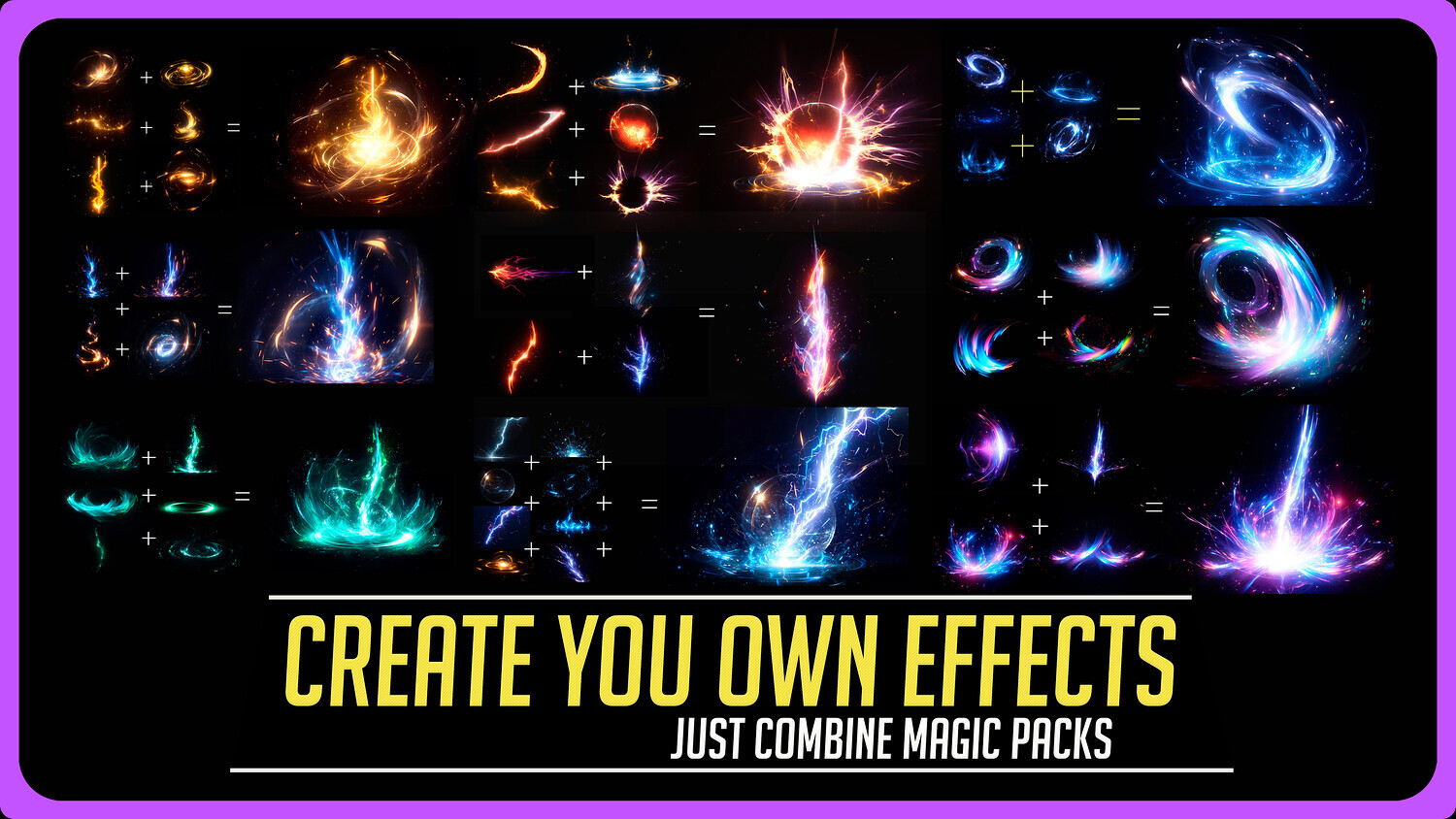 🔷 Full pack includes different Overlay Effects like: gold magic slash, Golden Spirals, Magic circle effect, summon glowing particles circles, and much more. Feel free to explore different ways to use them.
