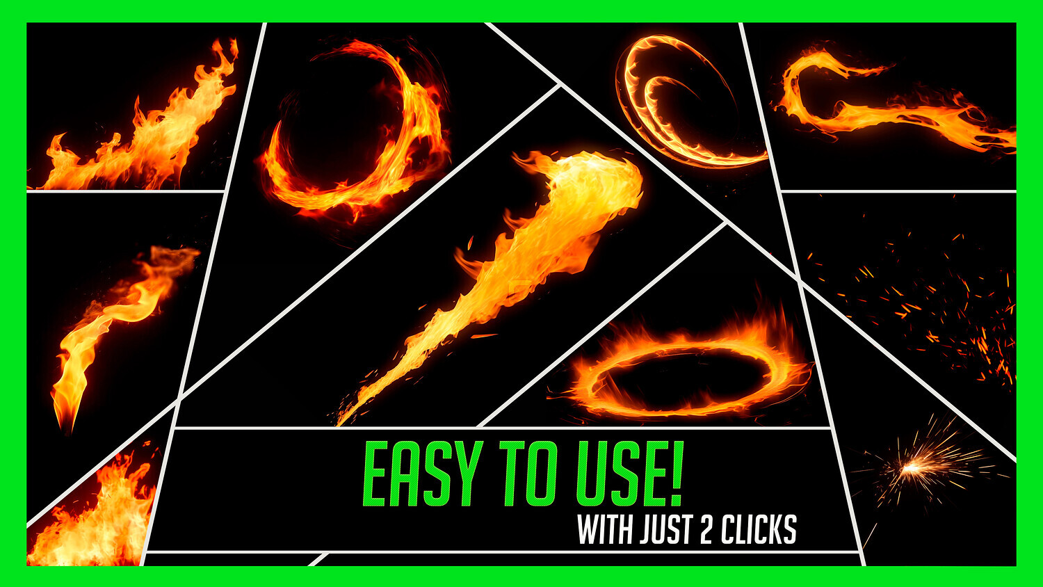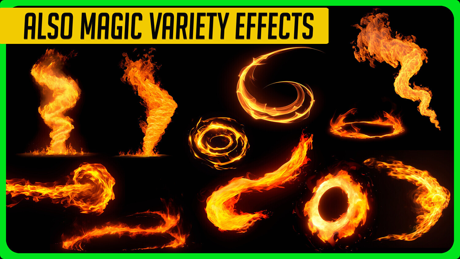 🔷 Full pack includes different Overlay Effects like: Fire whirl, flamethrower, Campfire effect, Torch, Sparks effect, Magic Fire effect, Embers, Fire blast, Dynamic Pyro Effects, Magic Fire Tornado, Magic fire circle, Fire ball, Fire sphere texture, Candle flame and much more.