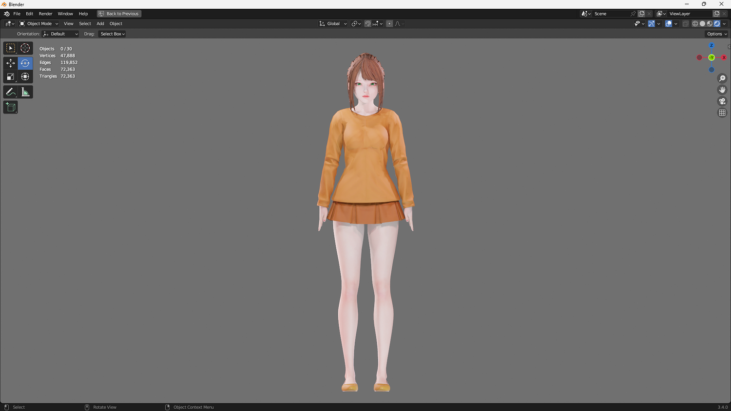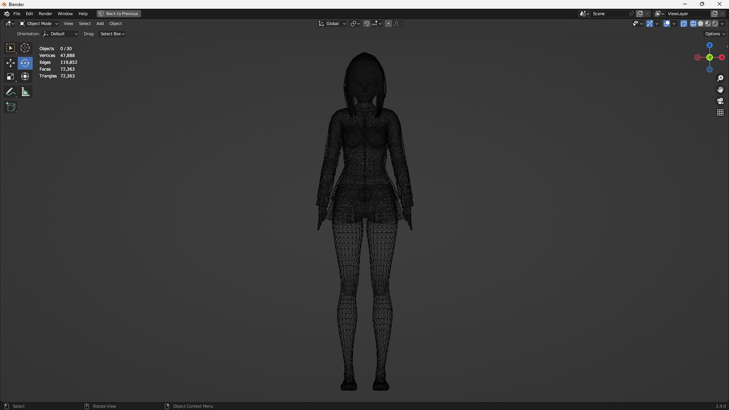 Polycount: Vertices: 47.888 Edges: 119.852 Faces: 72.363 Triangles: 72.363