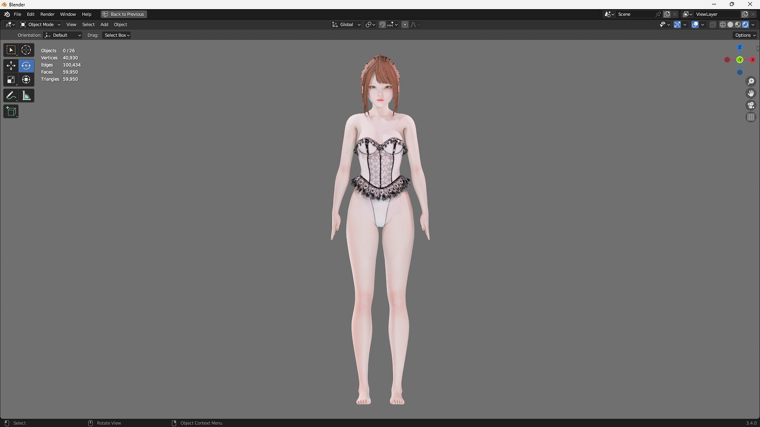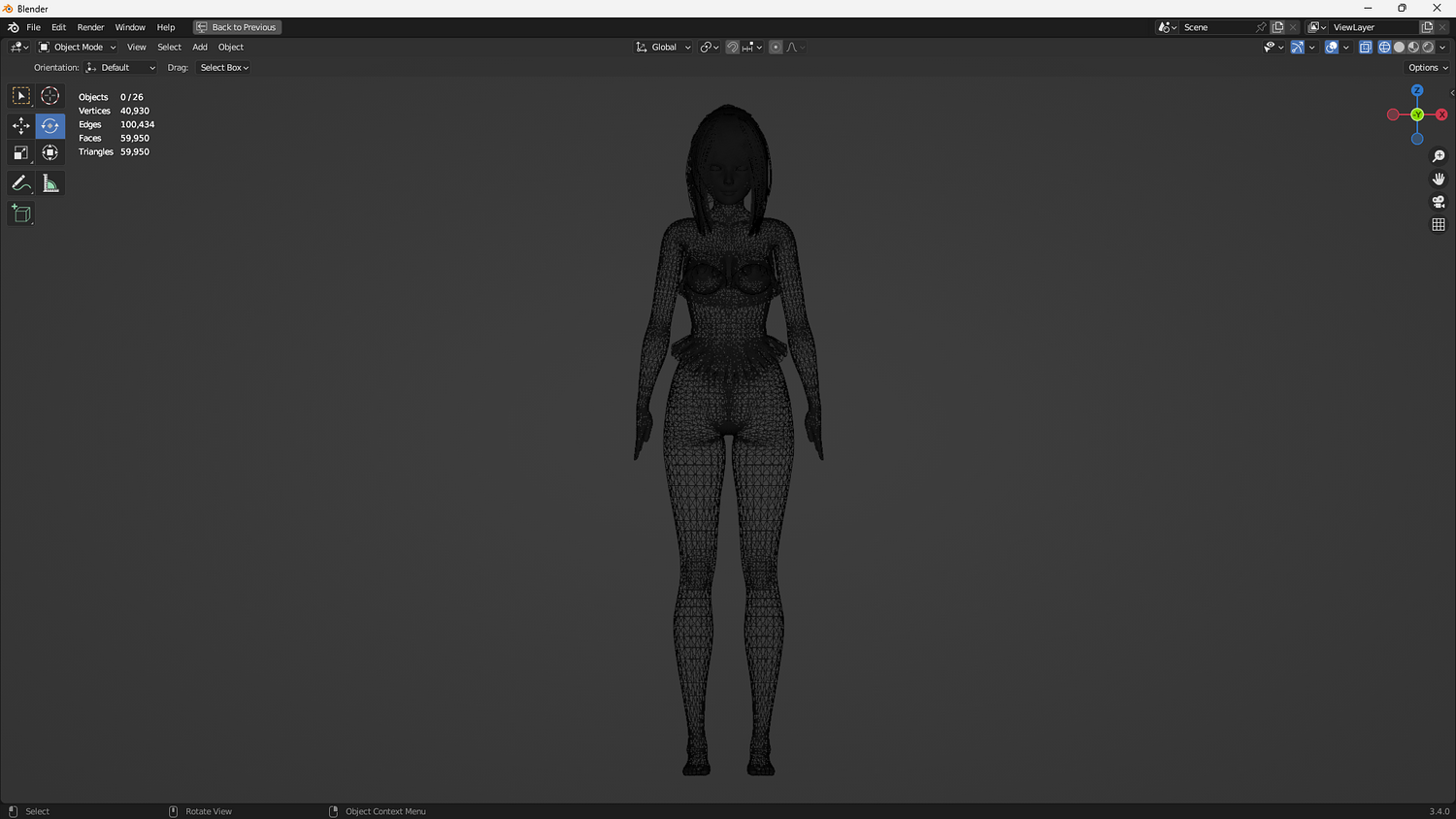 Polycount: Vertices: 40.930 Edges: 100.434 Faces: 59.950 Triangles: 59.950
